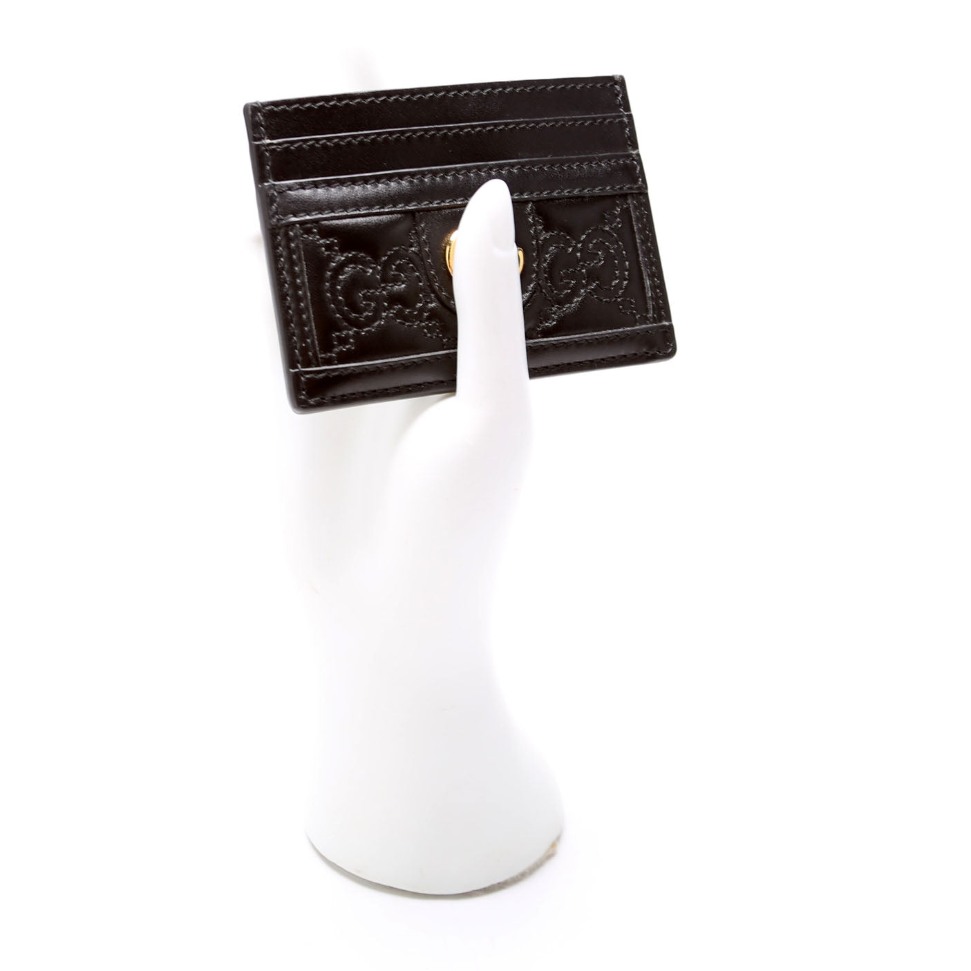 This pre-owned Gucci GG Card Holder is guaranteed 100% authentic. The exterior is in the classic Gucci Marmont leather.