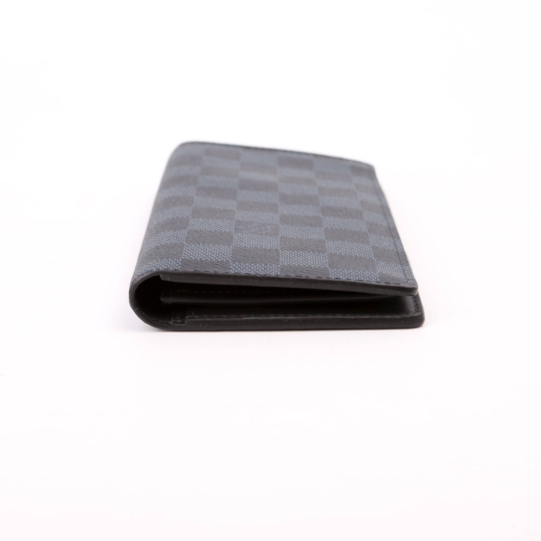 This pre-owned Louis Vuitton Brazza Wallet is guaranteed 100% authentic. The exterior is in the classic Louis Vuitton Damier Cobalt coated canvas.