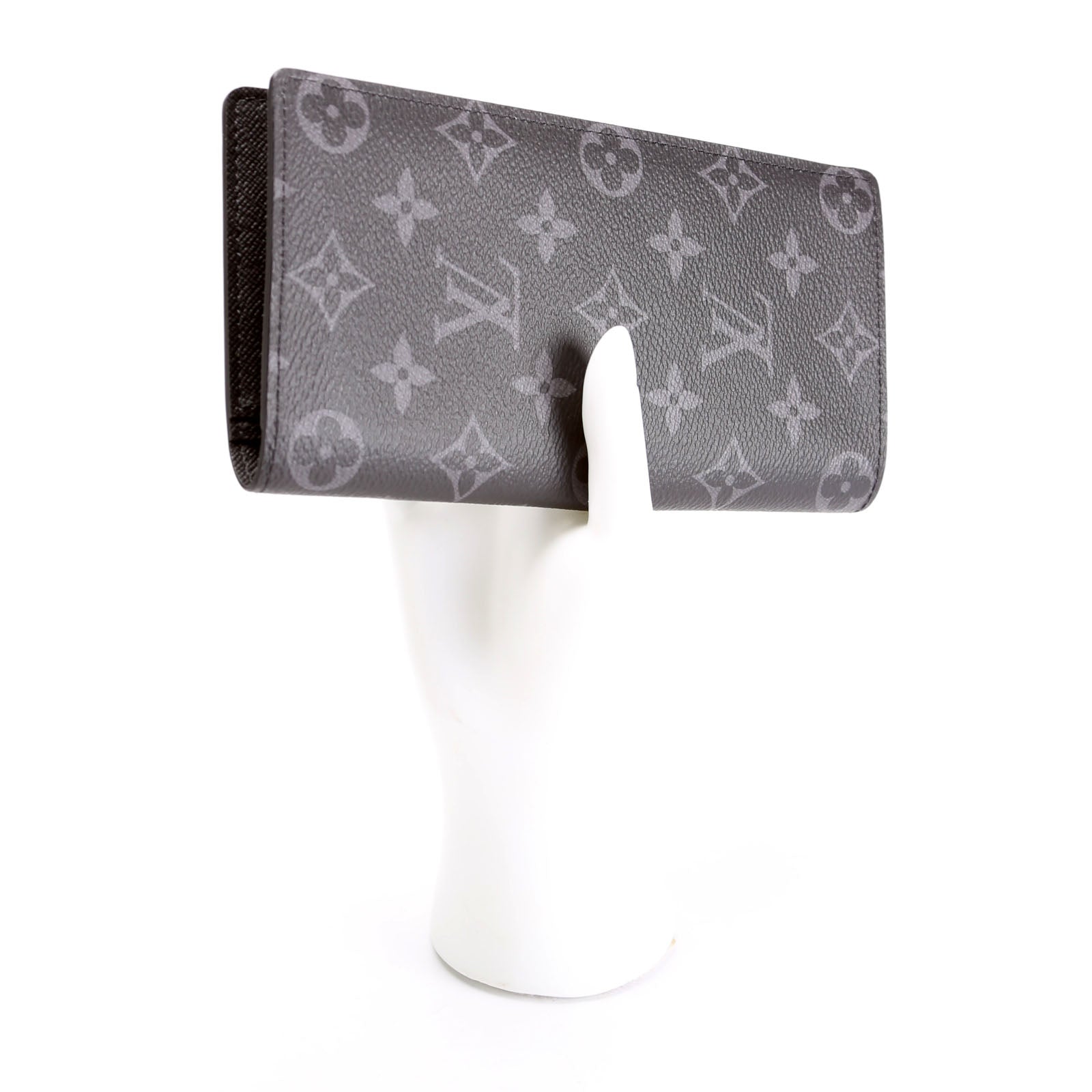 This pre-owned Louis Vuitton Brazza Wallet is guaranteed 100% authentic. The exterior is in the classic Louis Vuitton Eclipse Monogram coated canvas.