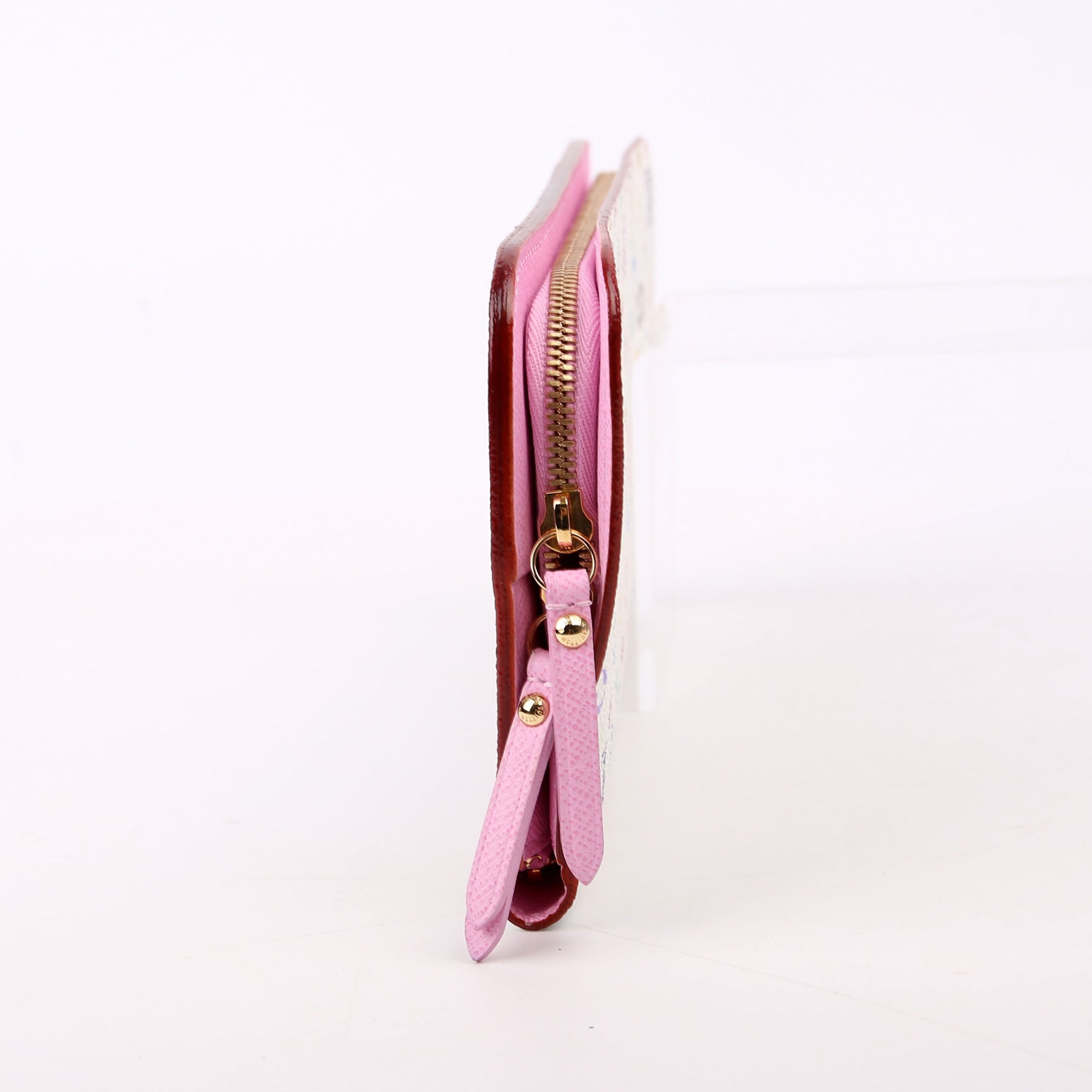 Interior: The interior is free of rips or tears. The interior features twelve card slots, two zip closure coin pouches, two bill slots, and one additional open pocket.