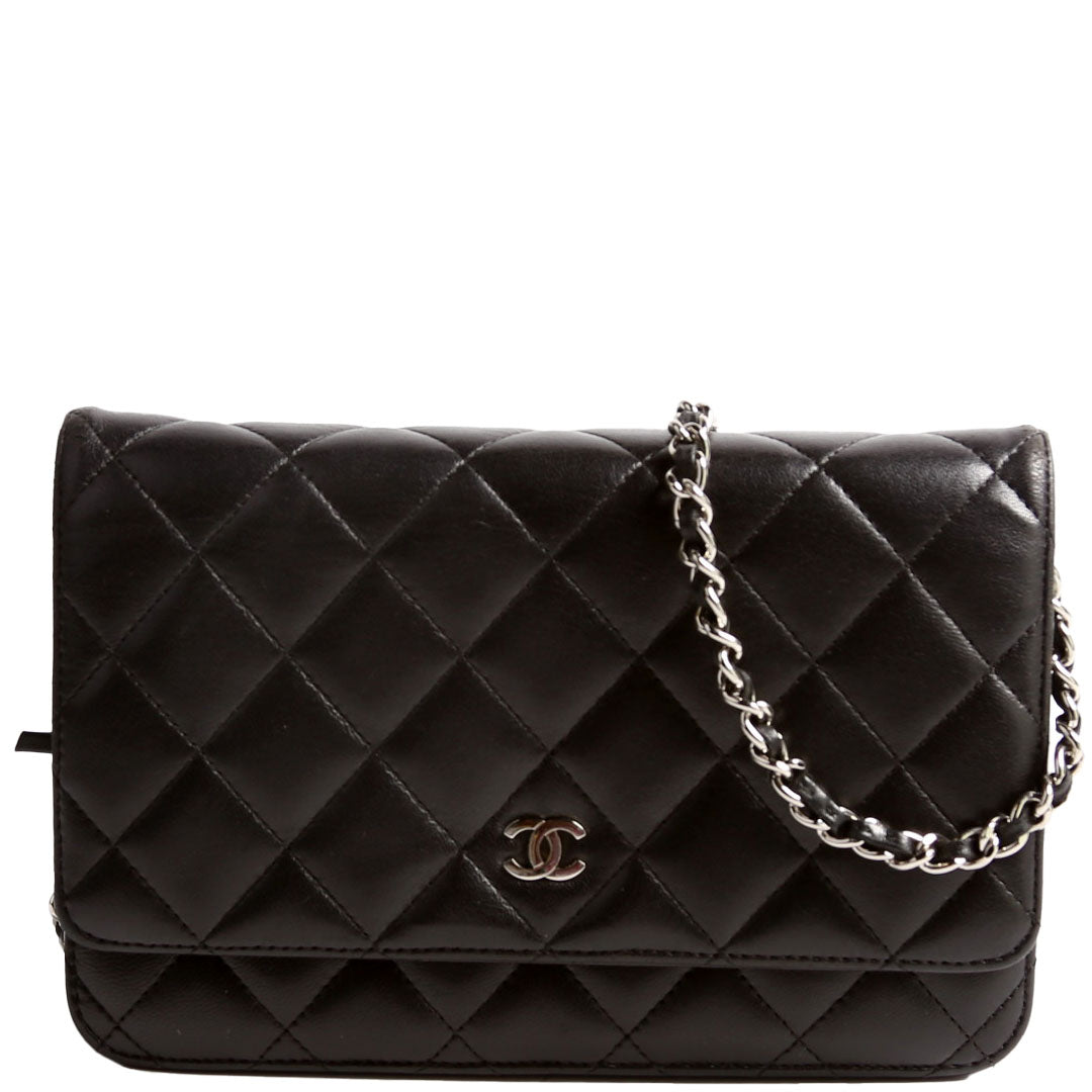 Wallet On Chain Classic Quilted Lambskin Black