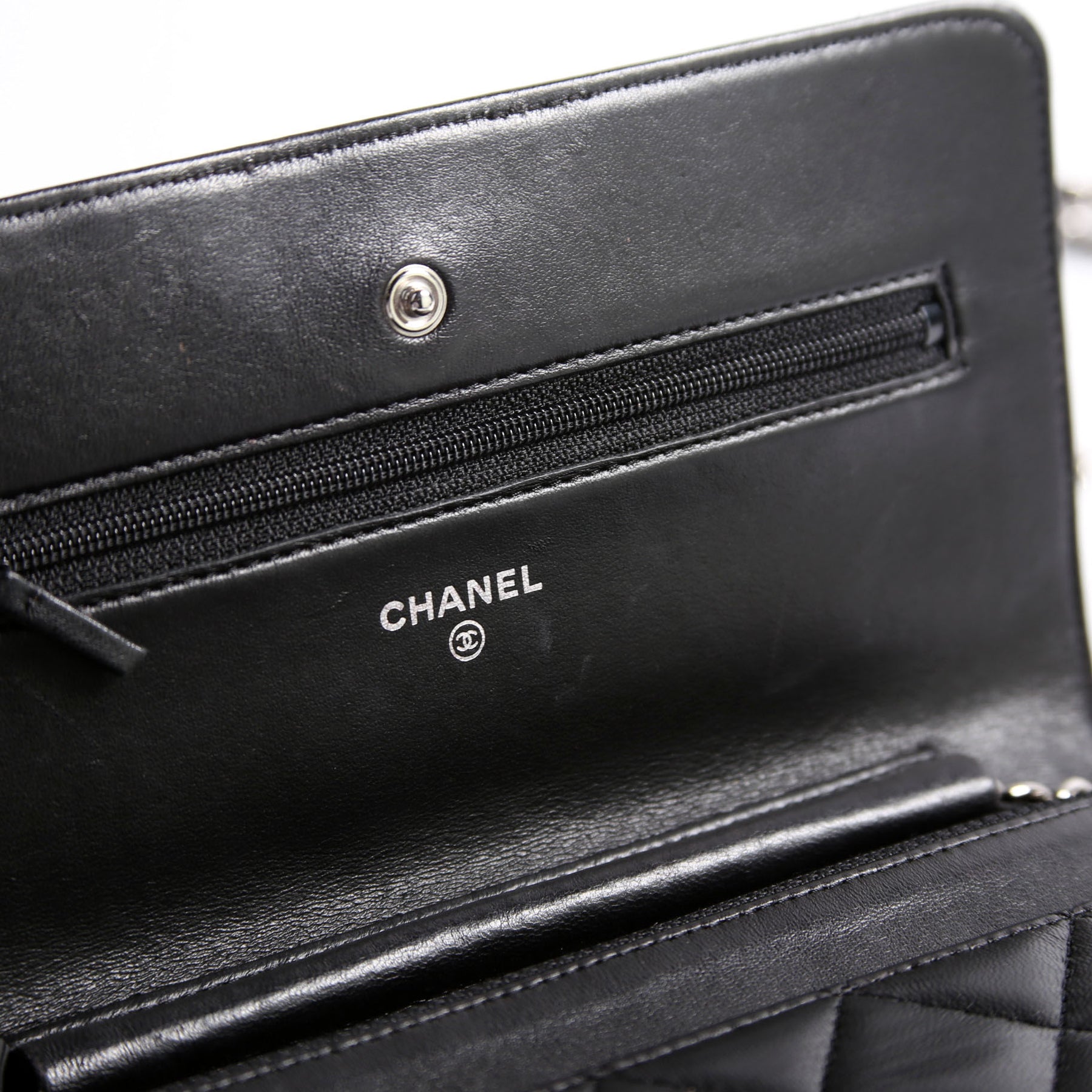 This pre-owned Chanel Wallet On Chain is guaranteed 100% authentic. The exterior is in the classic Chanel Quilted Lambskin.