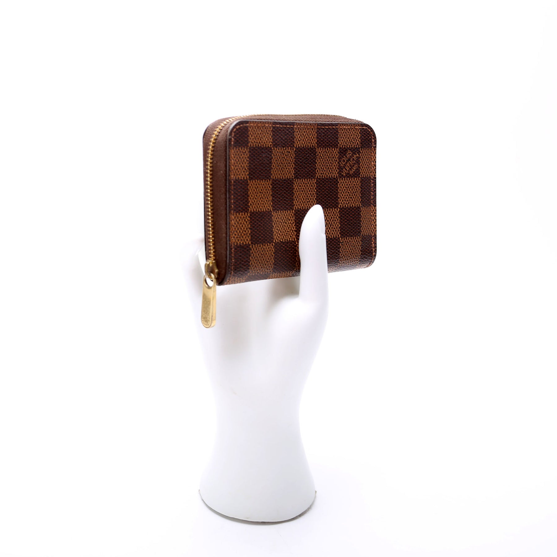 This pre-owned Louis Vuitton Zippy Coin Purse is guaranteed 100% authentic. The exterior is in the classic Louis Vuitton Damier Ebene coated canvas.