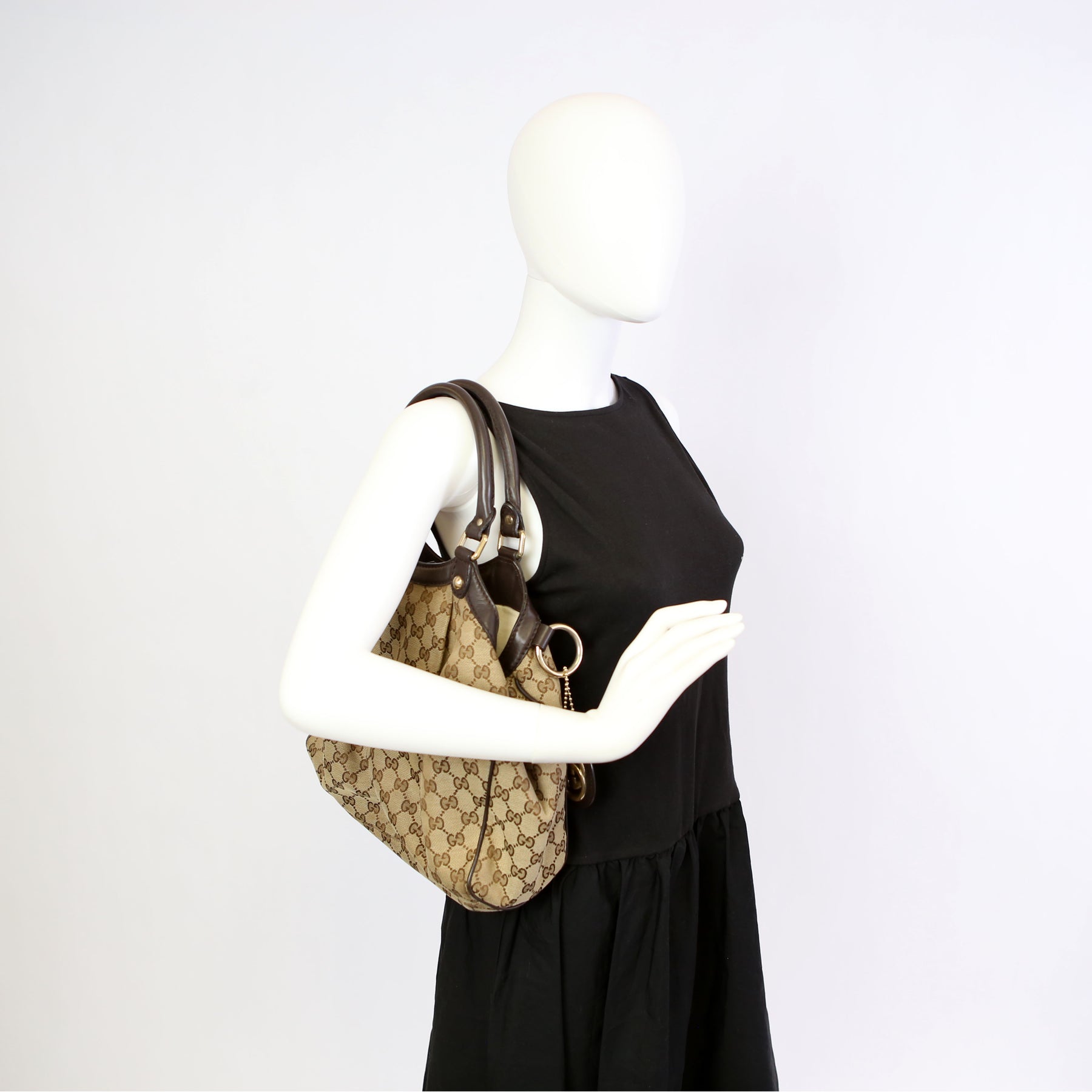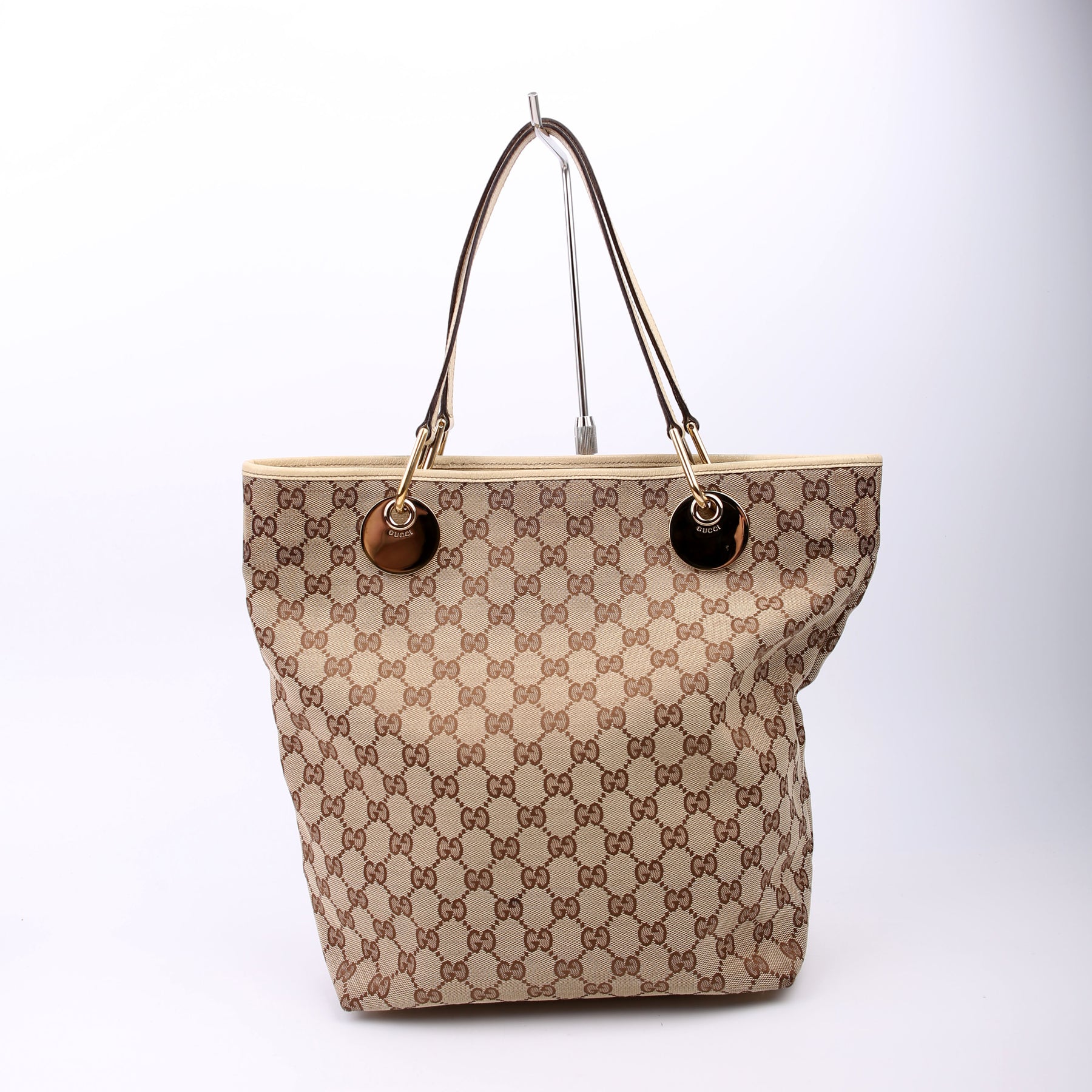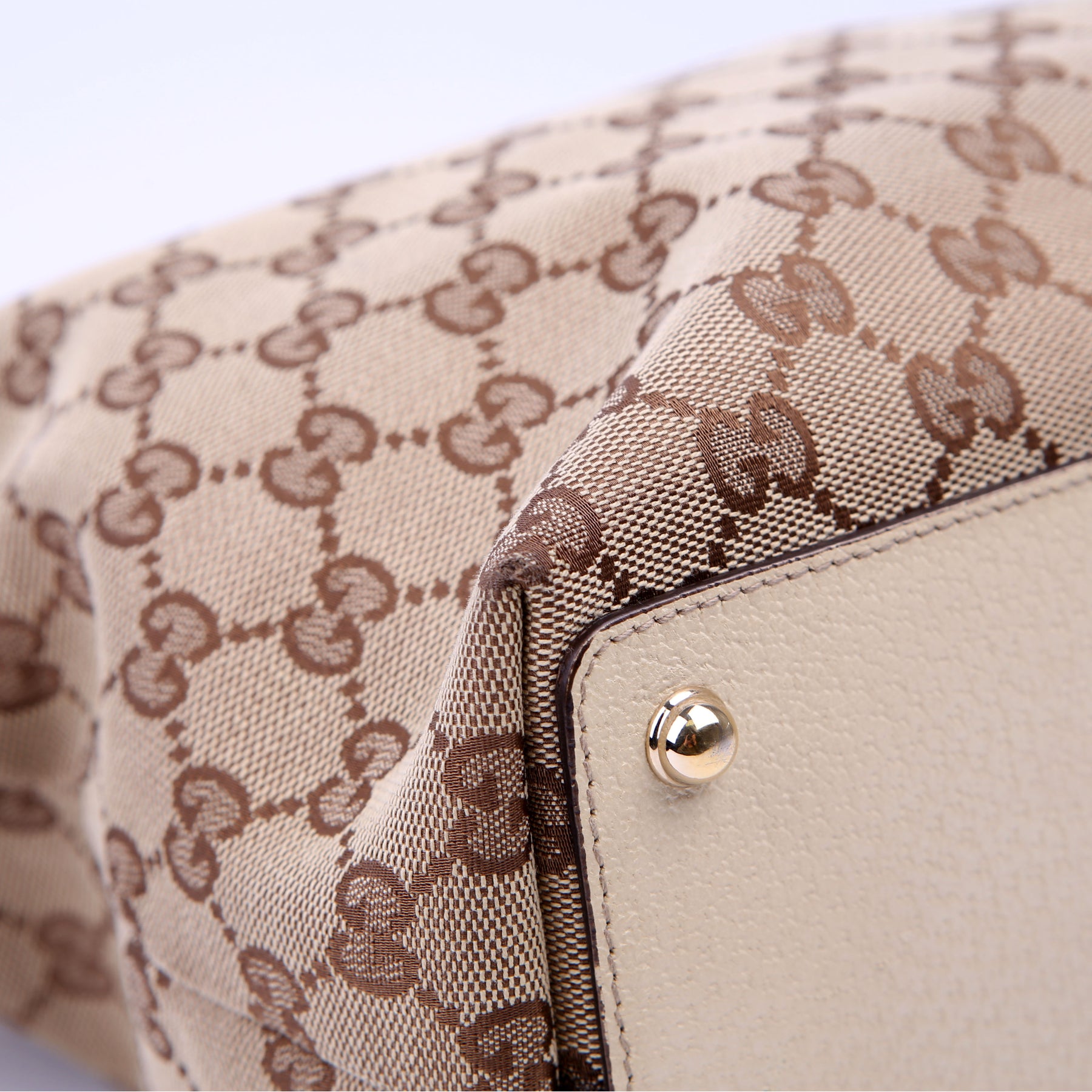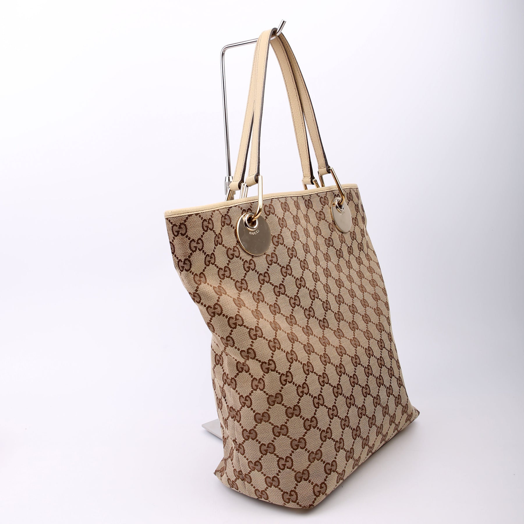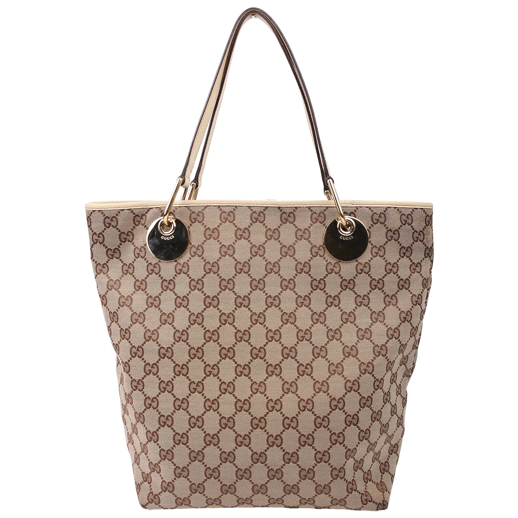 This pre-owned Gucci GG Supreme Eclipse Tote Large is guaranteed 100% authentic. The exterior is in the classic Gucci GG Supreme canvas.