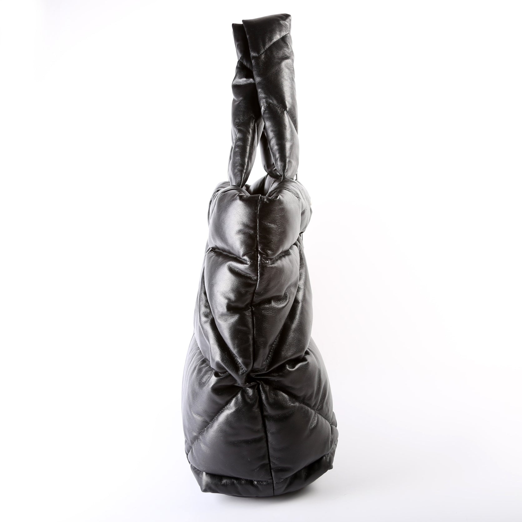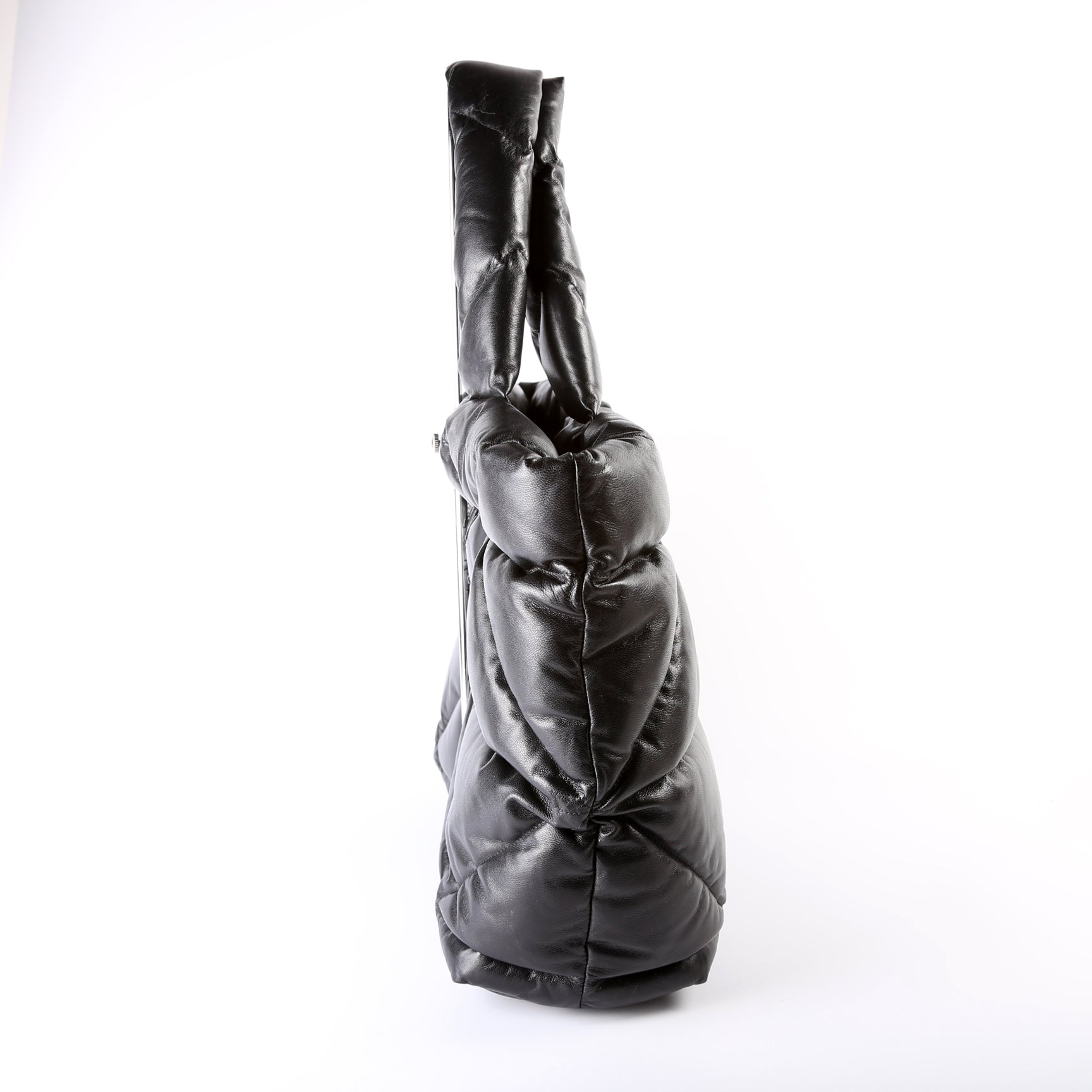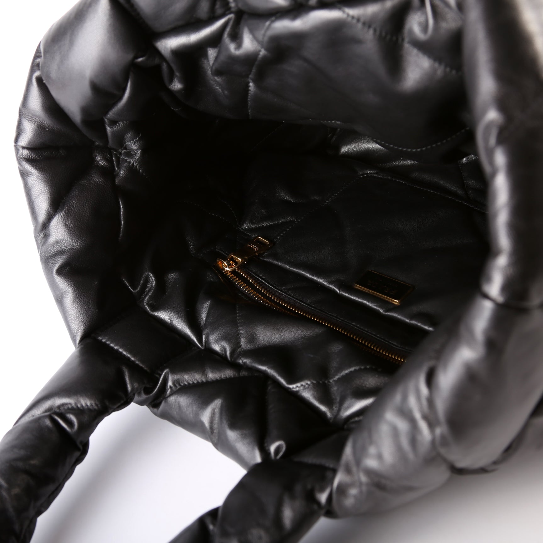 This Prada Soft Nappa Padded System Tote Bag is guaranteed 100% authentic. The exterior is in the classic Prada nappa leather.