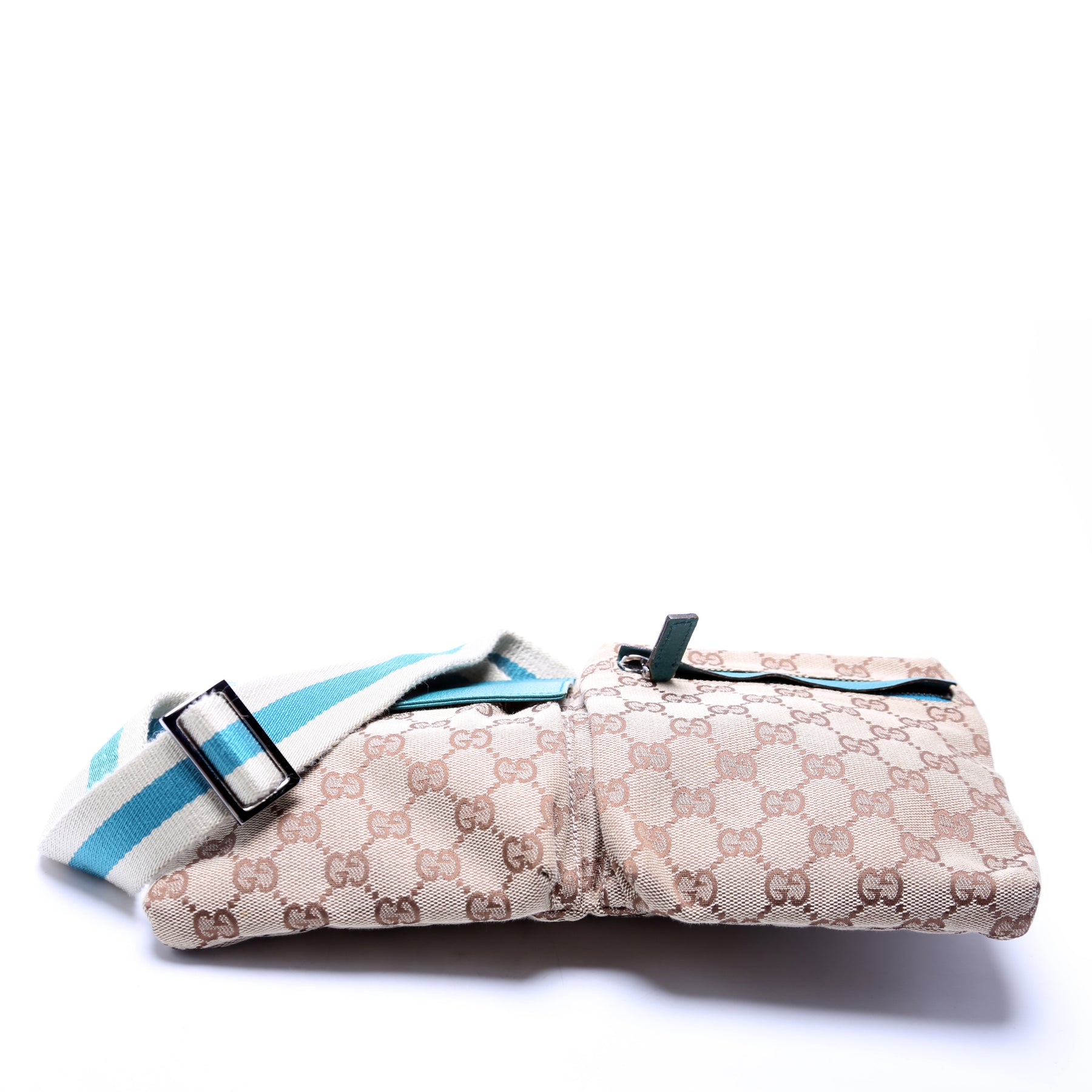 This pre-owned Gucci GG Canvas Waist Bag is guaranteed 100% authentic. The exterior is in the classic Gucci GG canvas.