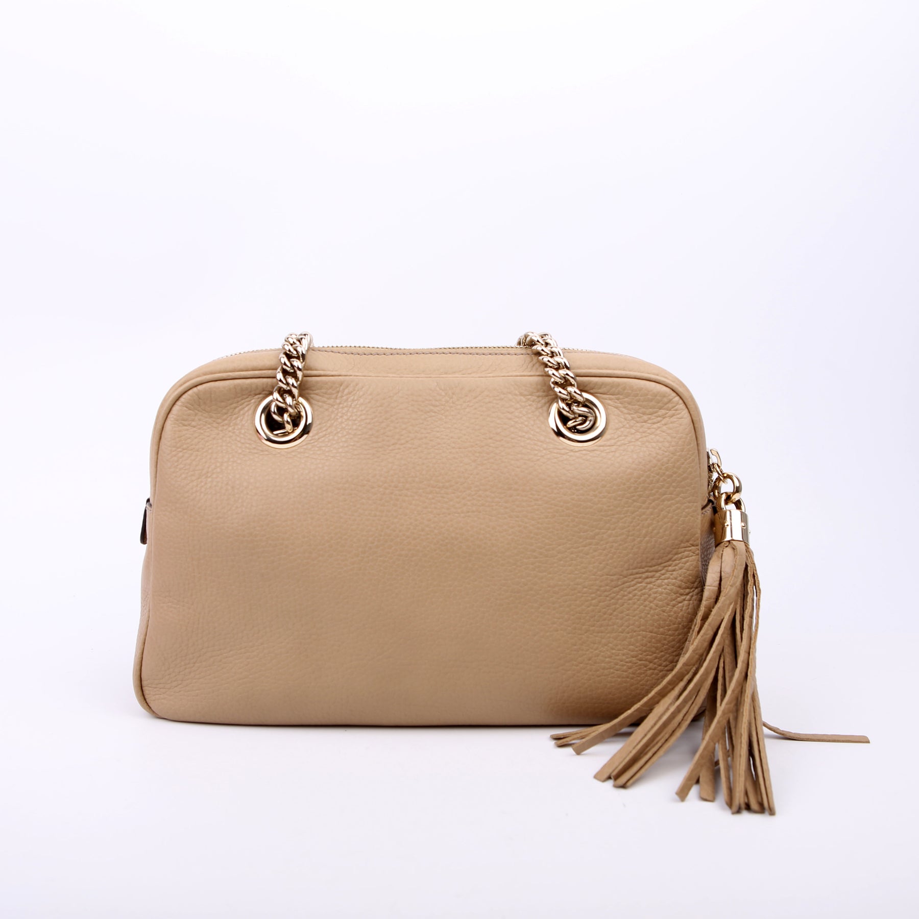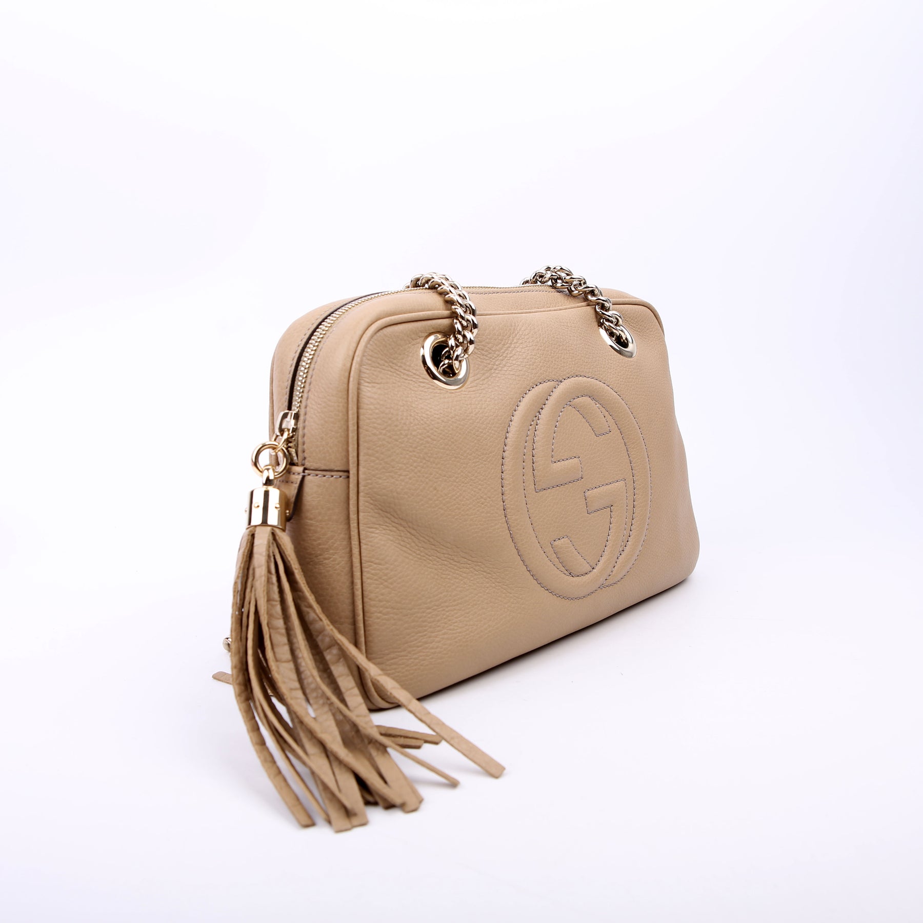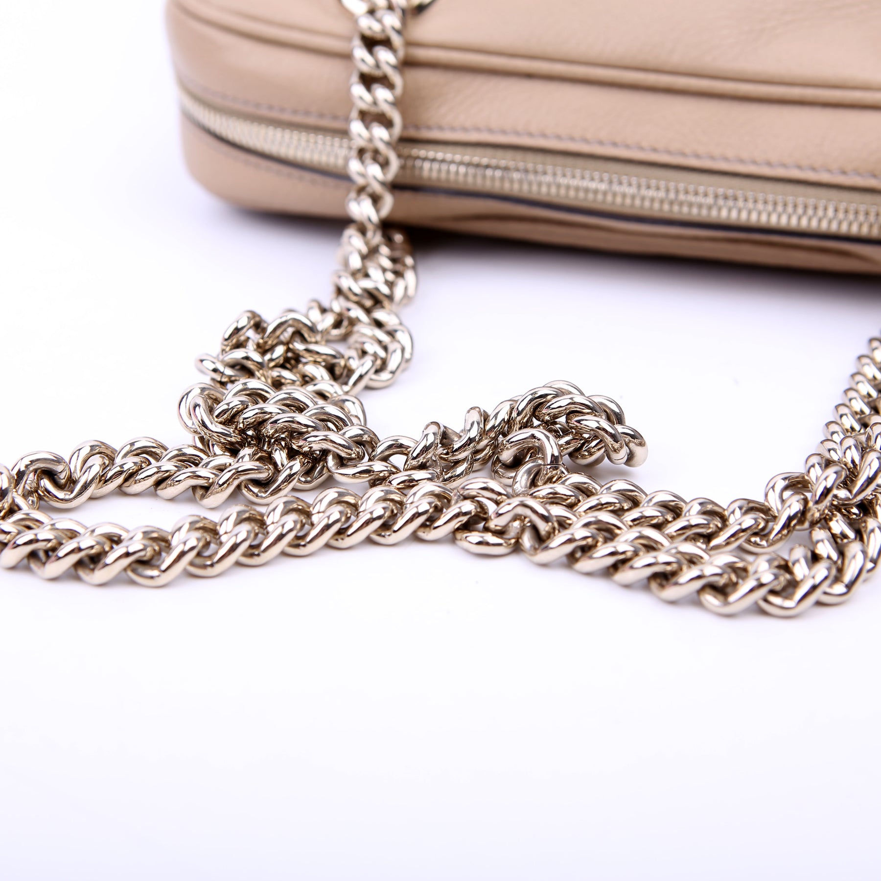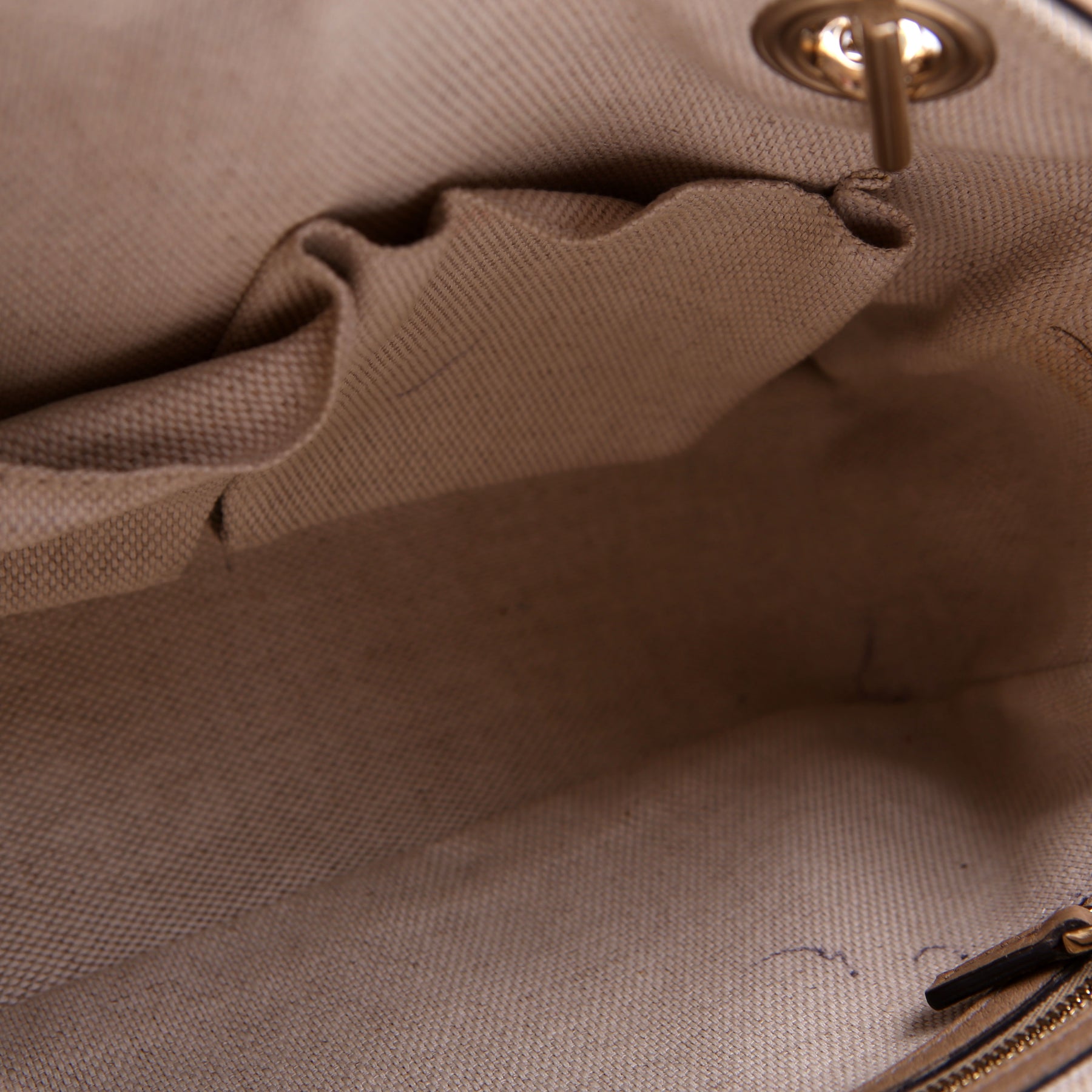 This pre-owned Gucci Soho Chain Shoulder Bag is guaranteed 100% authentic. The exterior is in the classic Gucci Soho leather.
