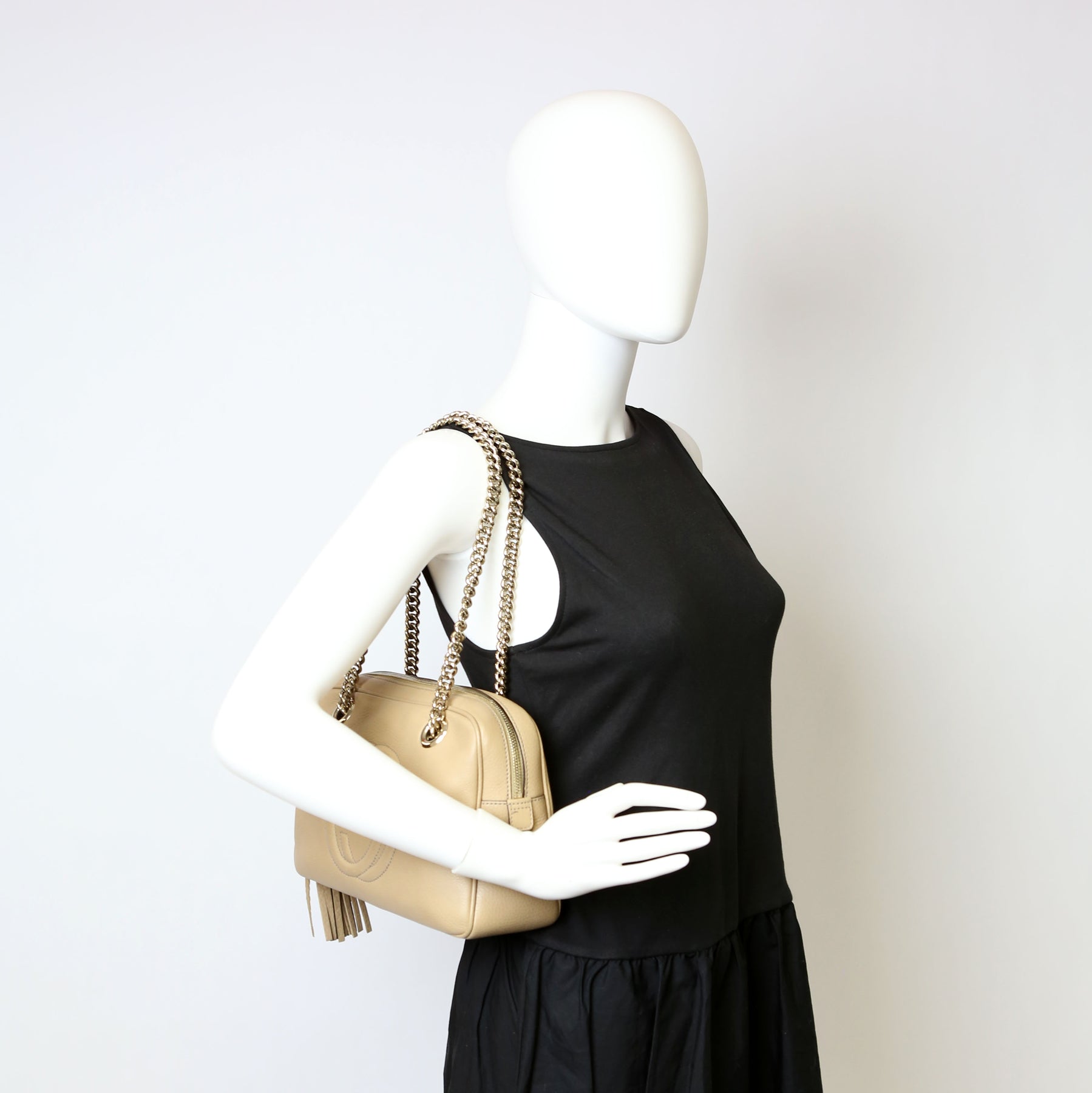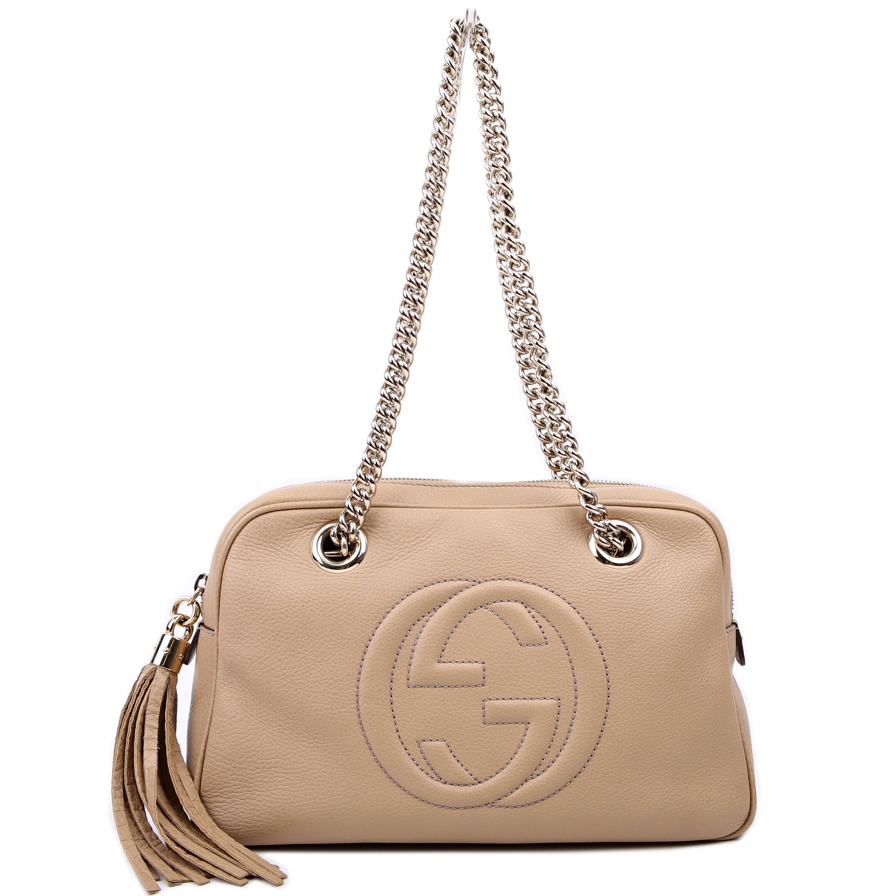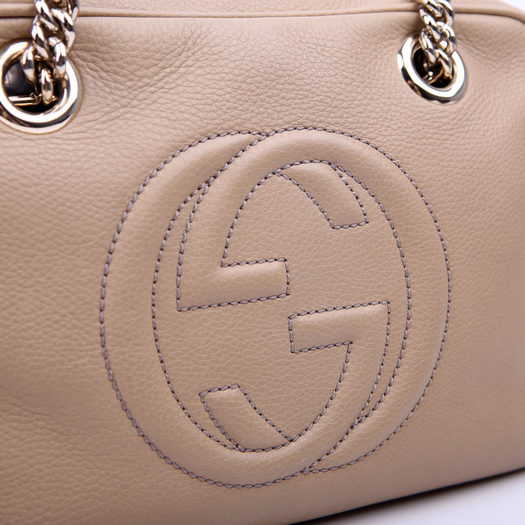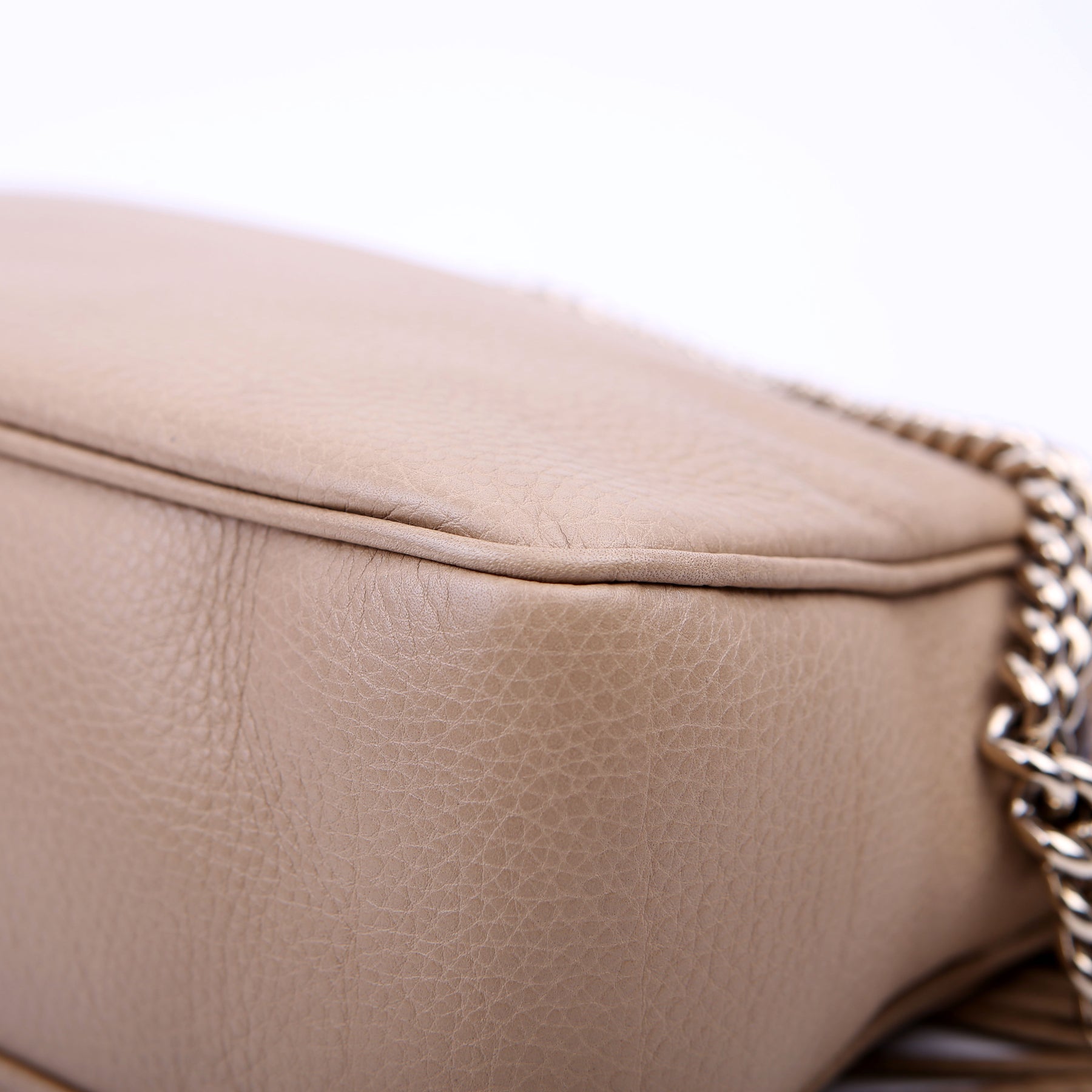 This pre-owned Gucci Soho Chain Shoulder Bag is guaranteed 100% authentic. The exterior is in the classic Gucci Soho leather.