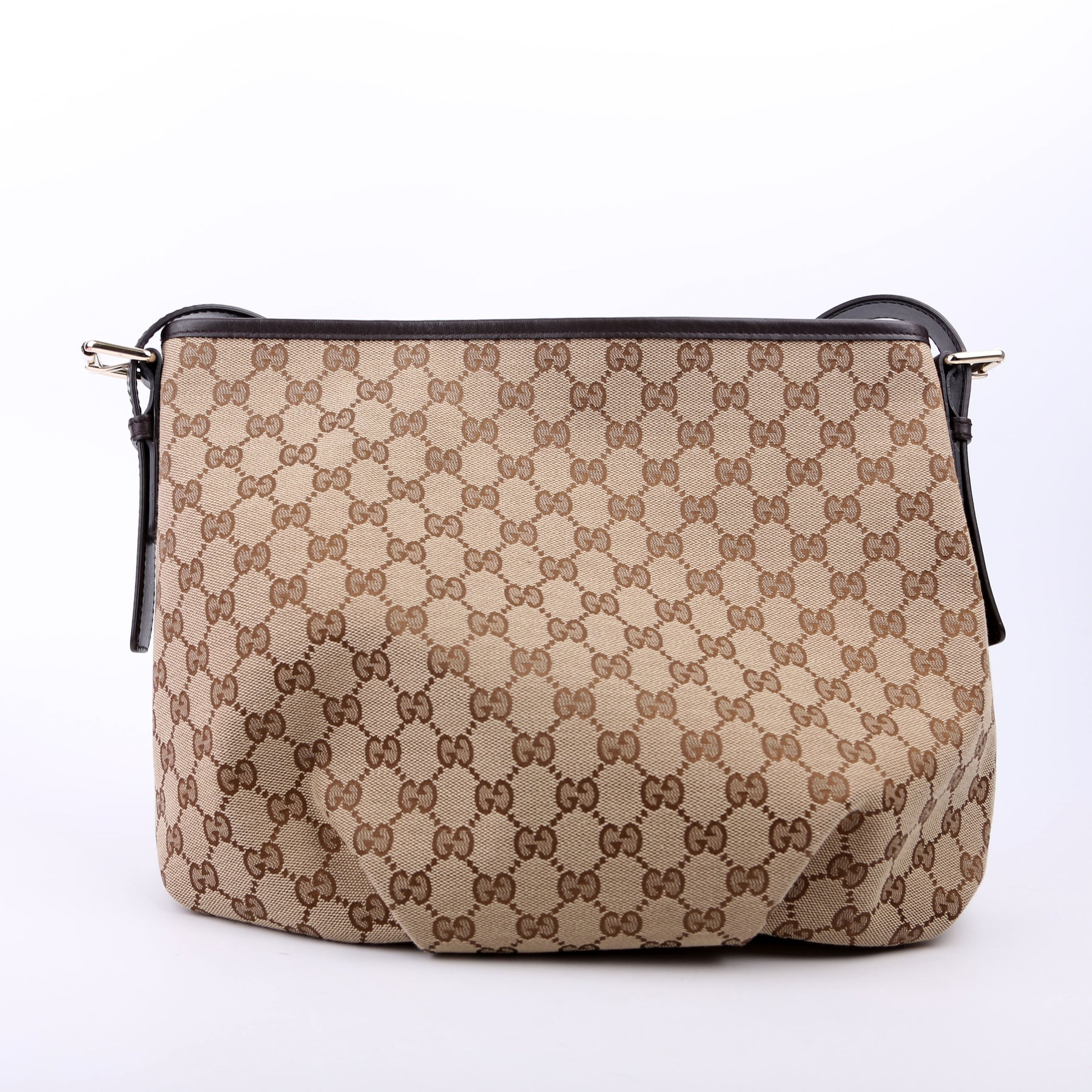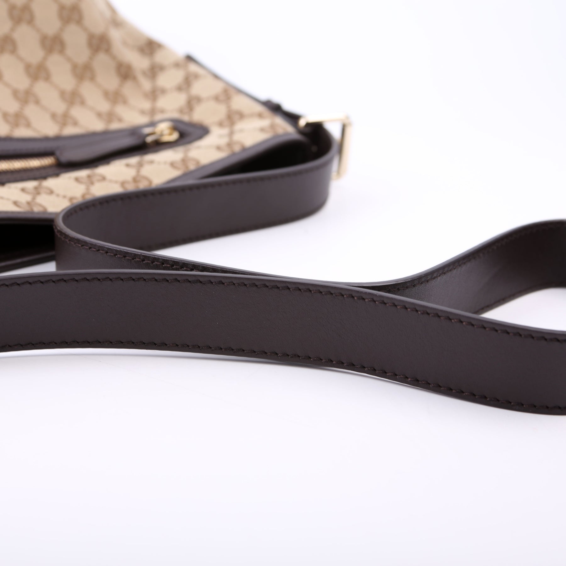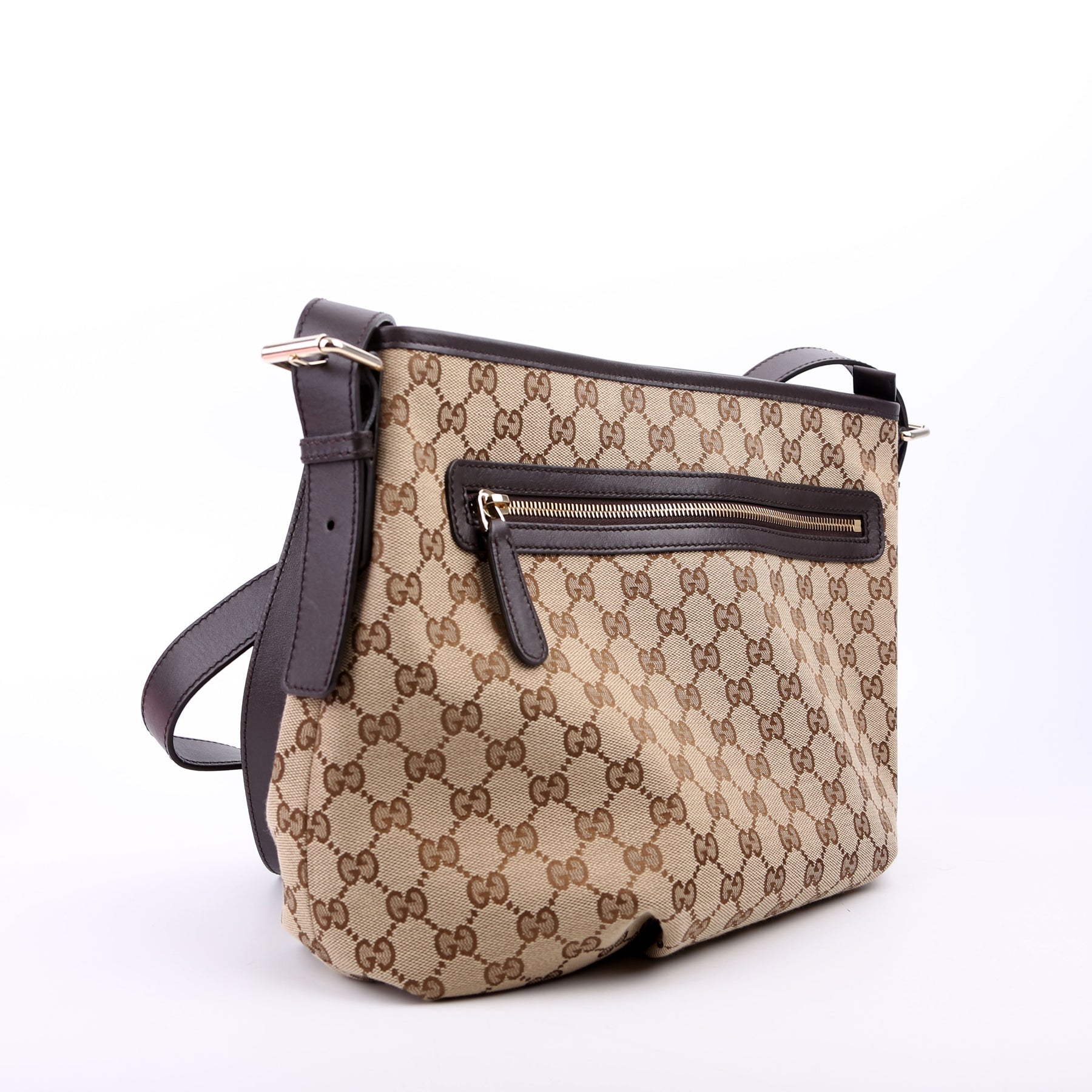 This pre-owned Gucci GG Crossbody is guaranteed 100% authentic. The exterior is in the classic Gucci GG canvas.