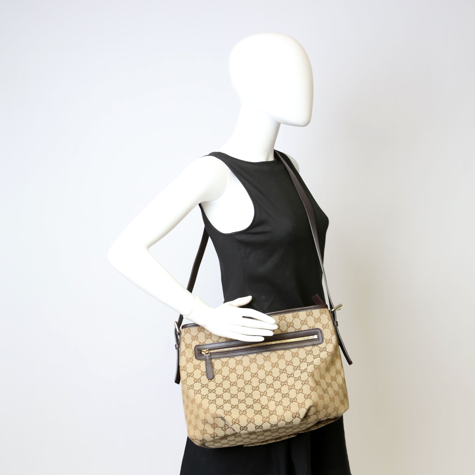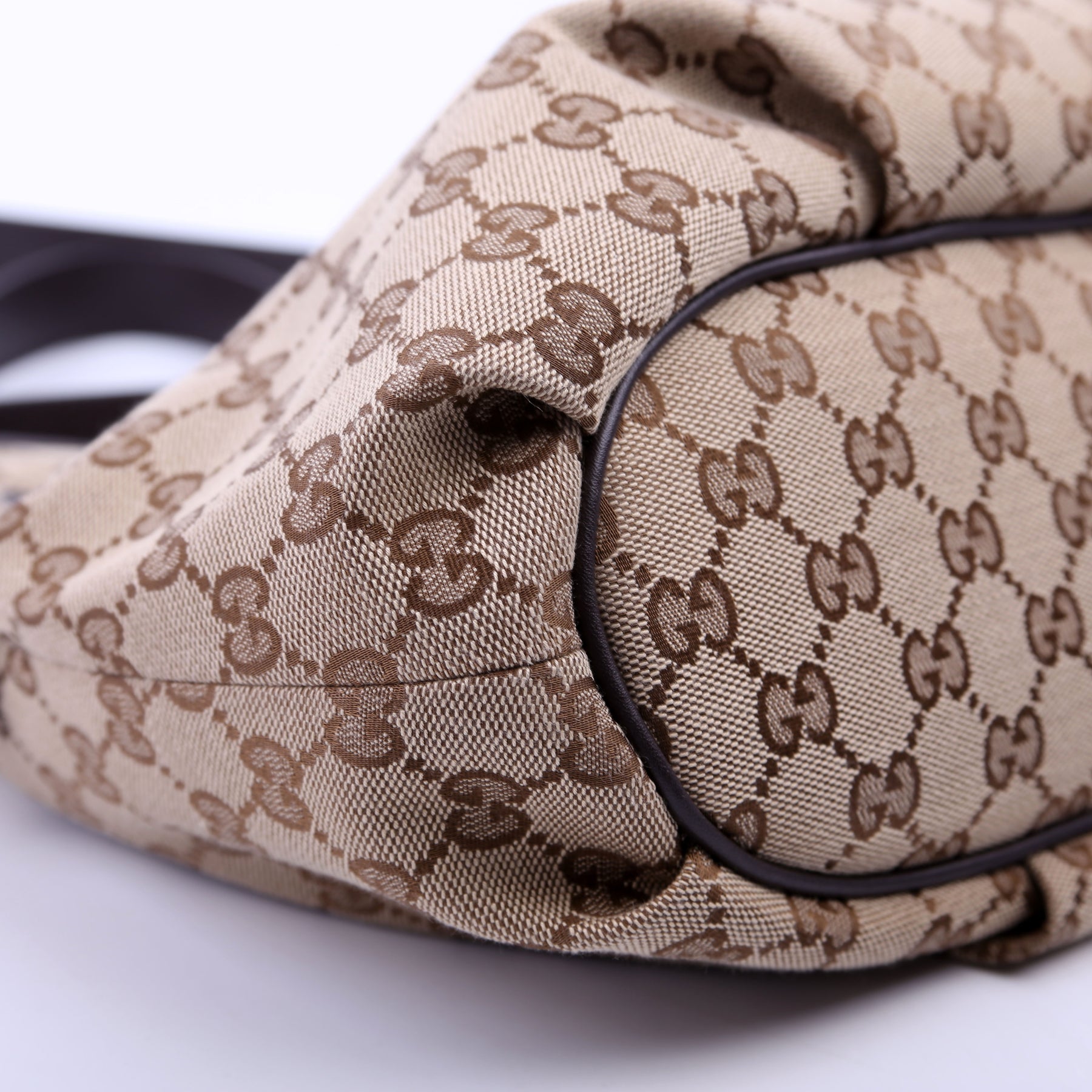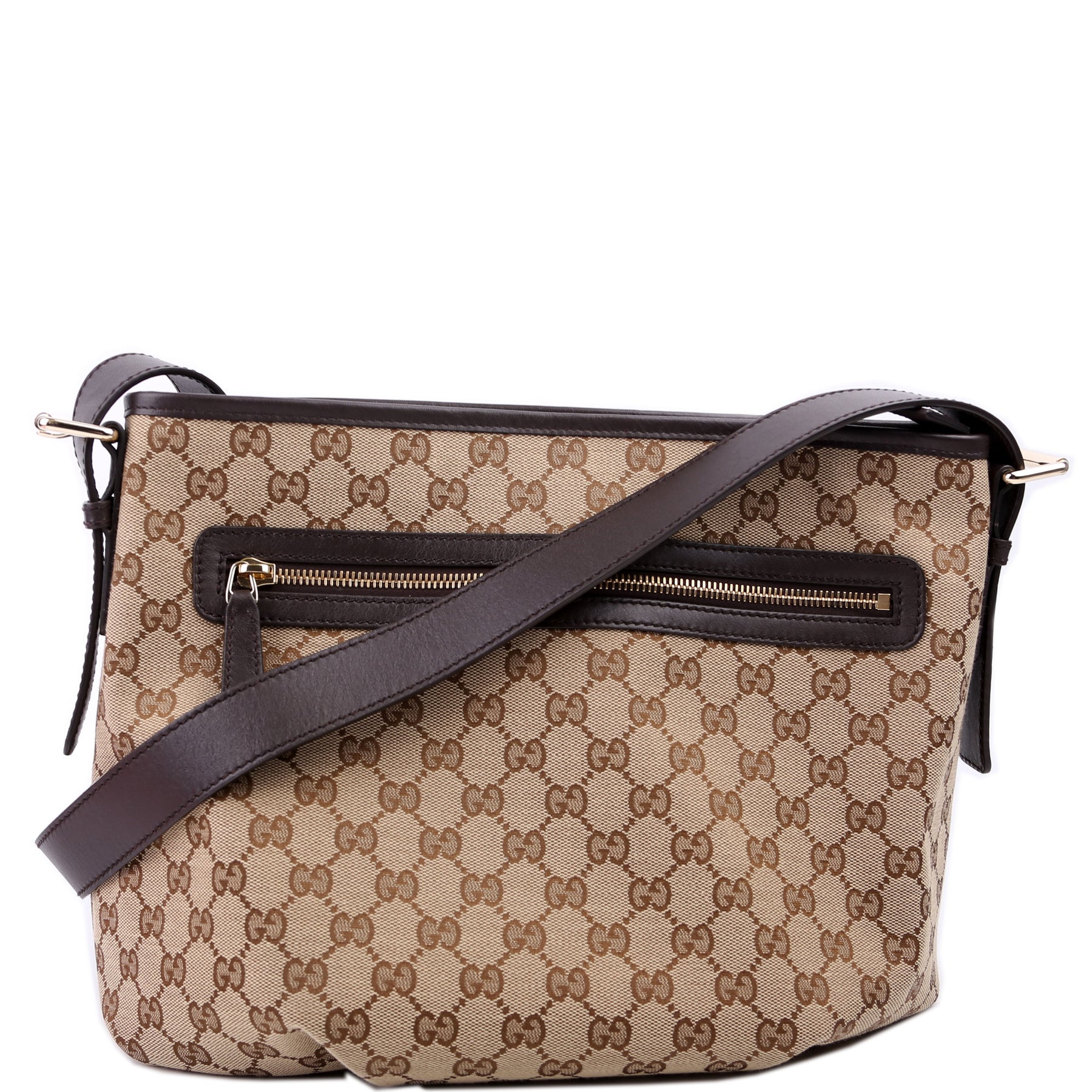 This pre-owned Gucci GG Crossbody is guaranteed 100% authentic. The exterior is in the classic Gucci GG canvas.