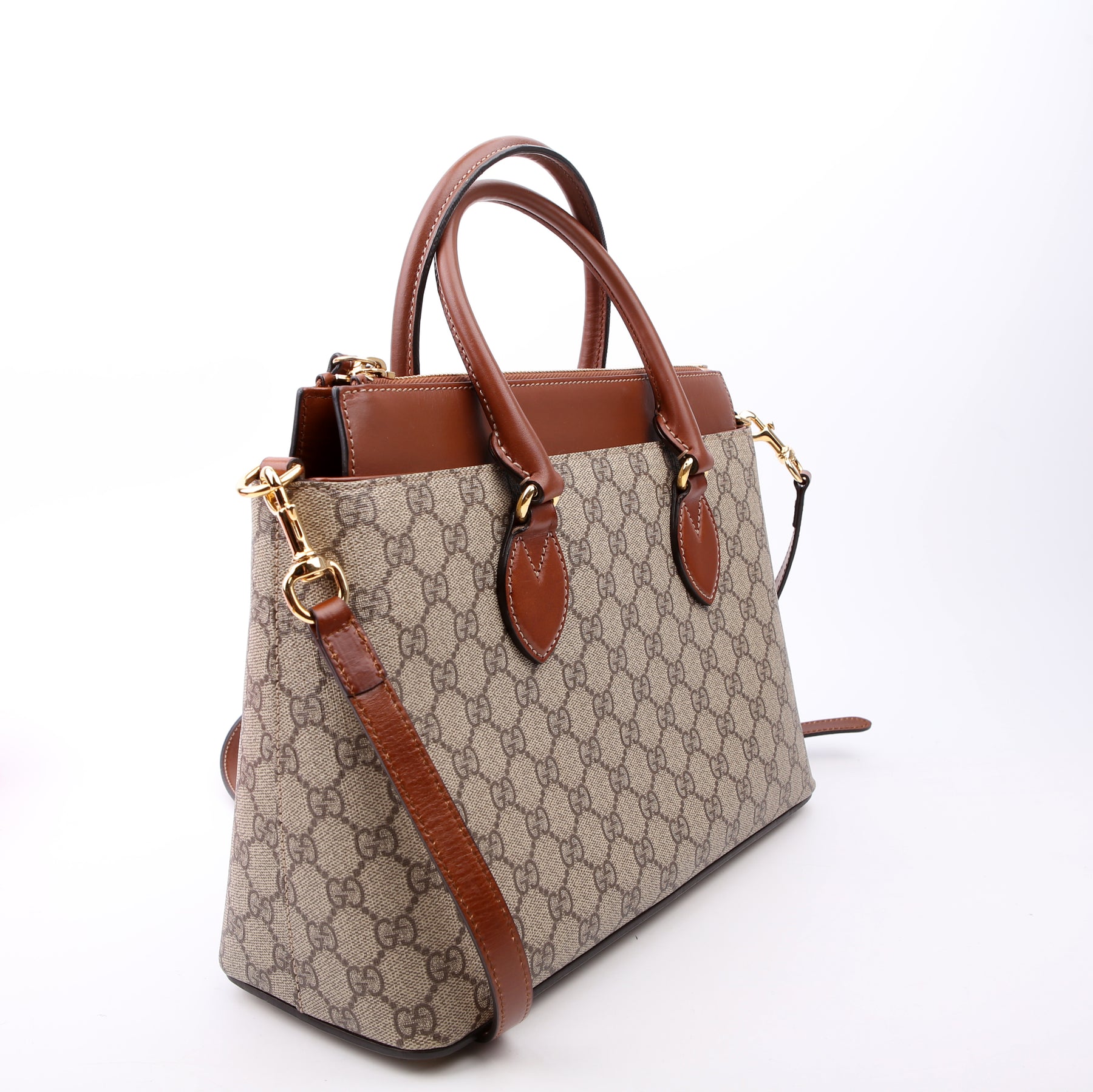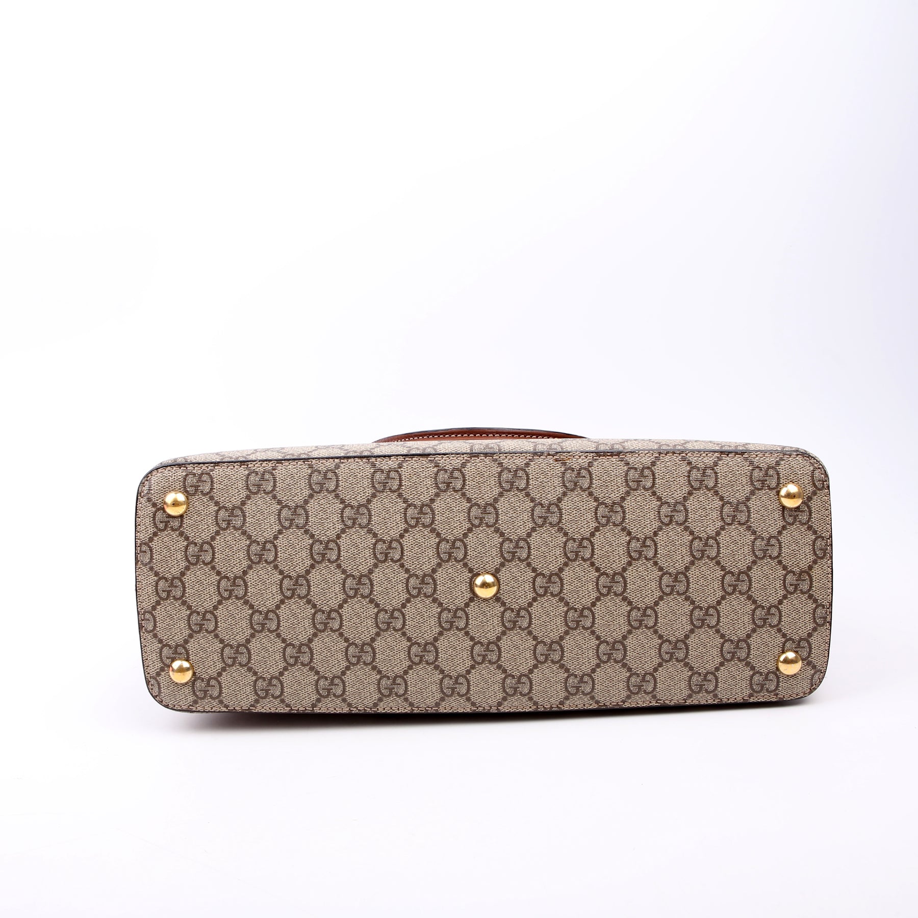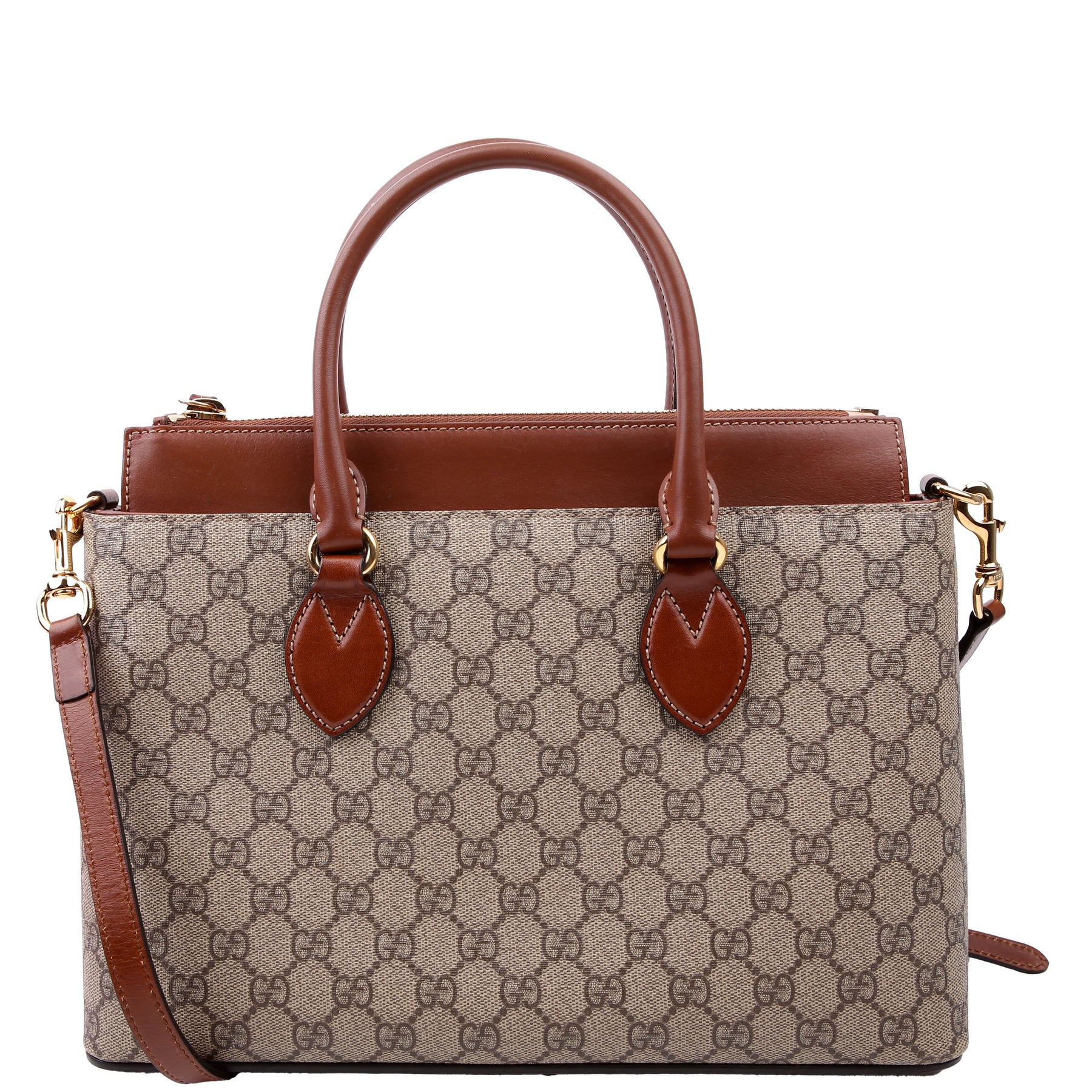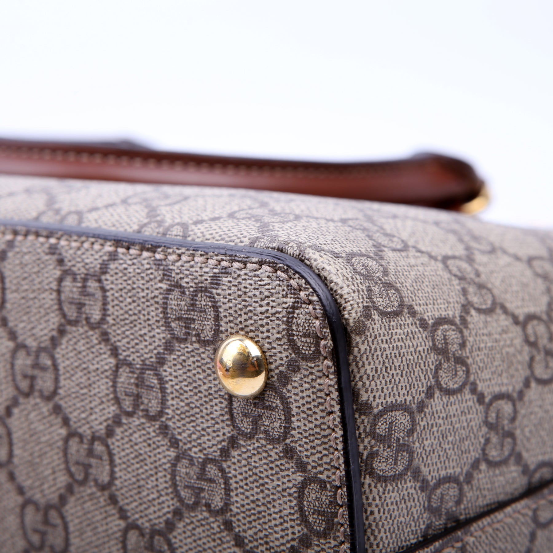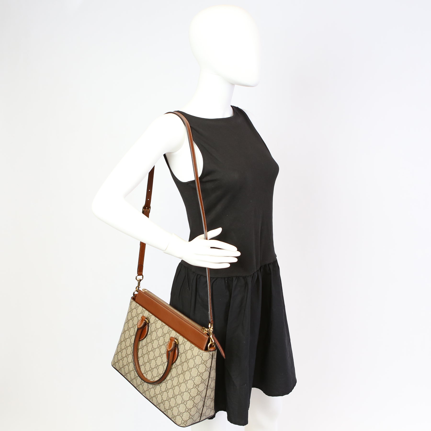 This pre-owned Gucci GG Supreme Small Zip Tote is guaranteed 100% authentic. The exterior is in the classic Gucci GG Supreme coated canvas.