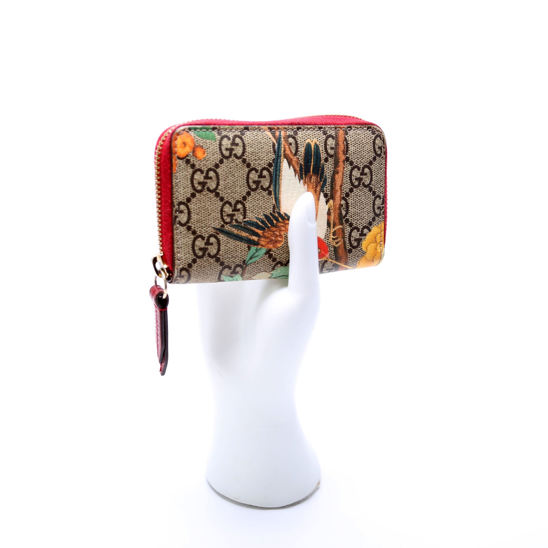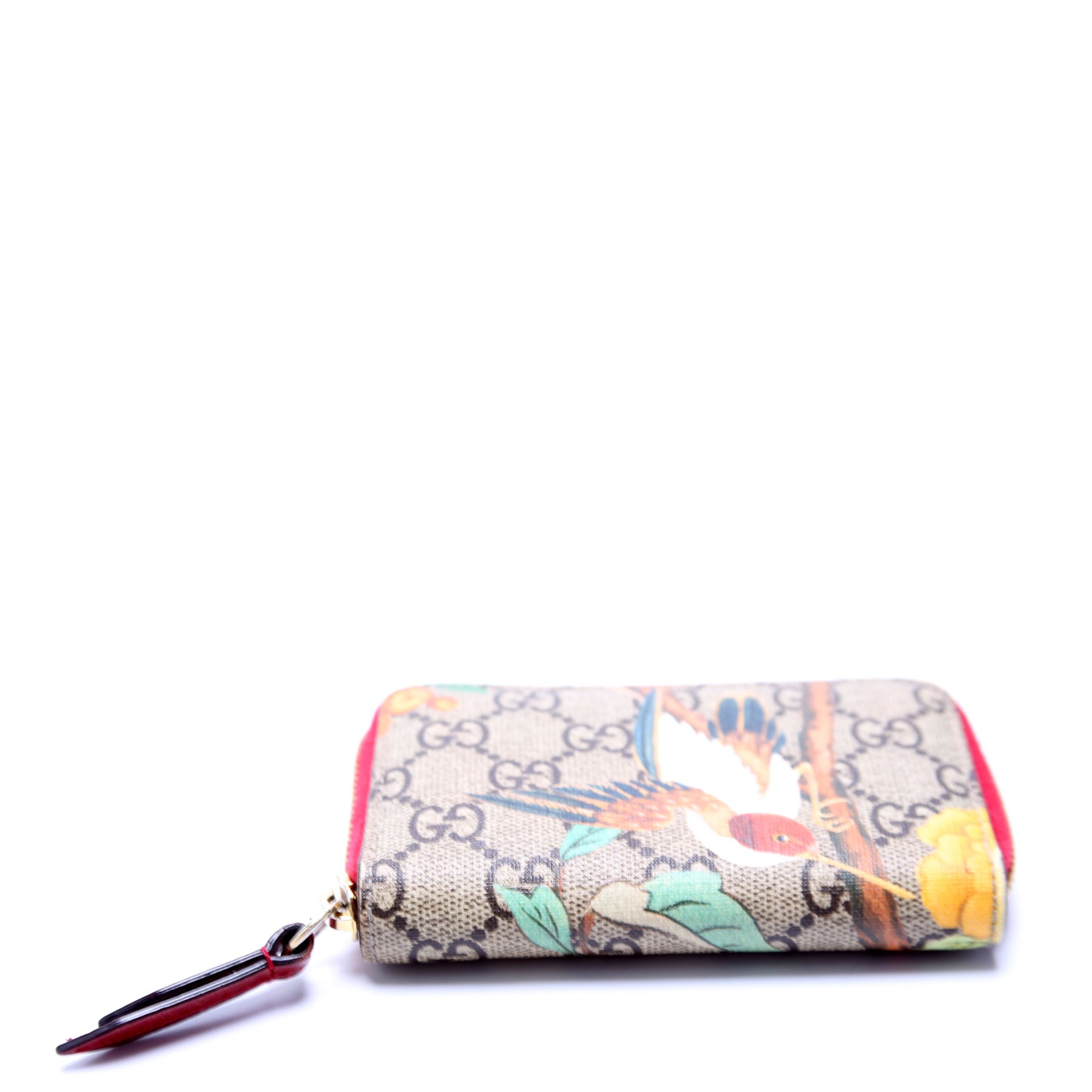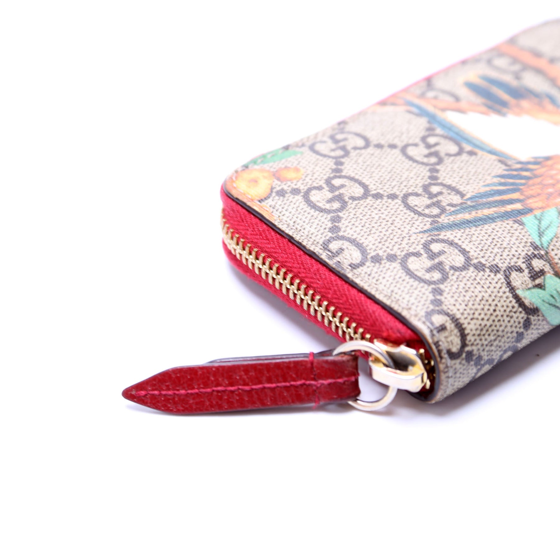 This pre-owned Gucci GG Supreme Tian Zip Around Card Case is guaranteed 100% authentic.