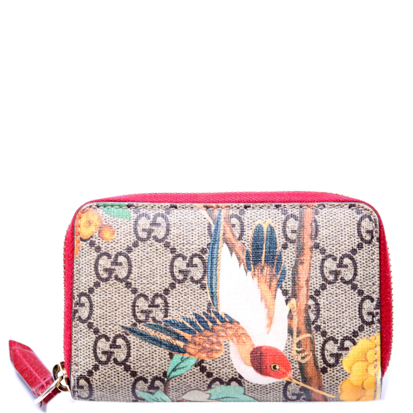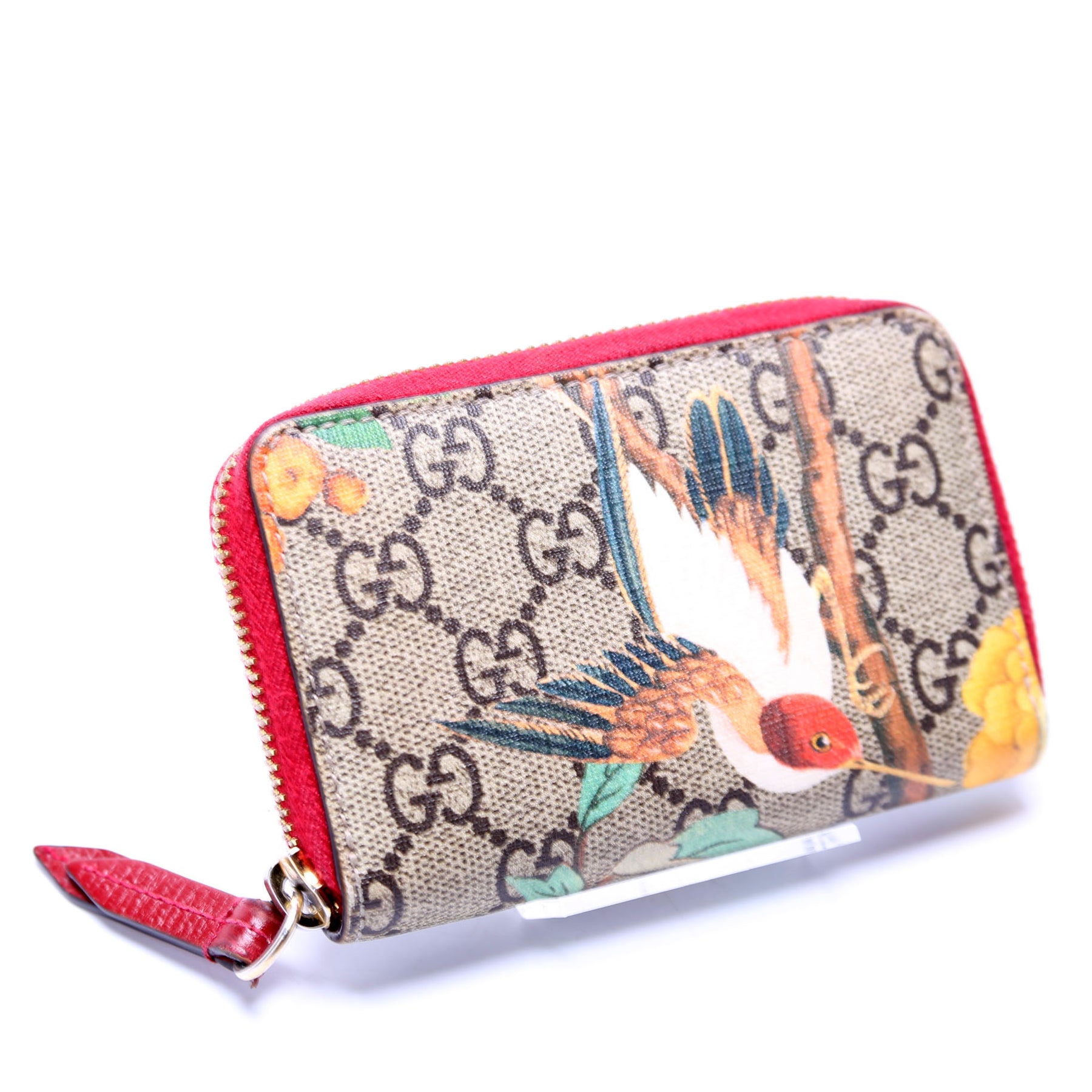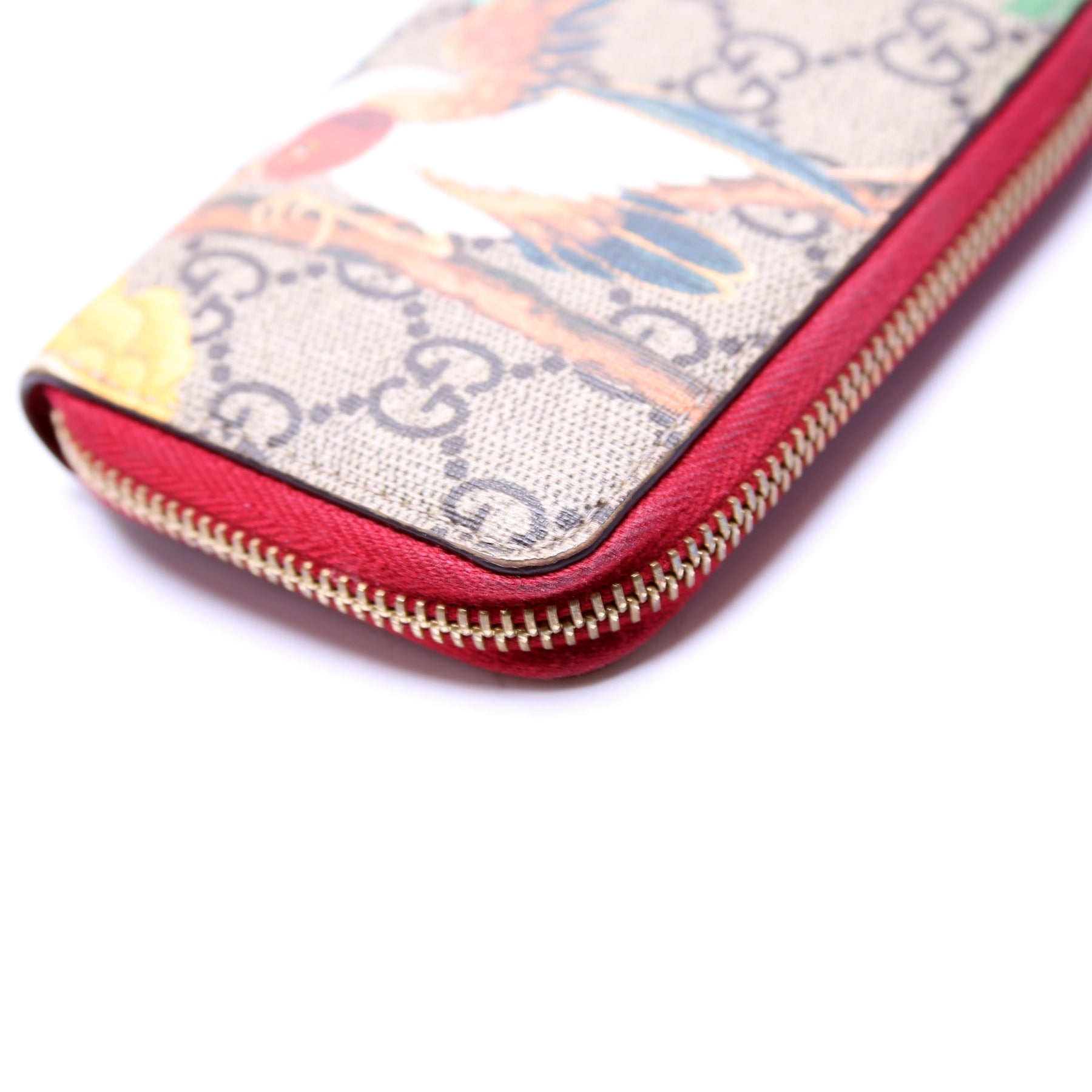 This pre-owned Gucci GG Supreme Tian Zip Around Card Case is guaranteed 100% authentic.