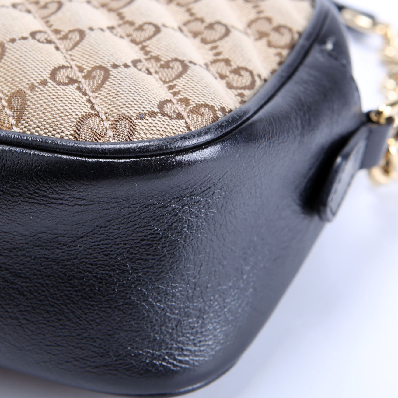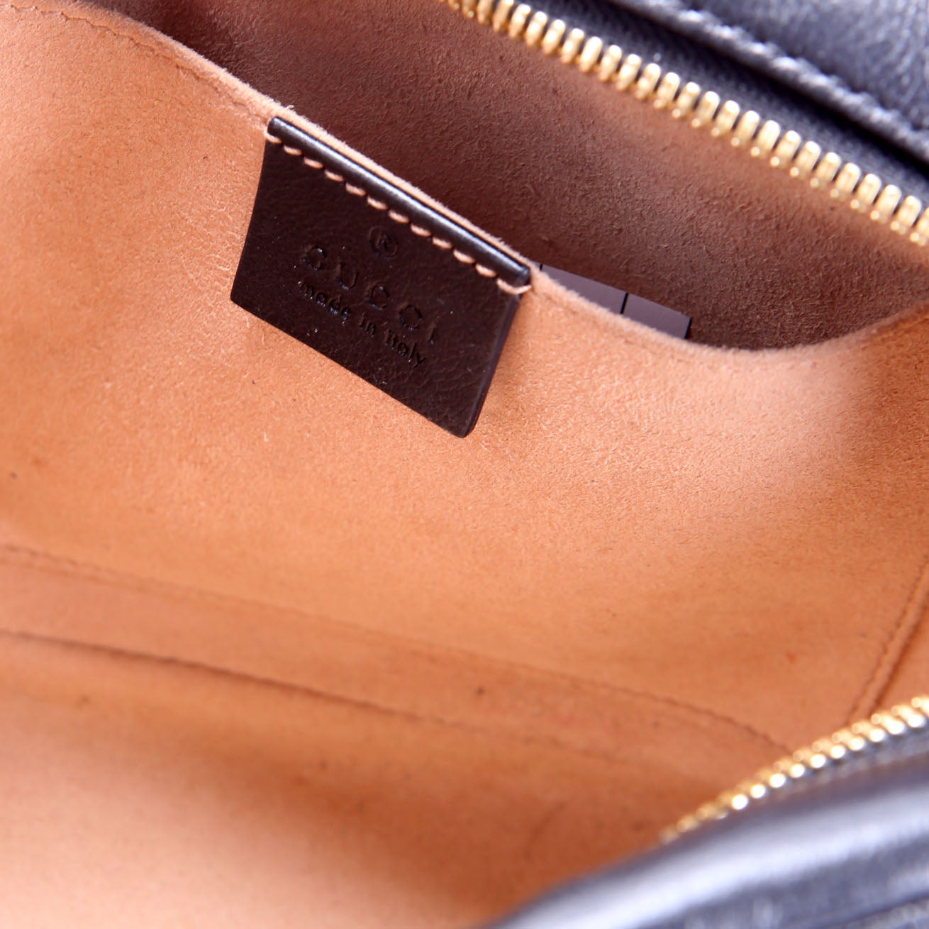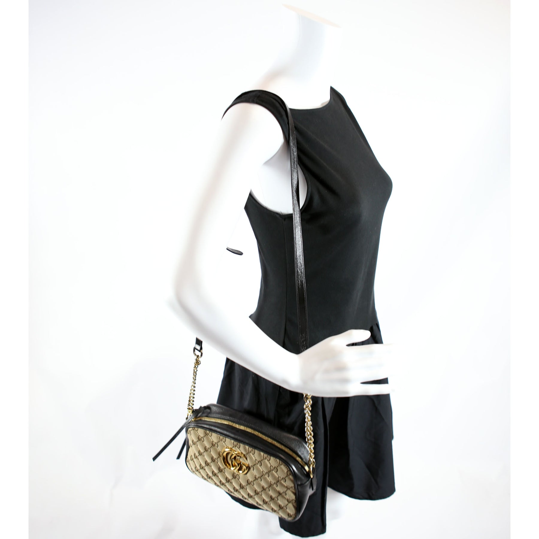 This pre-owned Gucci Marmont Small GG Canvas Camera Bag is guaranteed 100% authentic. The exterior is in the classic Gucci GG Canvas.