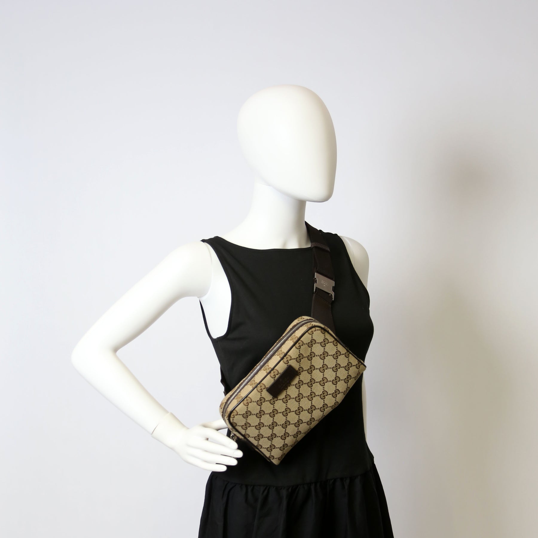 This pre-owned Gucci GG Canvas Belt Bag is guaranteed 100% authentic. The exterior is in the classic Gucci GG canvas.