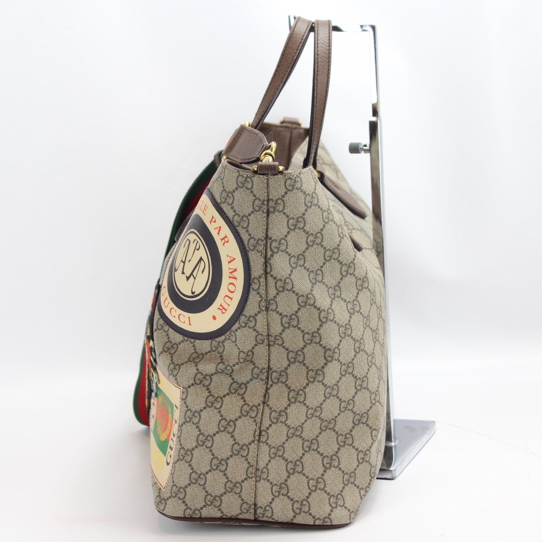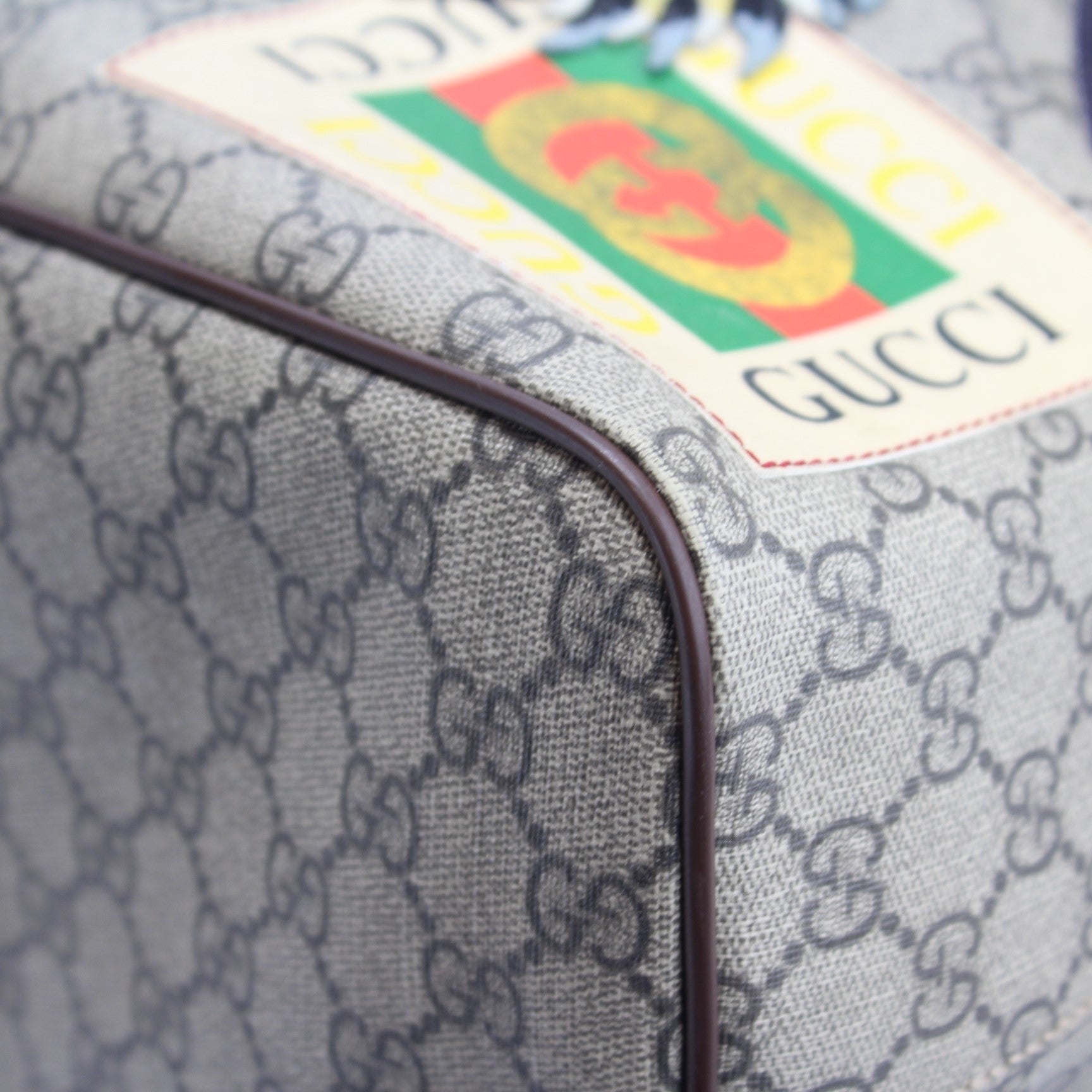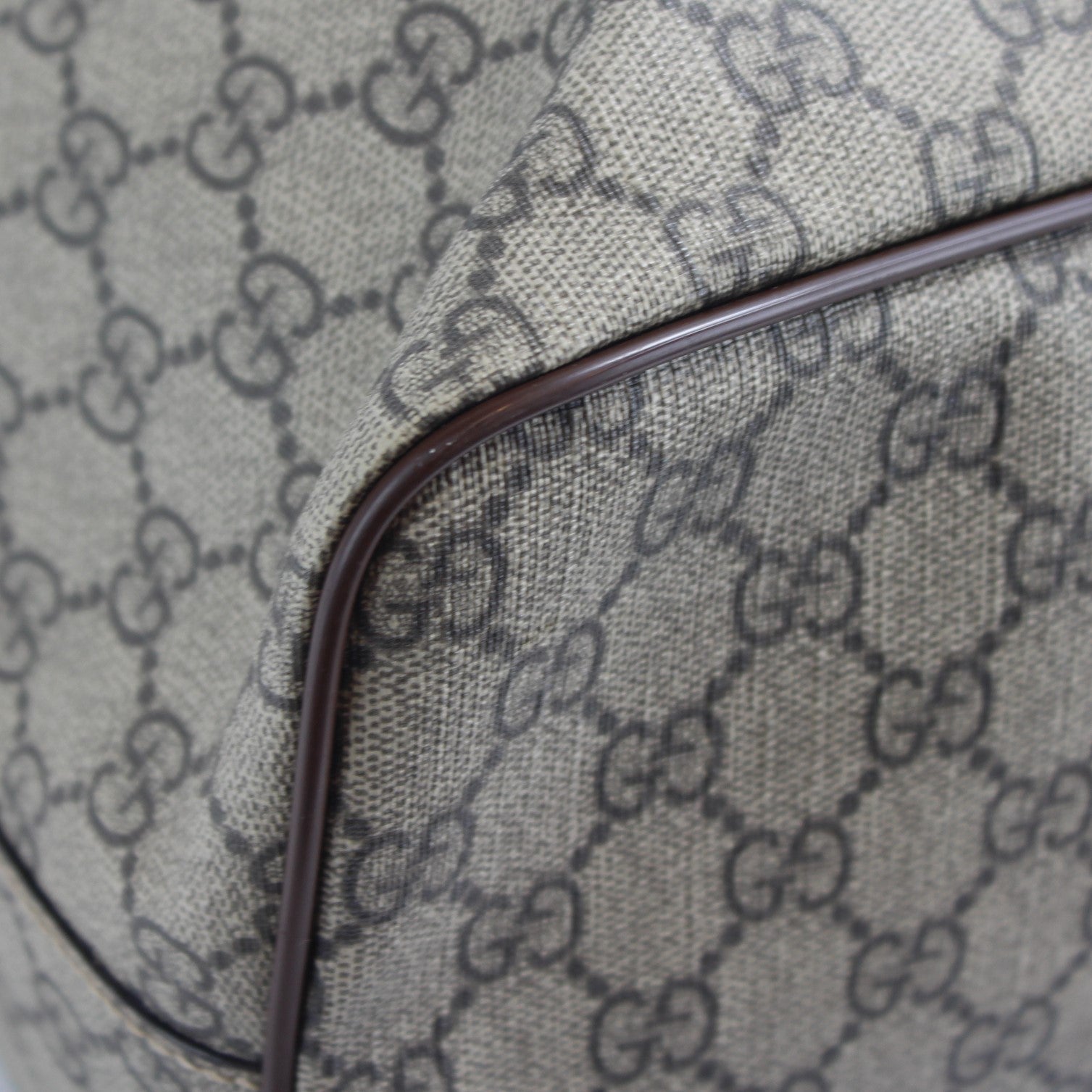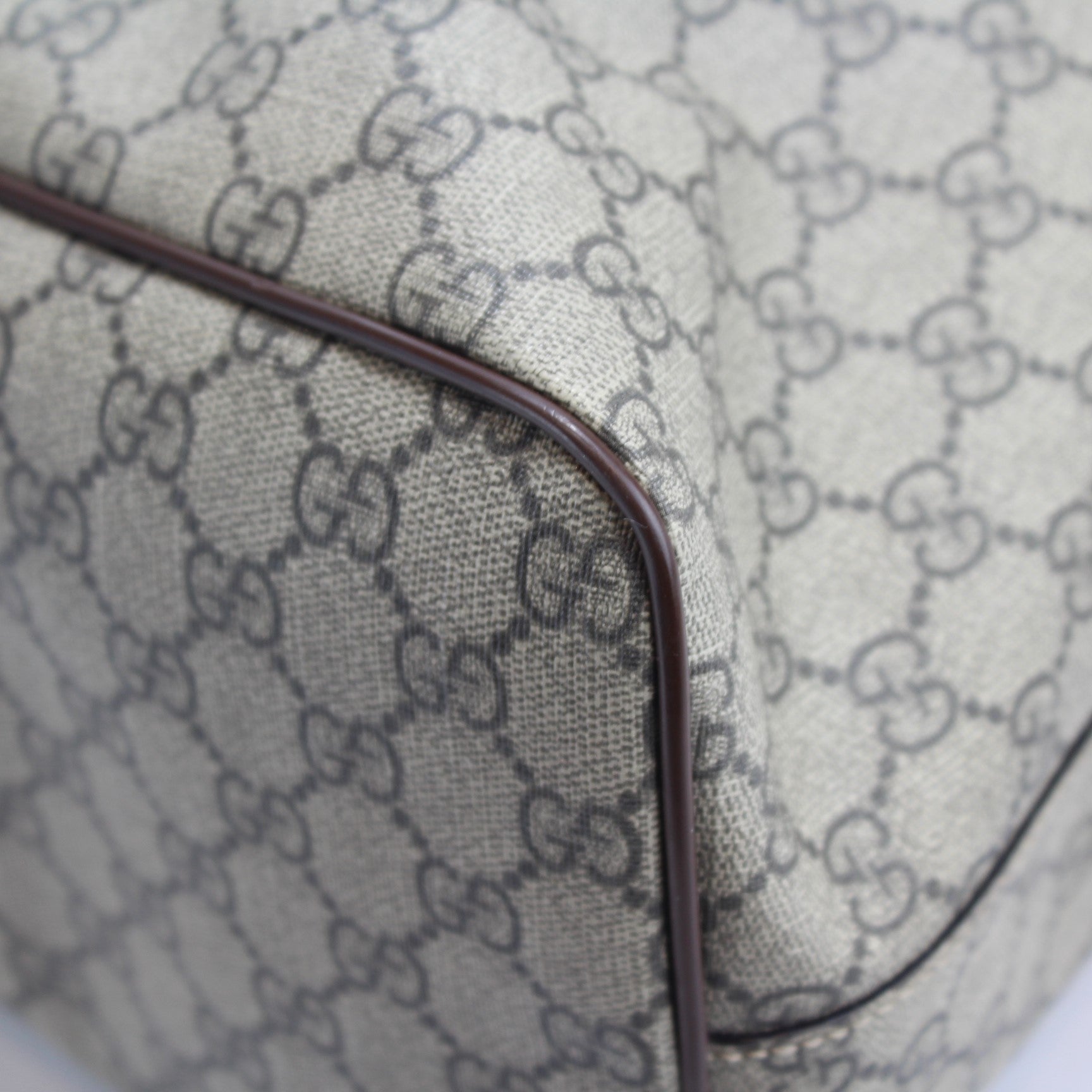 This pre-owned Gucci GG Supreme Carryall is guaranteed 100% authentic. The exterior is in the classic Gucci GG coated canvas.
