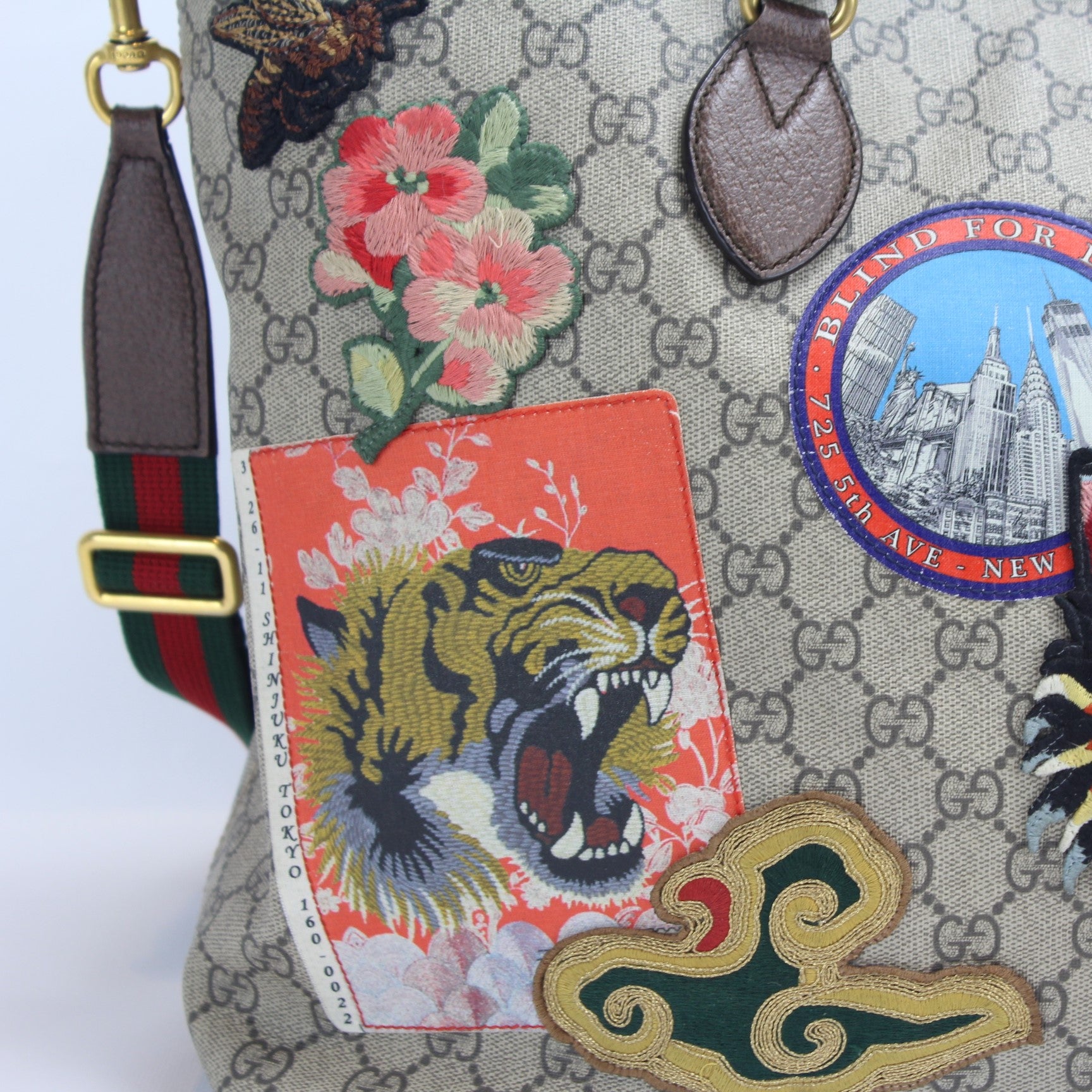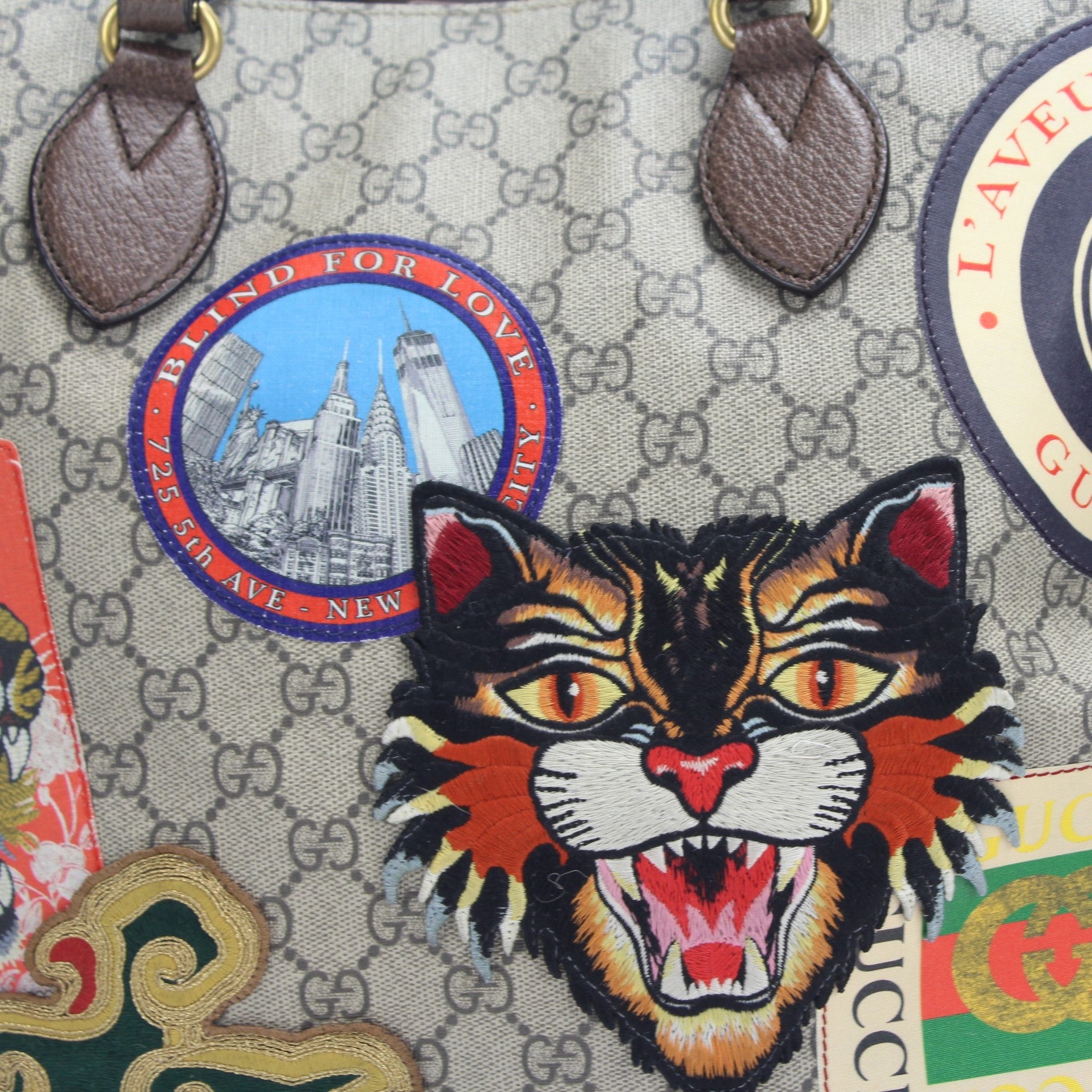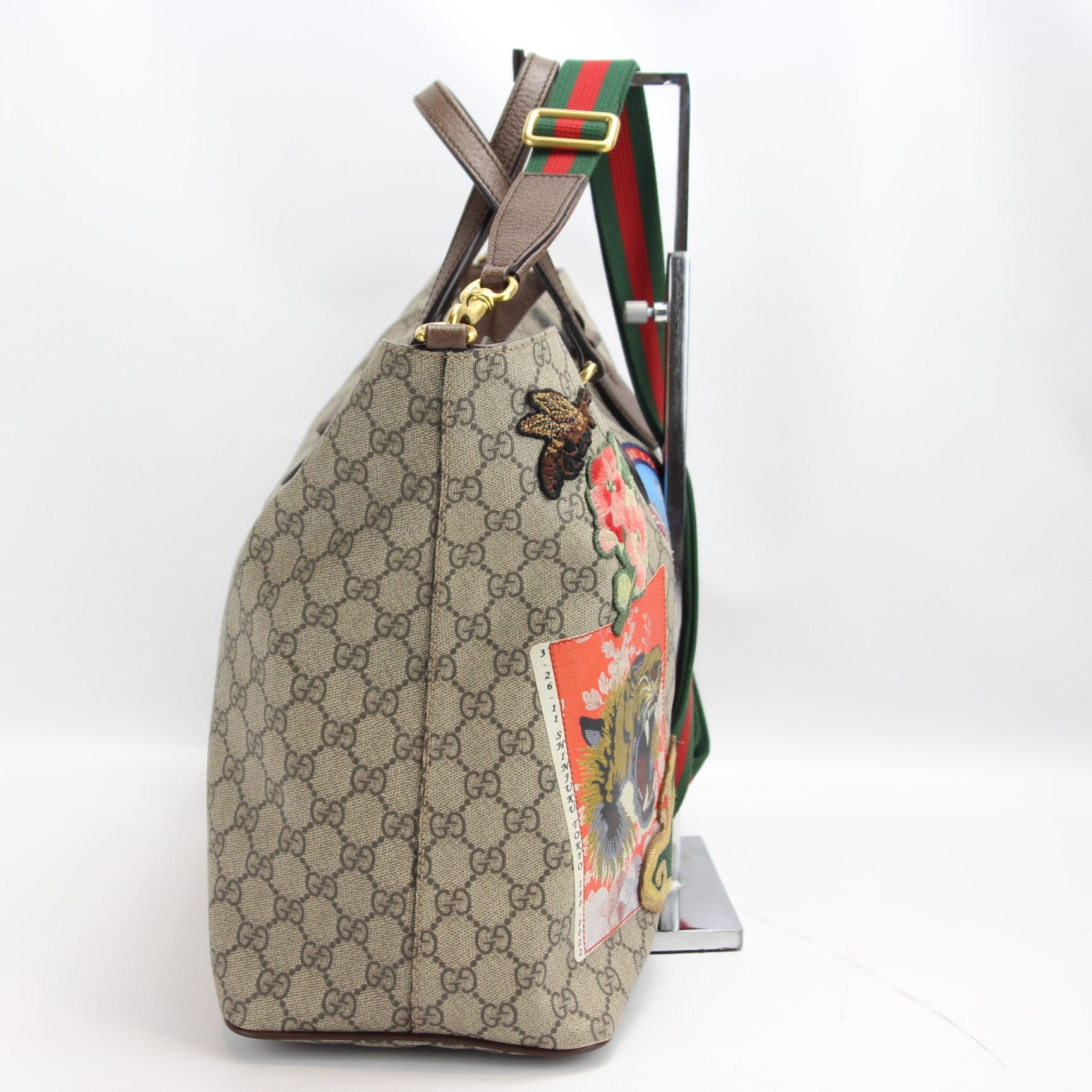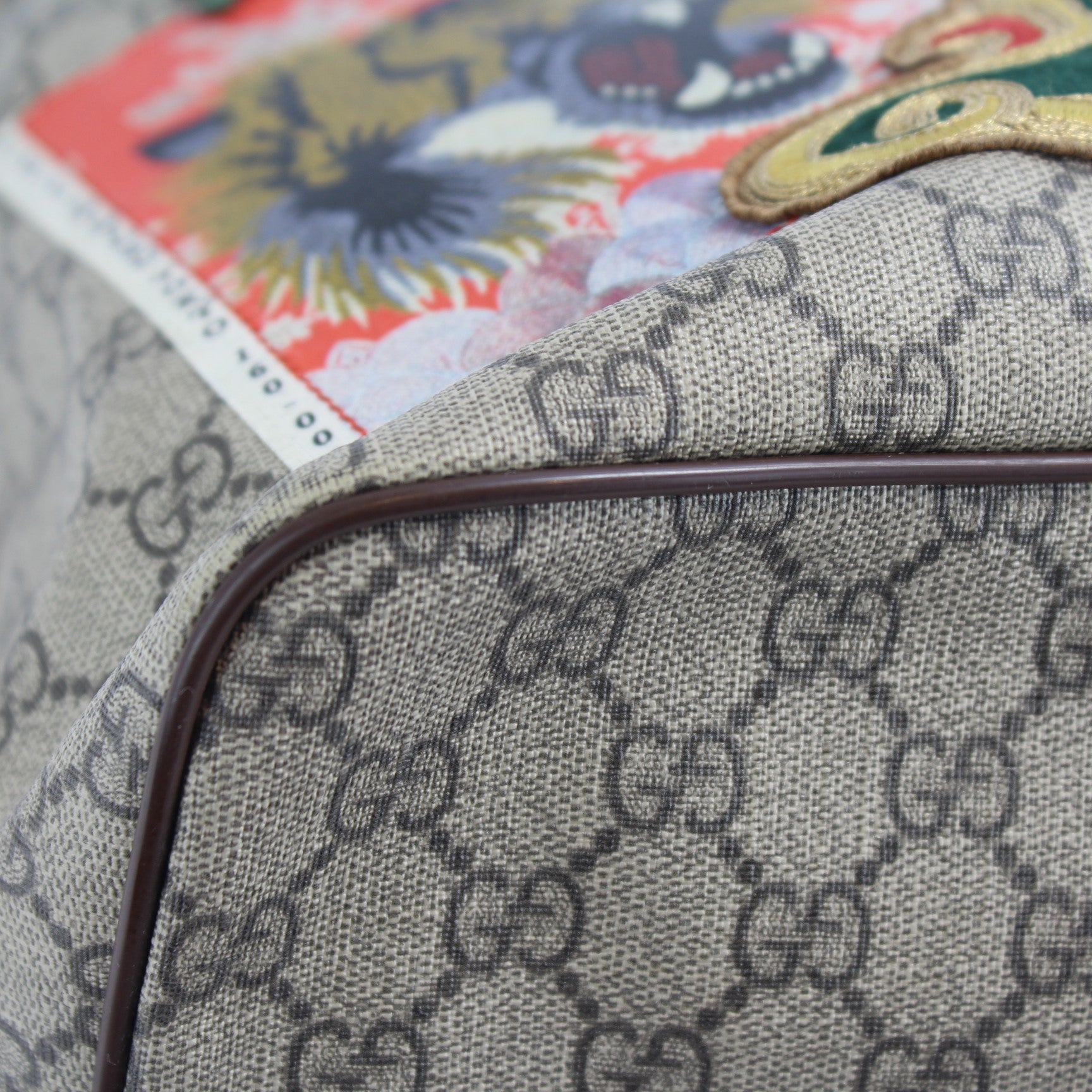 This pre-owned Gucci GG Supreme Carryall is guaranteed 100% authentic. The exterior is in the classic Gucci GG coated canvas.