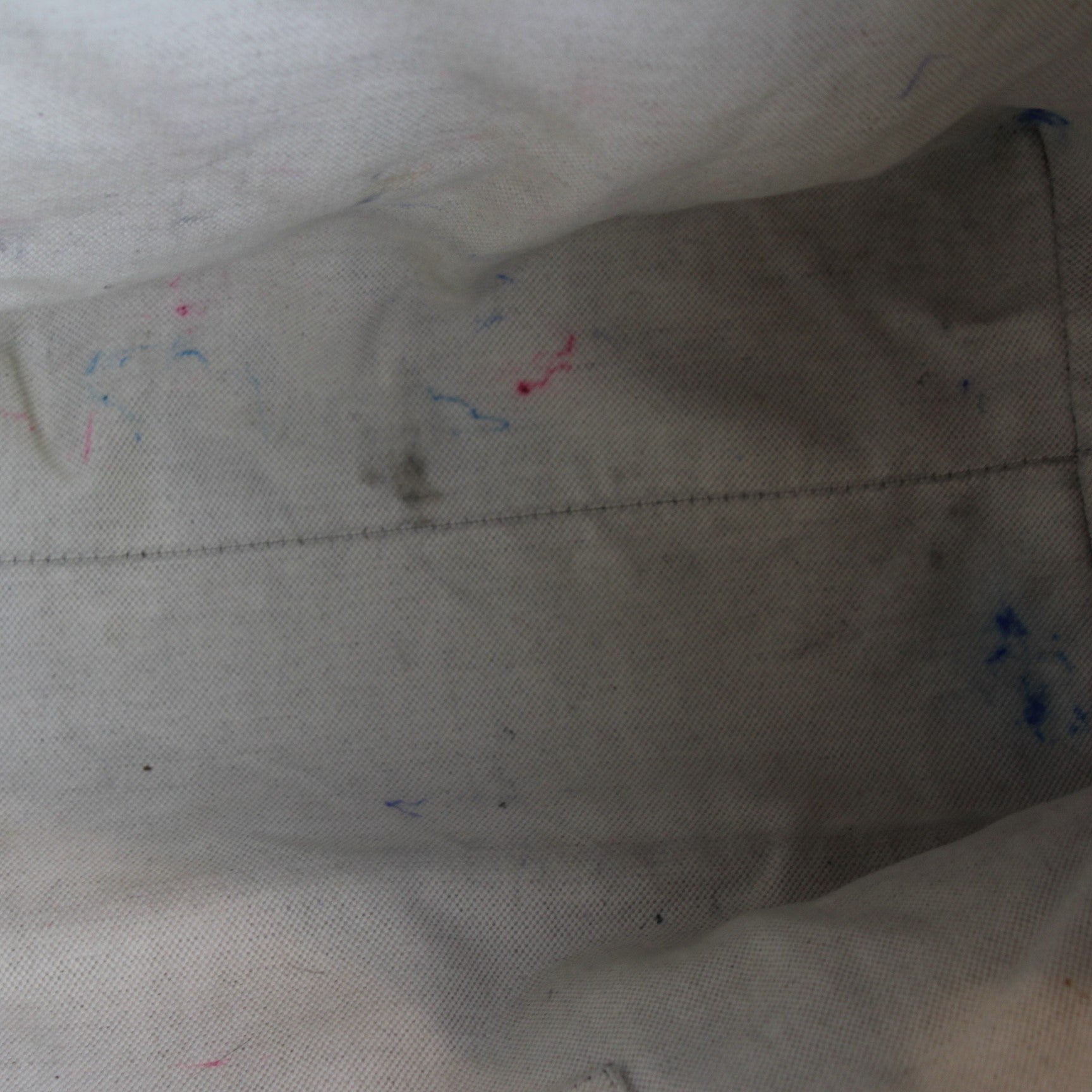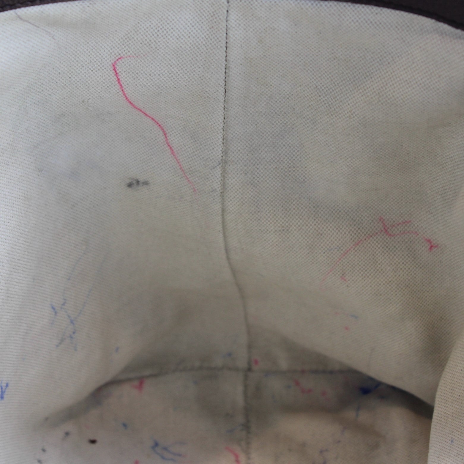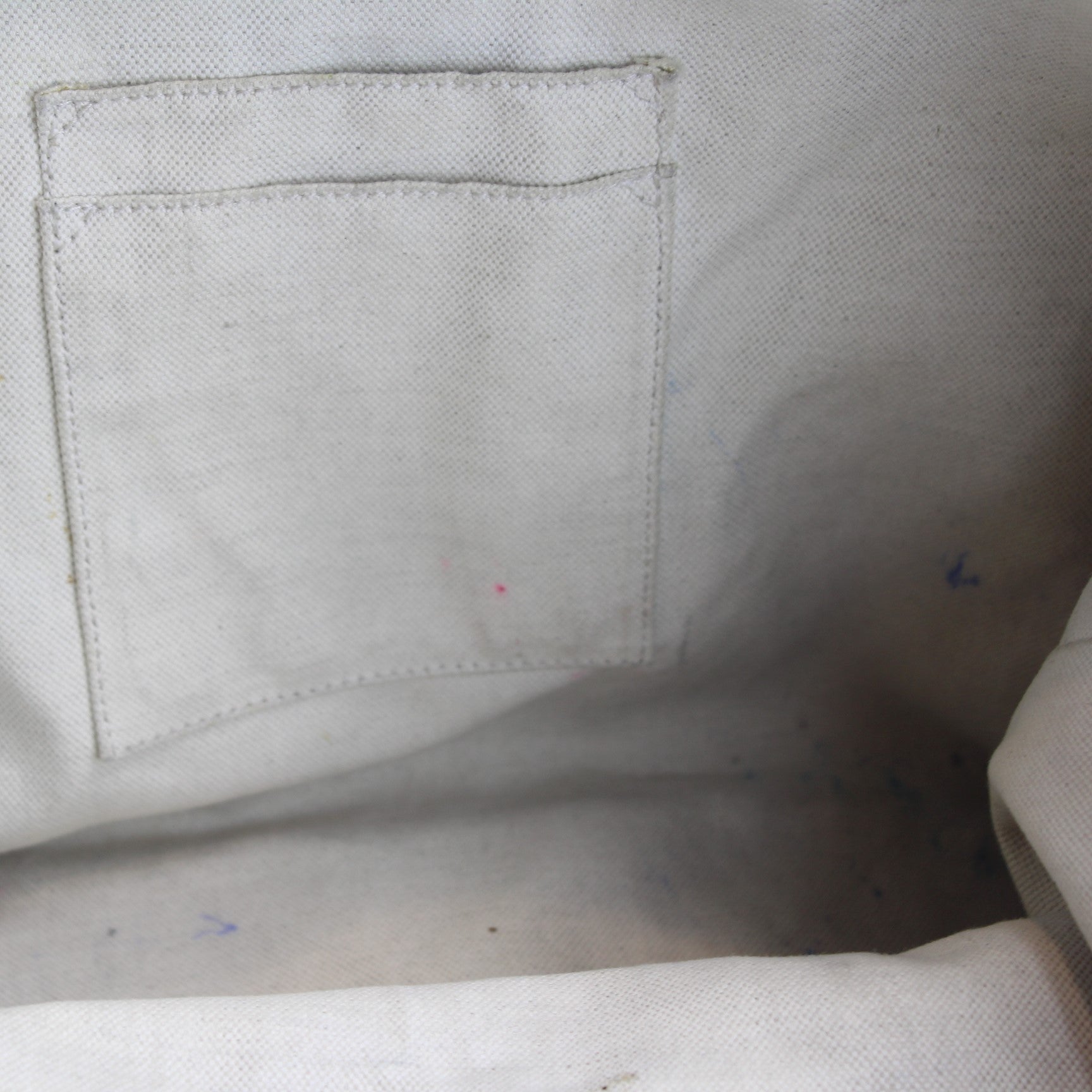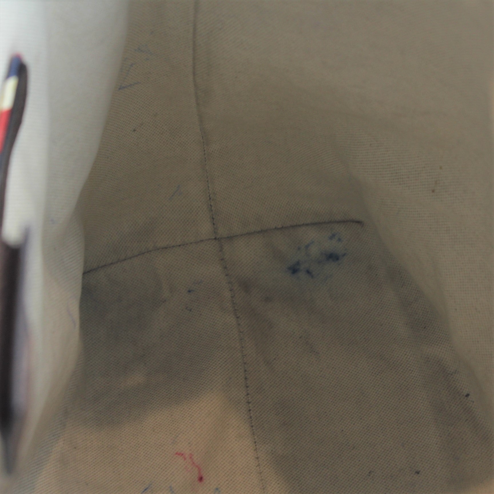 Interior: The interior is stained as pictured. The interior is free of rips or tears. The interior features one zipper pocket and two open pockets.