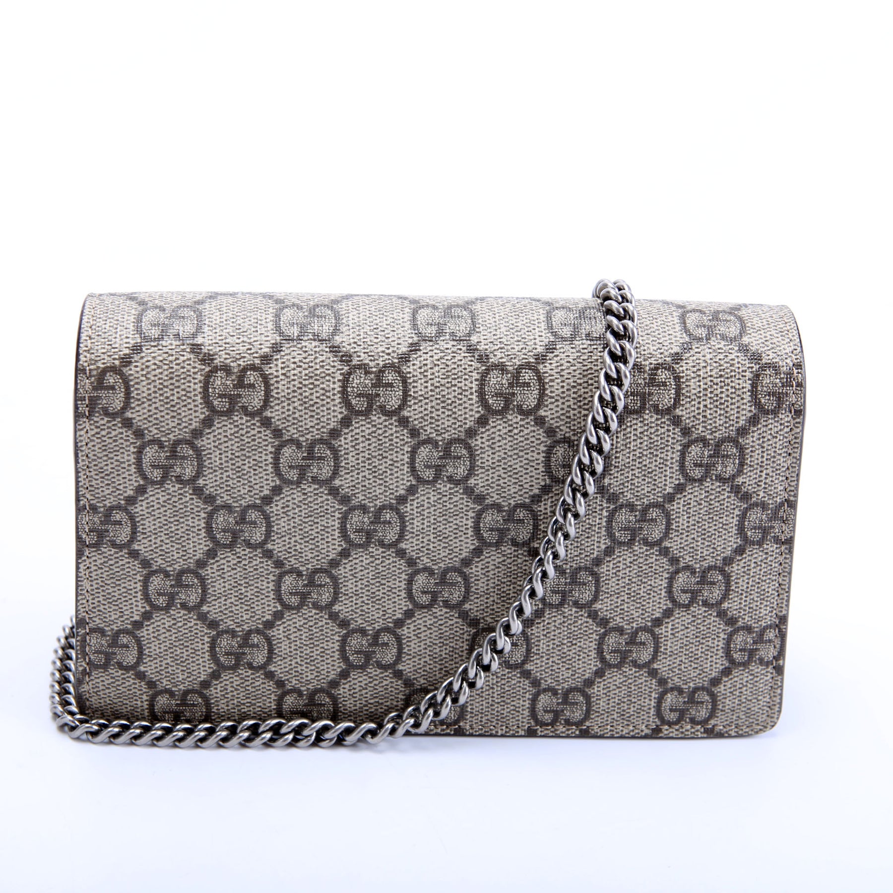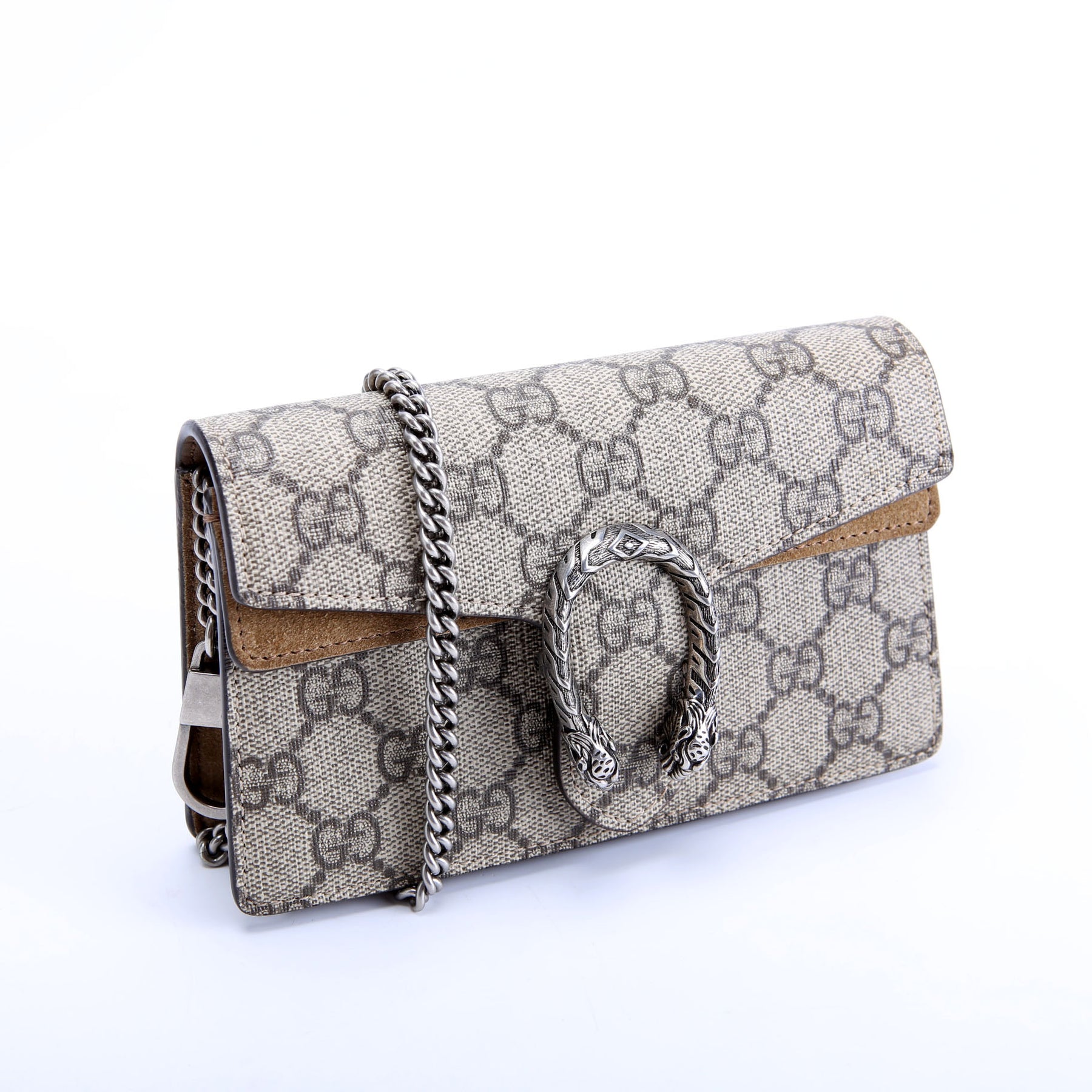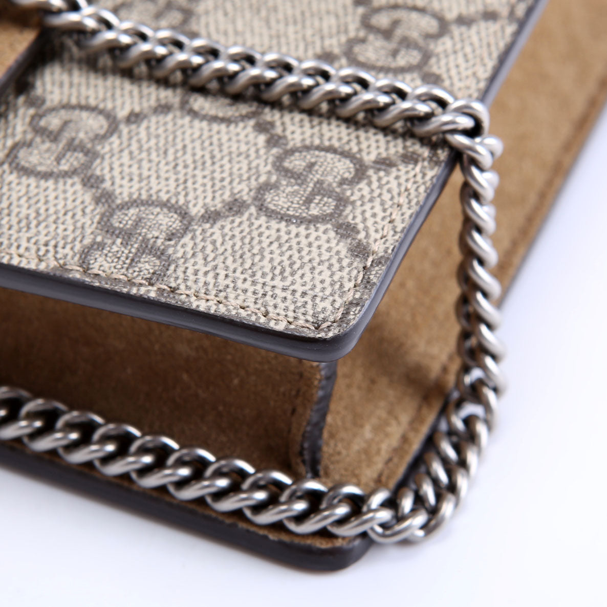 This pre-owned Gucci Dionysus GG Super Mini is guaranteed 100% authentic. The exterior is in the classic GG Supreme coated canvas.