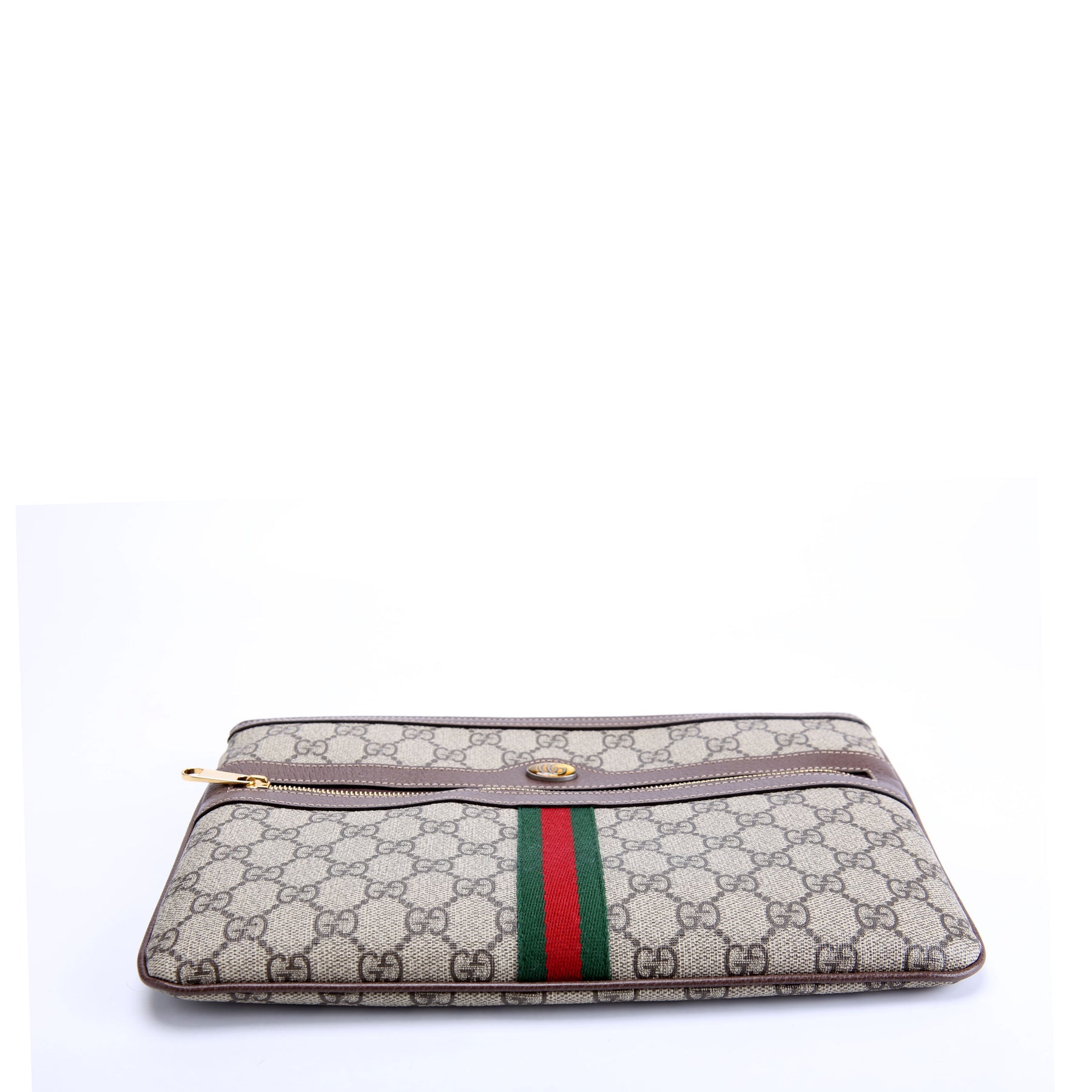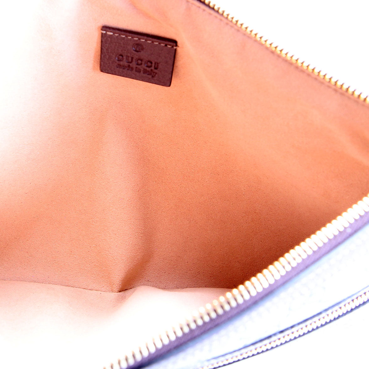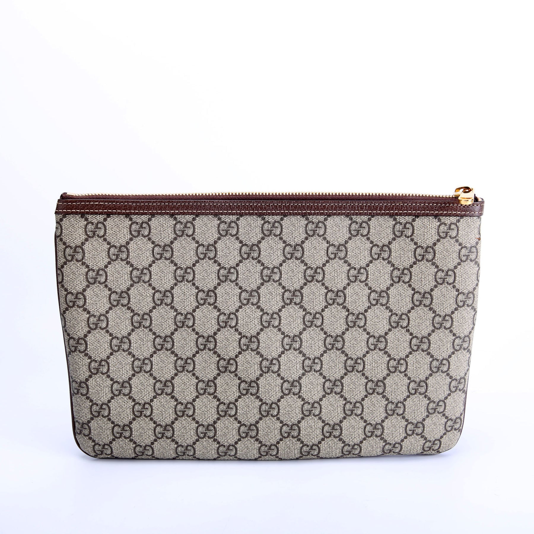 This pre-owned Gucci GG Supreme Ophidia Pouch is guaranteed 100% authentic. The exterior is in the classic Gucci GG Supreme coated canvas.