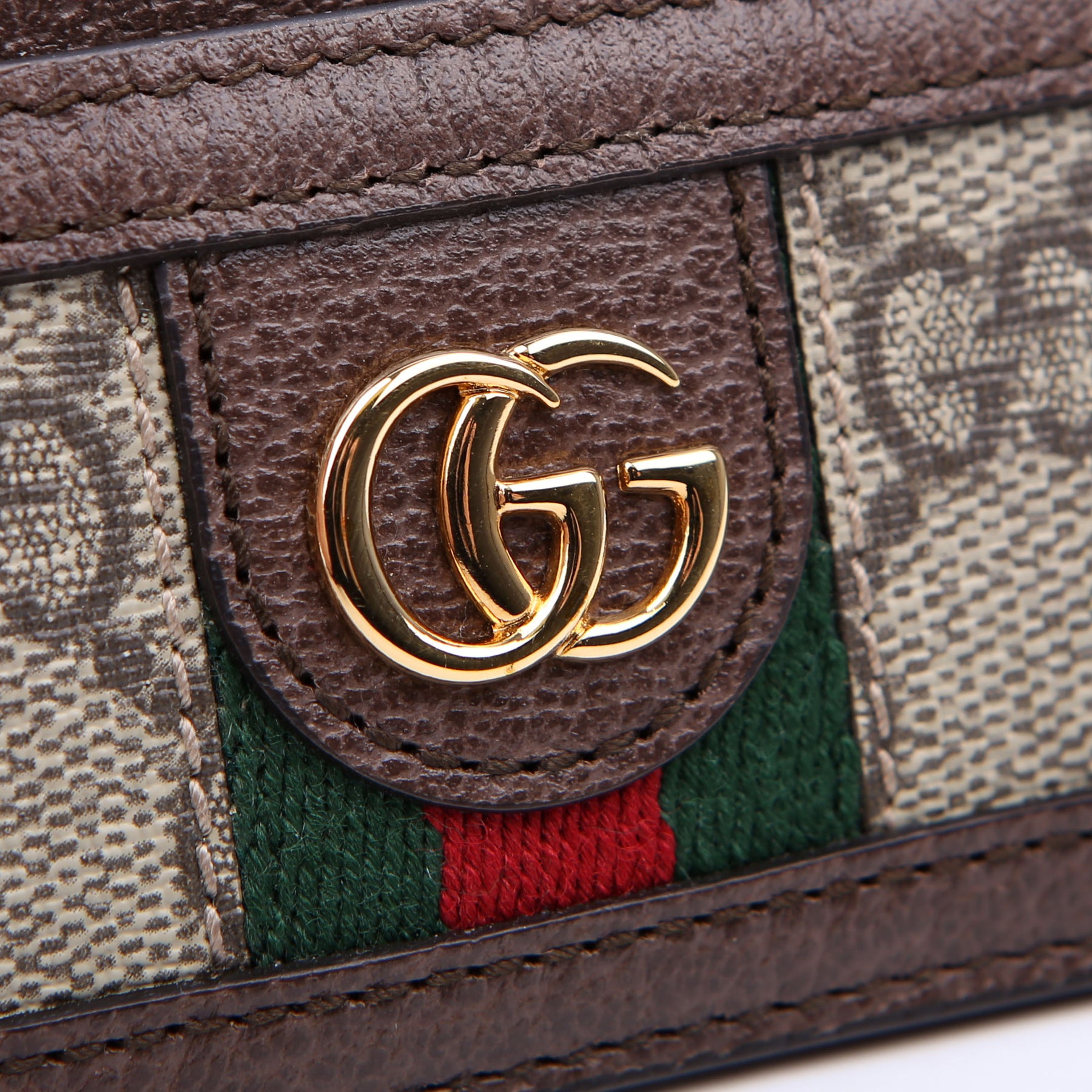 This pre-owned Gucci Ophidia GG Card Case is guaranteed 100% authentic. The exterior is in the classic Gucci GG Supreme coated canvas.