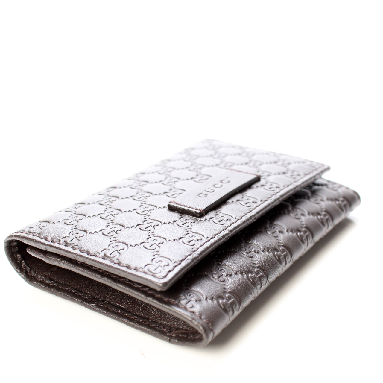This pre-owned Gucci Card Holder is guaranteed 100% authentic. The exterior is in the classicGucci Micrguccisima Leather.