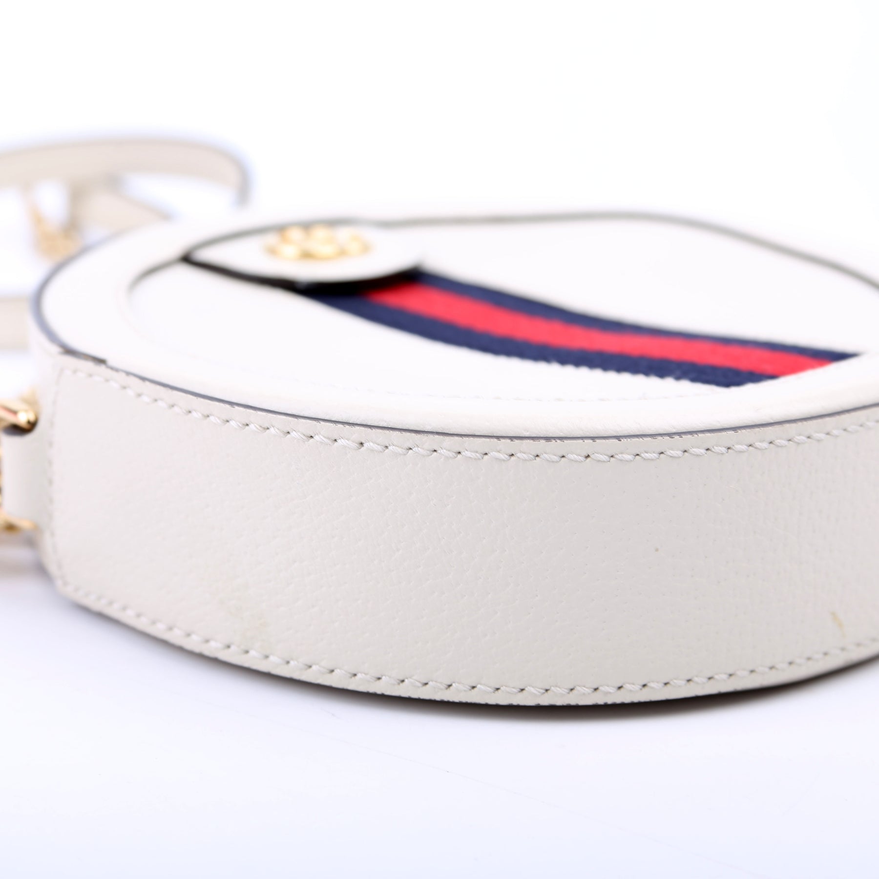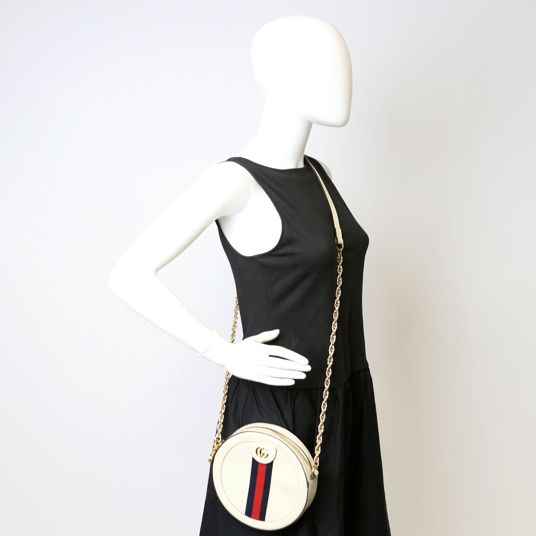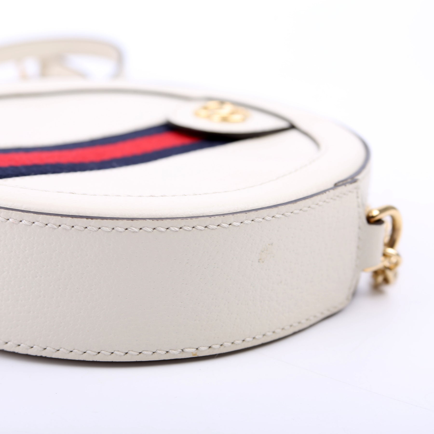 This pre-owned Gucci Ophidia Leather Round Small Crossbody is guaranteed 100% authentic.