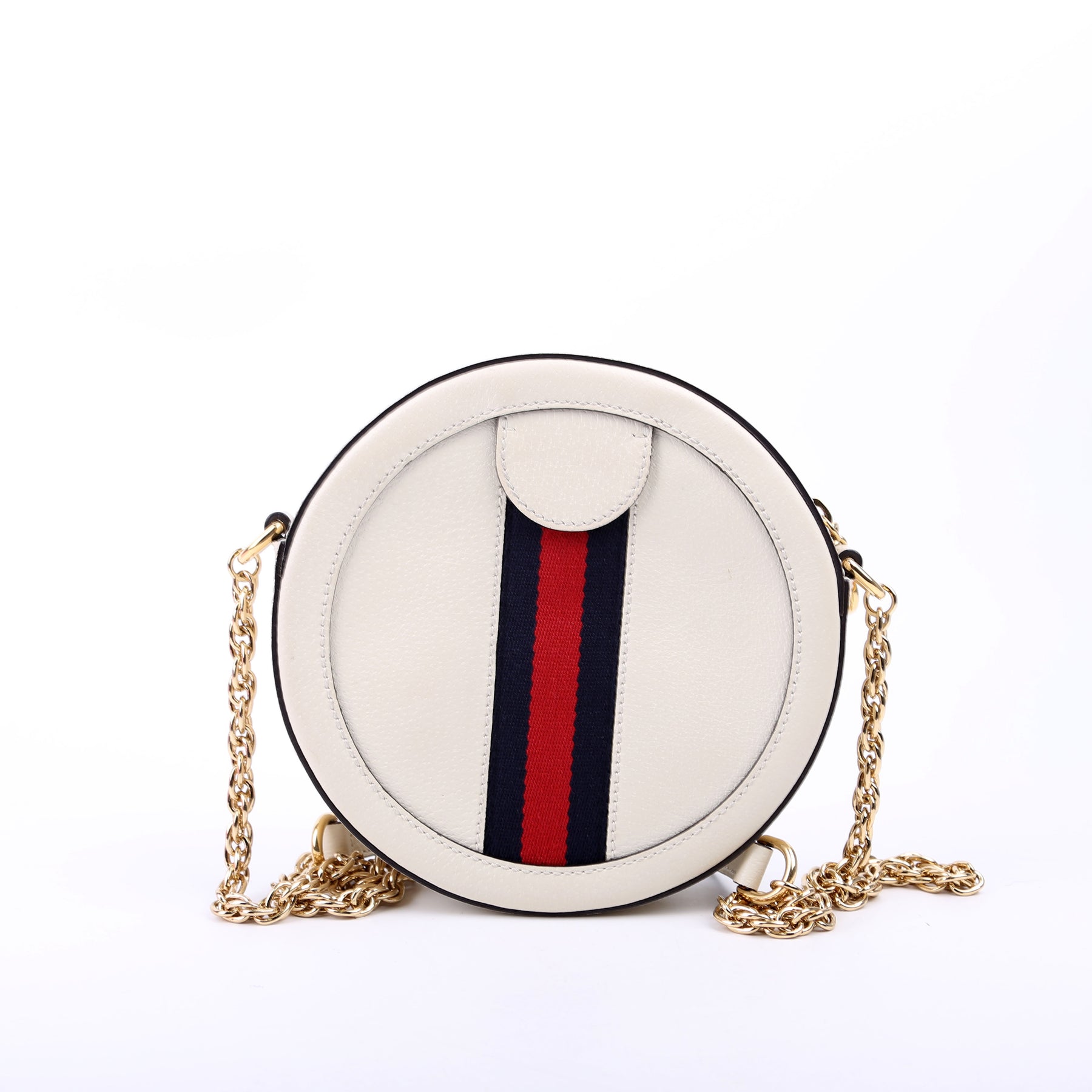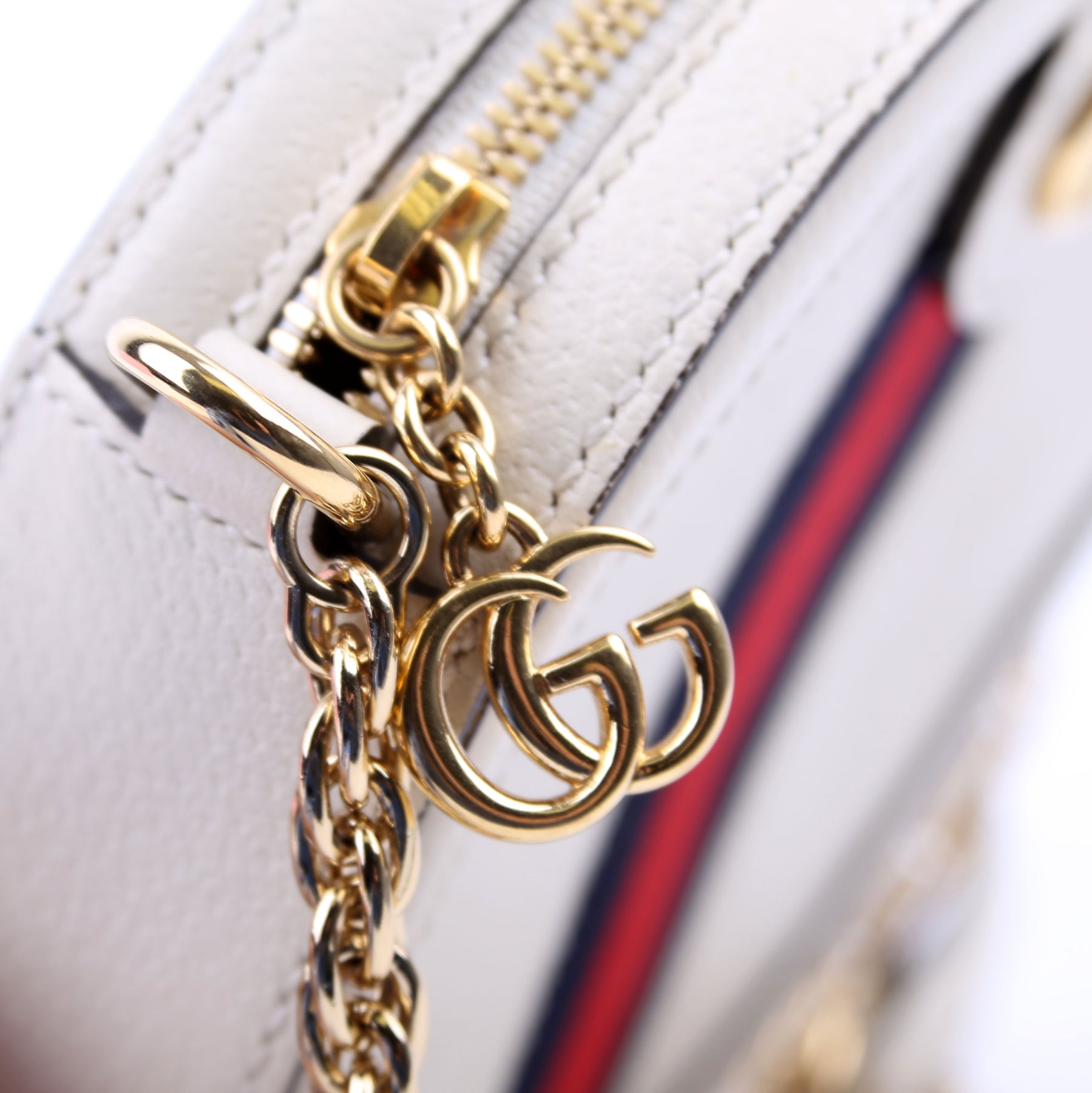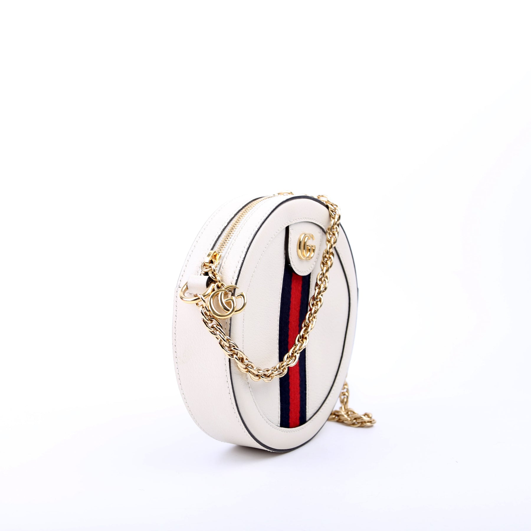 This pre-owned Gucci Ophidia Leather Round Small Crossbody is guaranteed 100% authentic.
