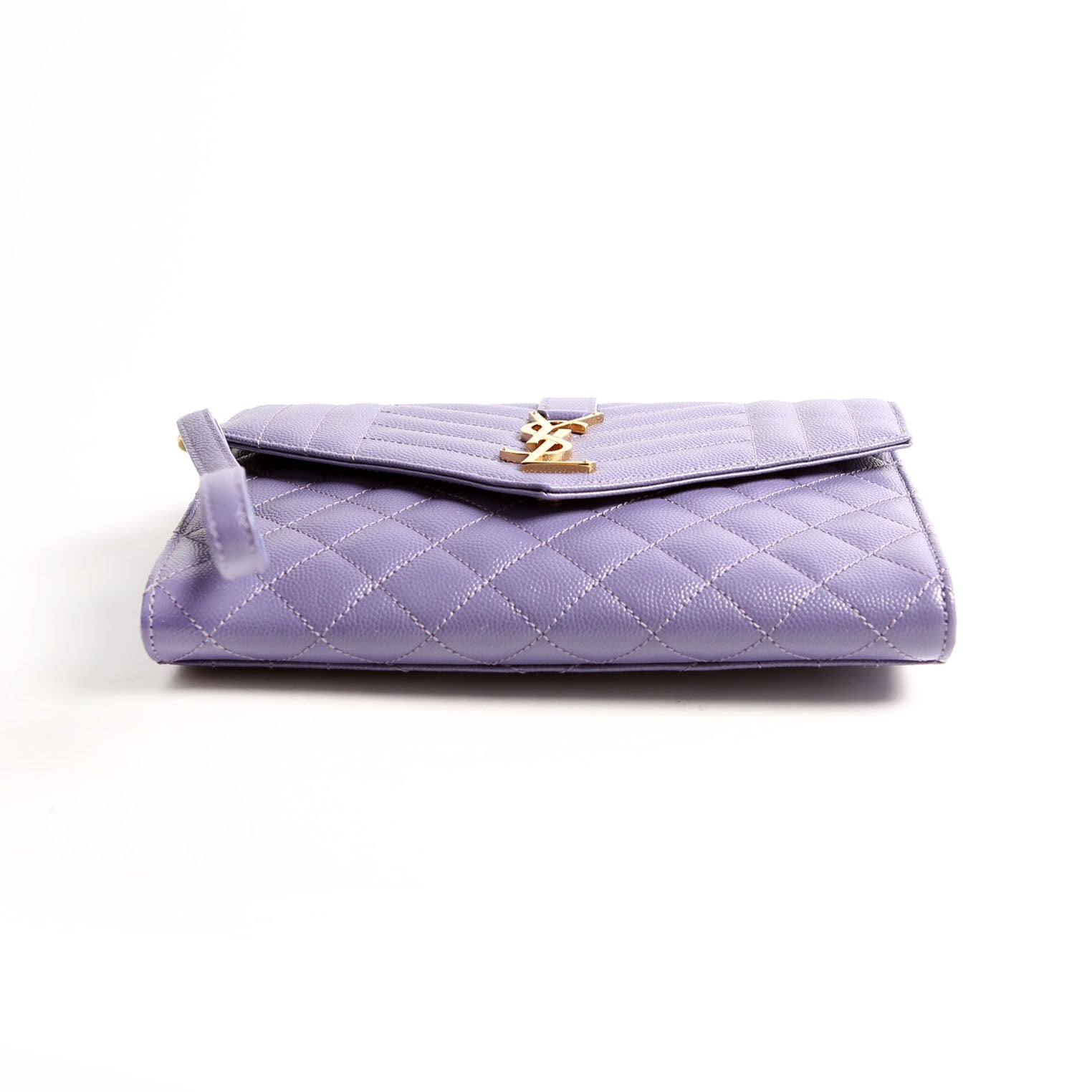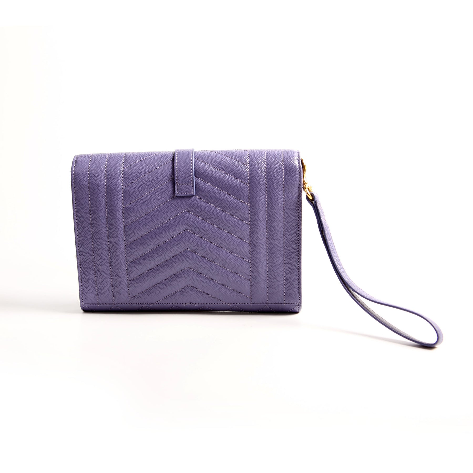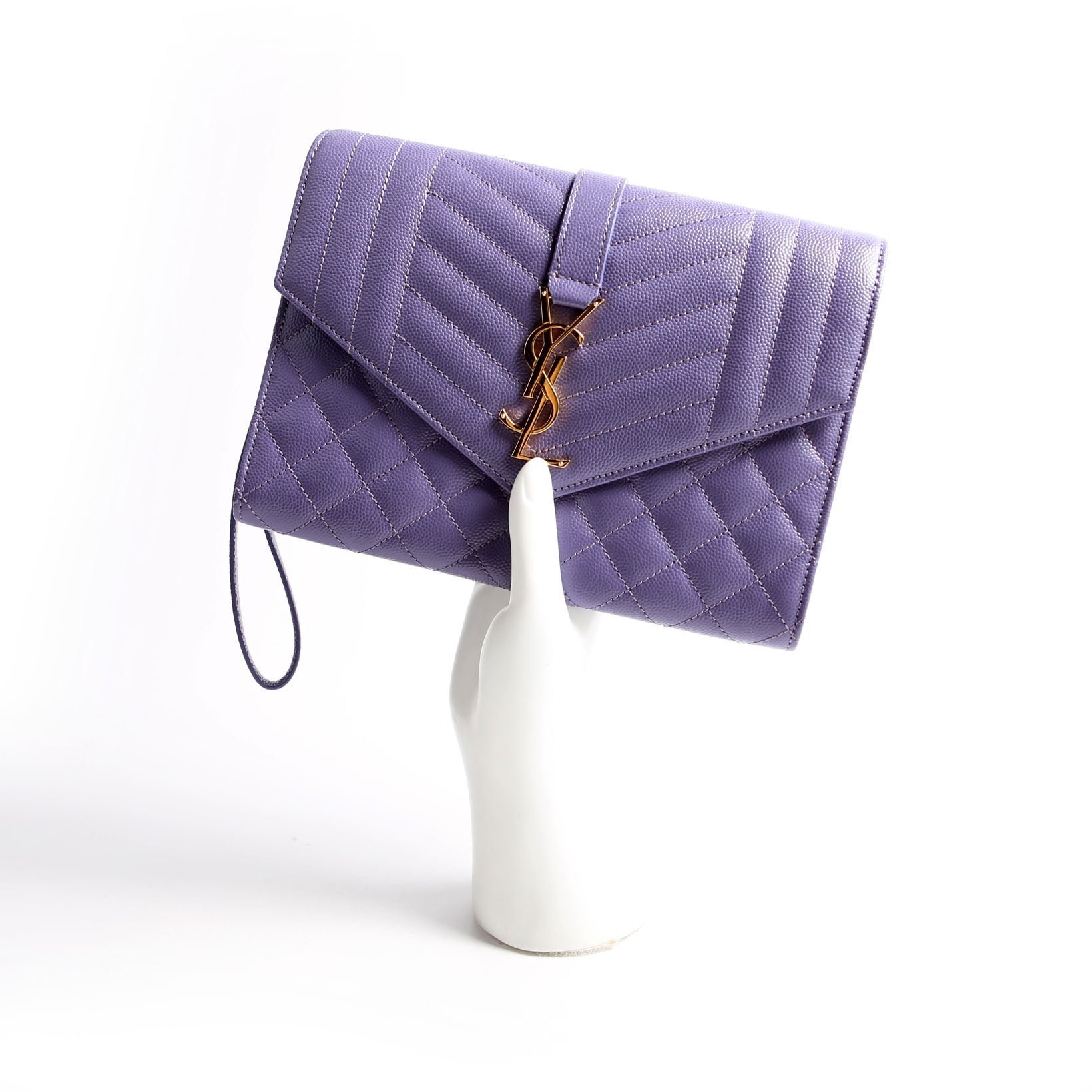 This pre-owned Saint Laurent Grain De Poudre Envelope Clutch is guaranteed 100% authentic. The exterior is in the classic Saint Laurent Grain De Poudre leather.