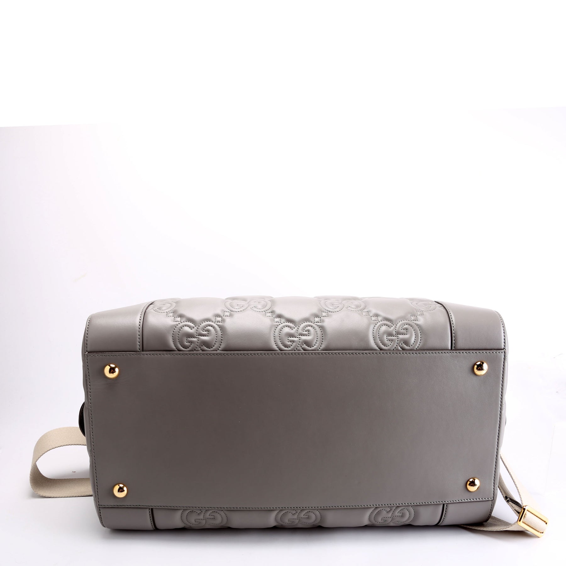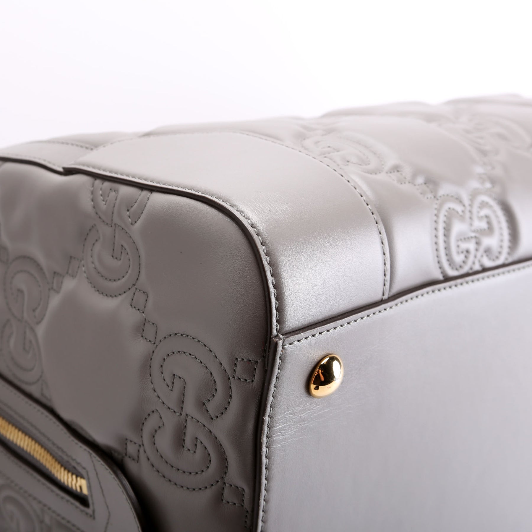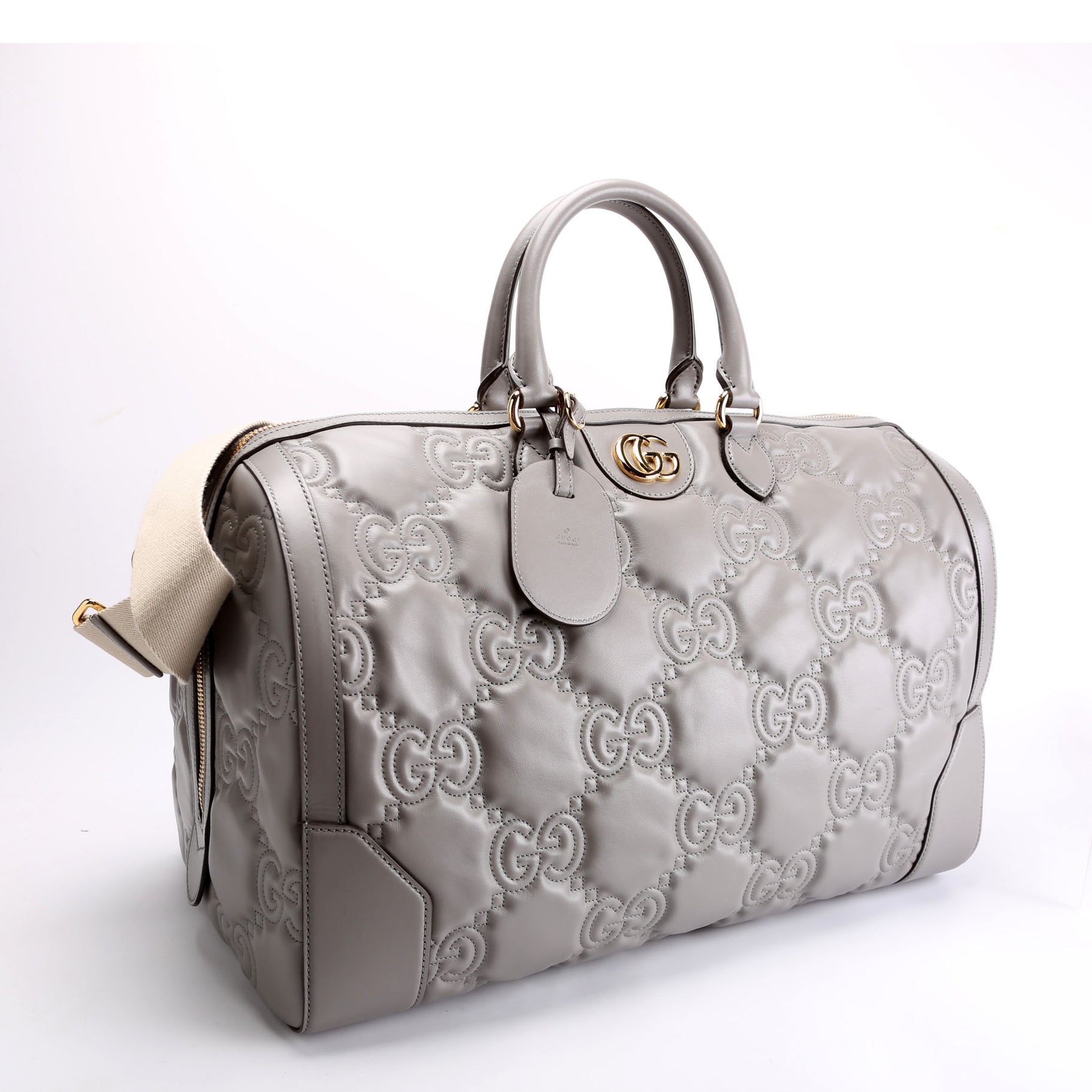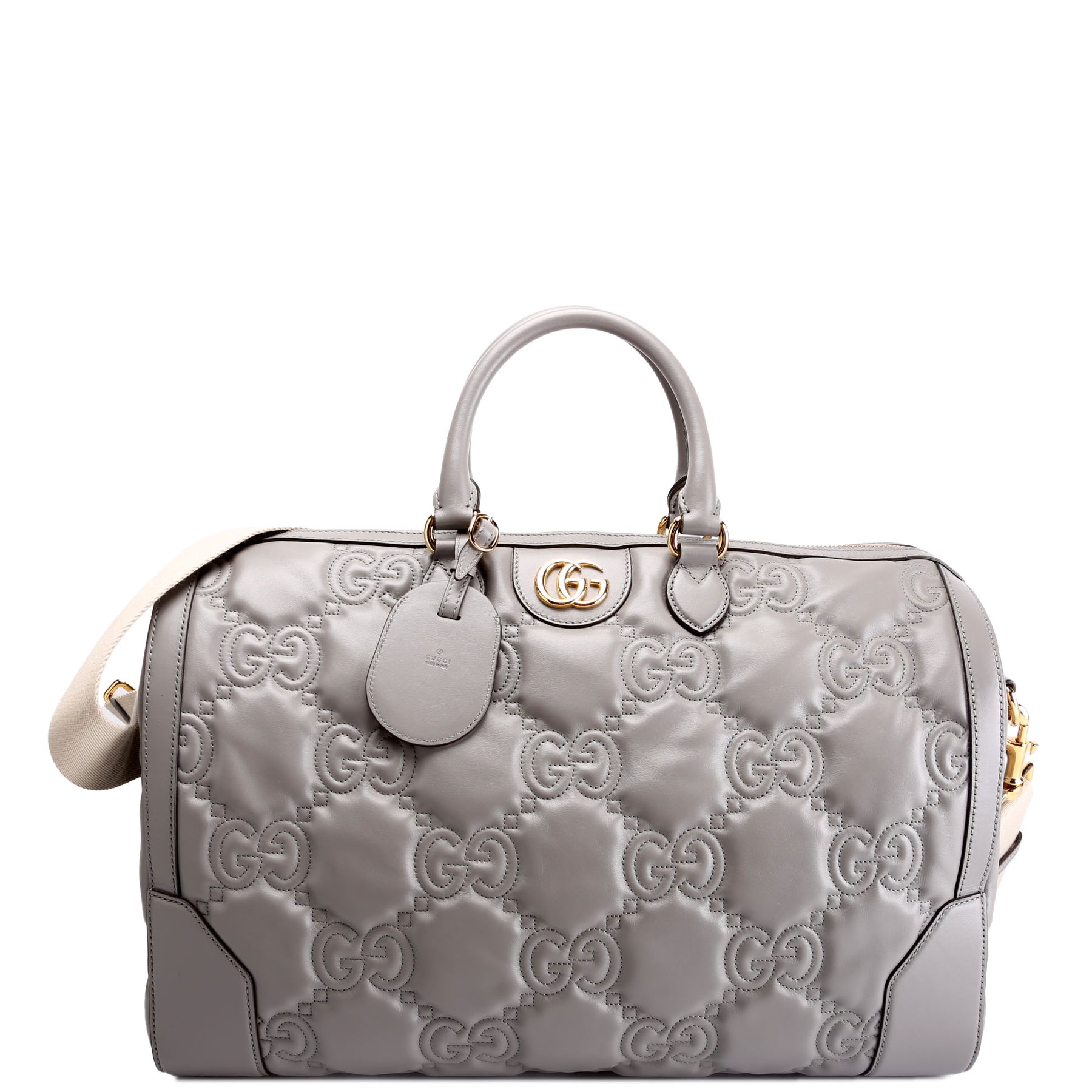 700762 GG Matelasse Calfskin Duffle Medium Gray