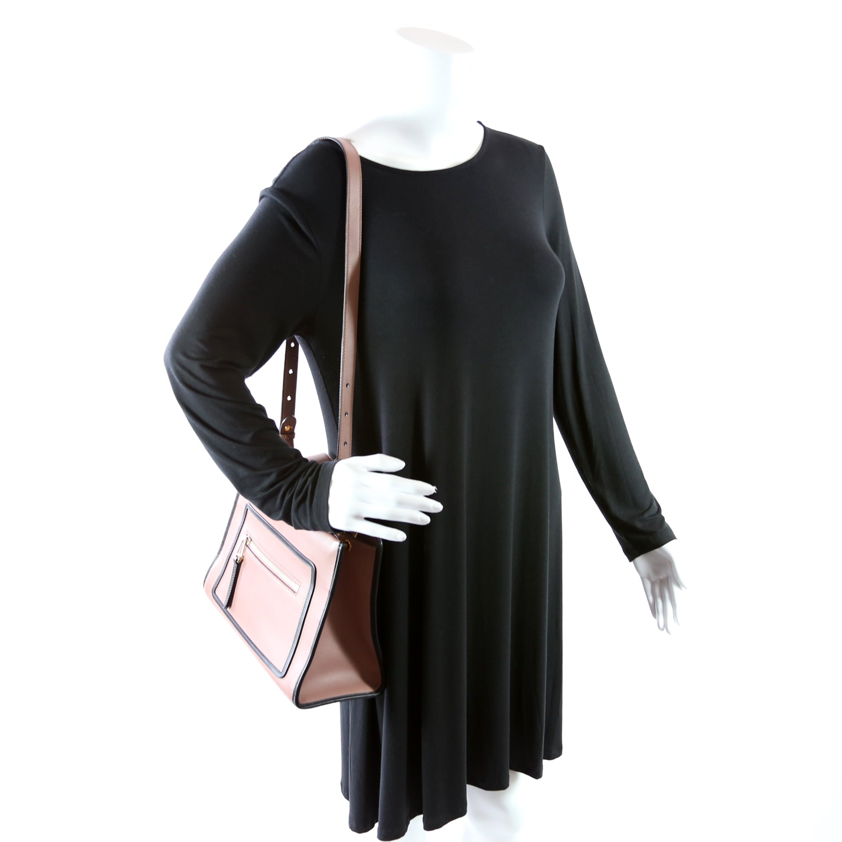 Exterior: The leather has minor discoloration and wear to the corners. The back of the bag has a minor pen mark.