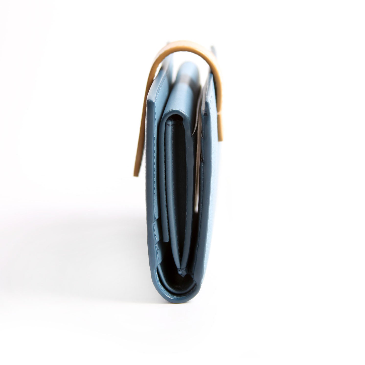 Accordeon Bi-Color Calfskin Card Holder Blue