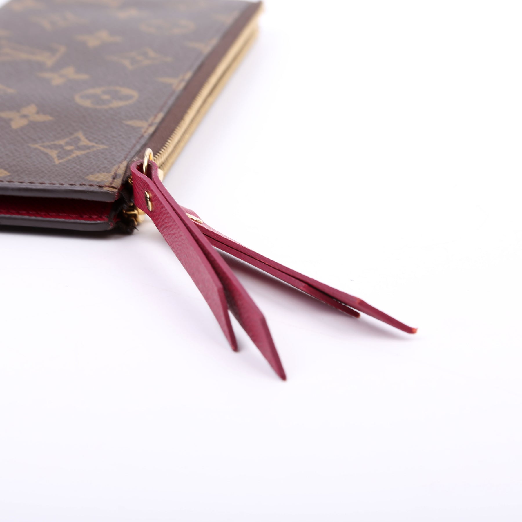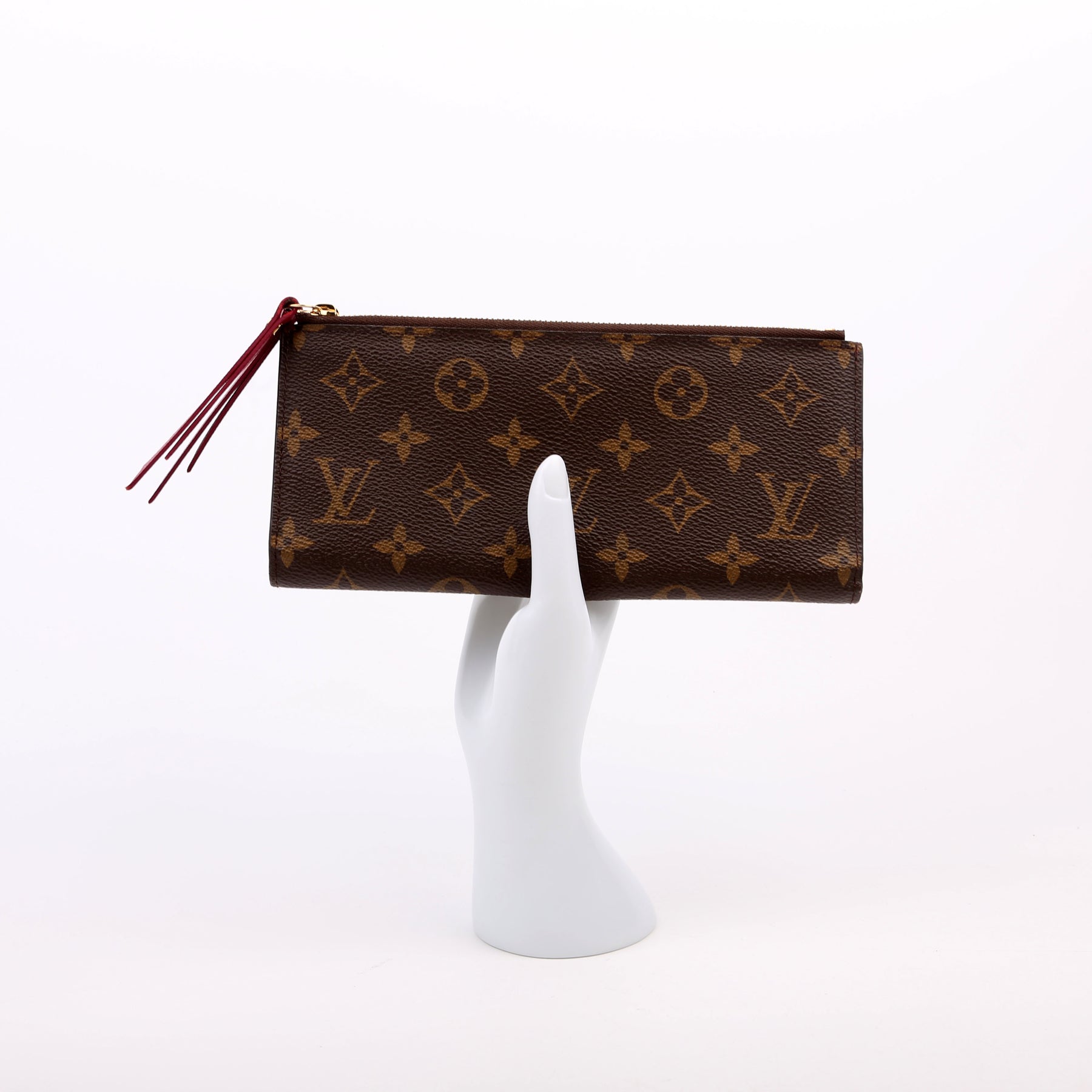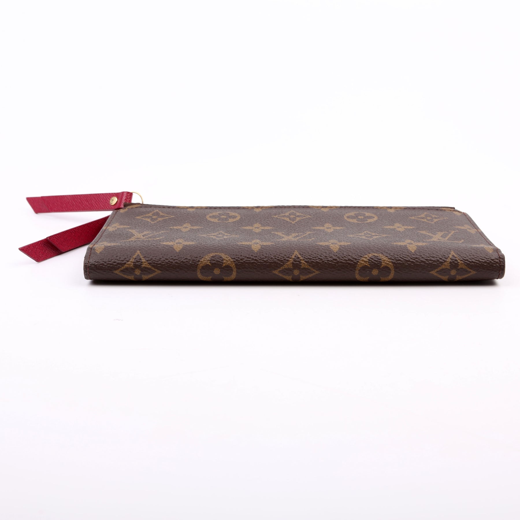 This pre-owned Louis Vuitton Adele Wallet is guaranteed 100% authentic. The exterior is in the classic Louis Vuitton Monogram coated canvas.