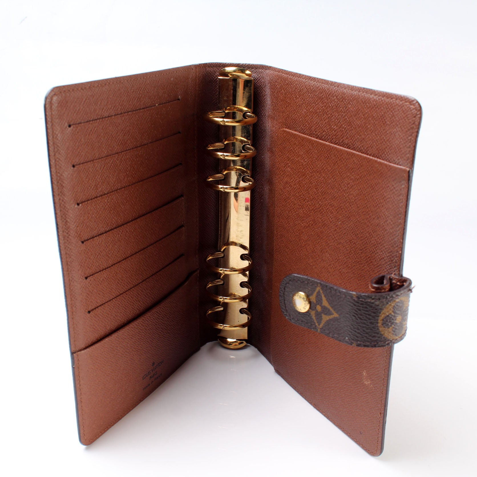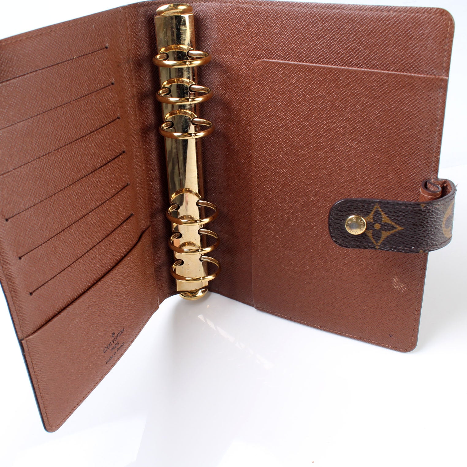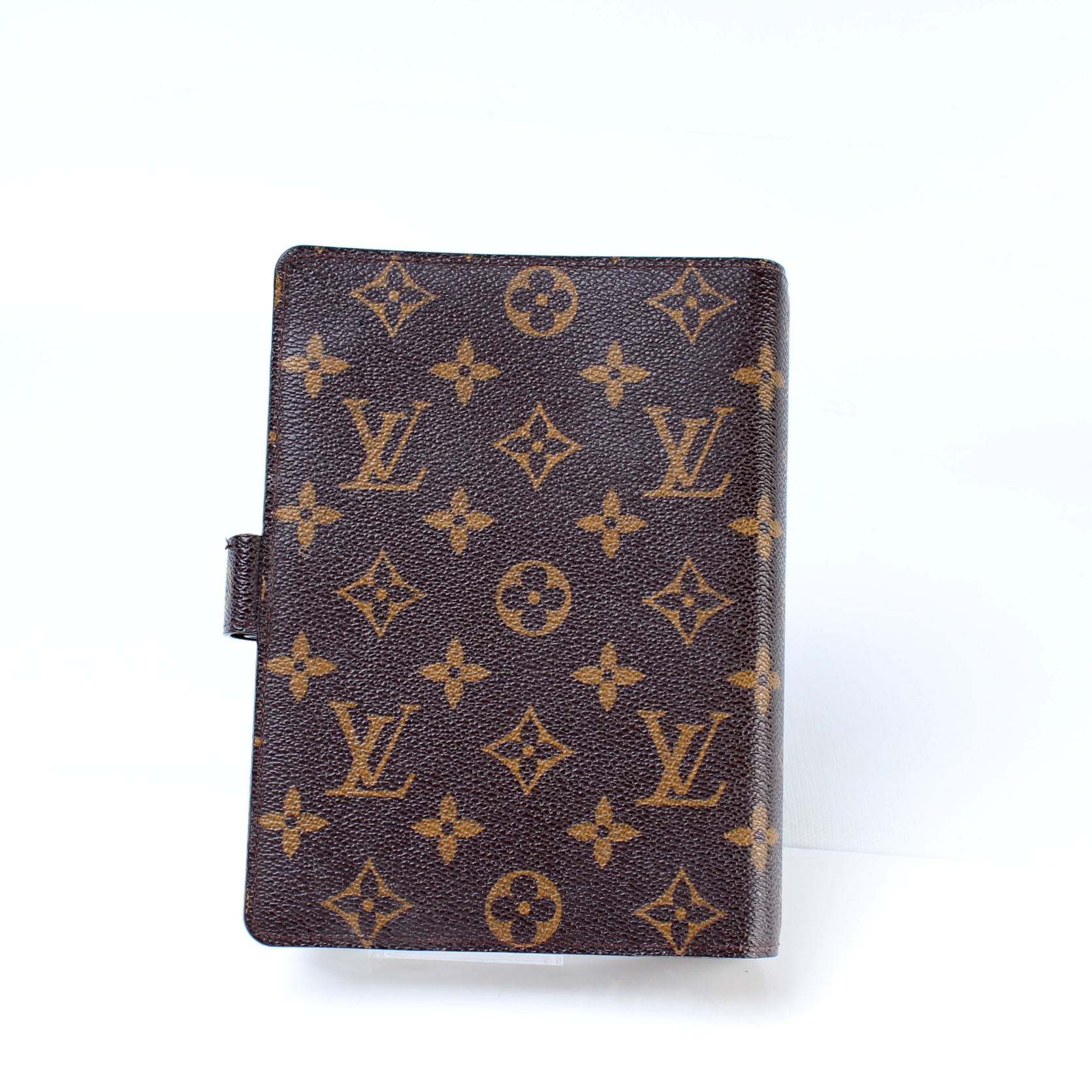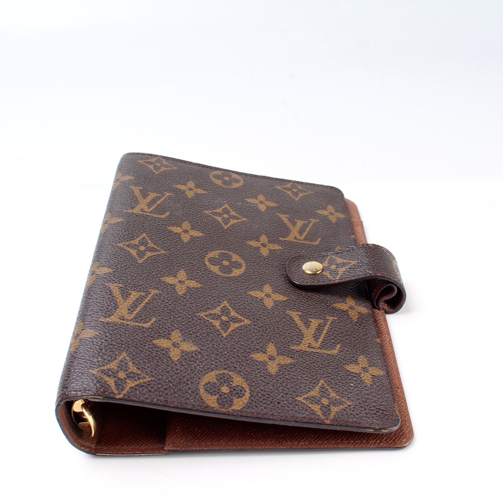 This pre-owned Louis Vuitton Agenda Medium Ring is guaranteed 100% authentic. The exterior is in the classic Louis Vuitton Monogram coated canvas.