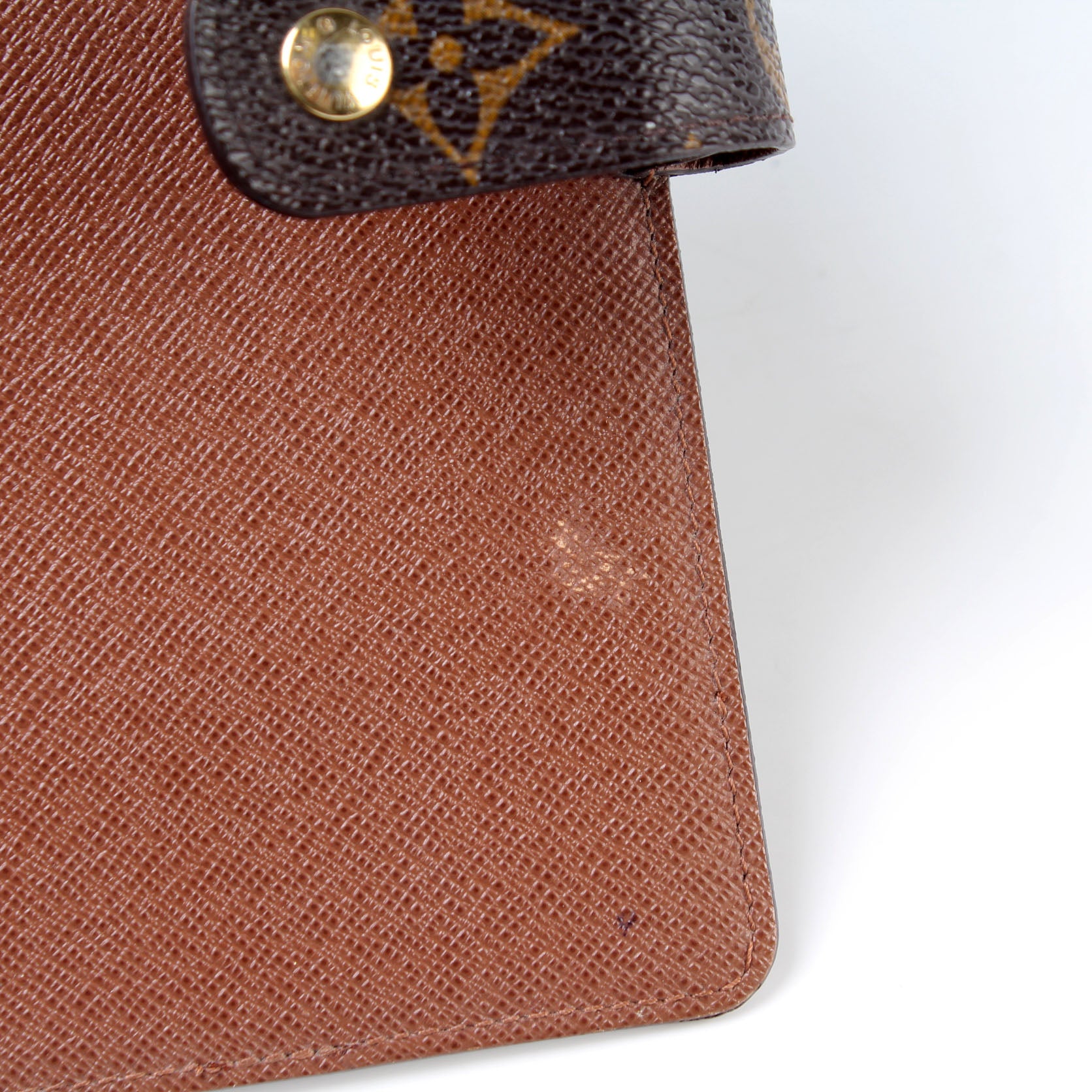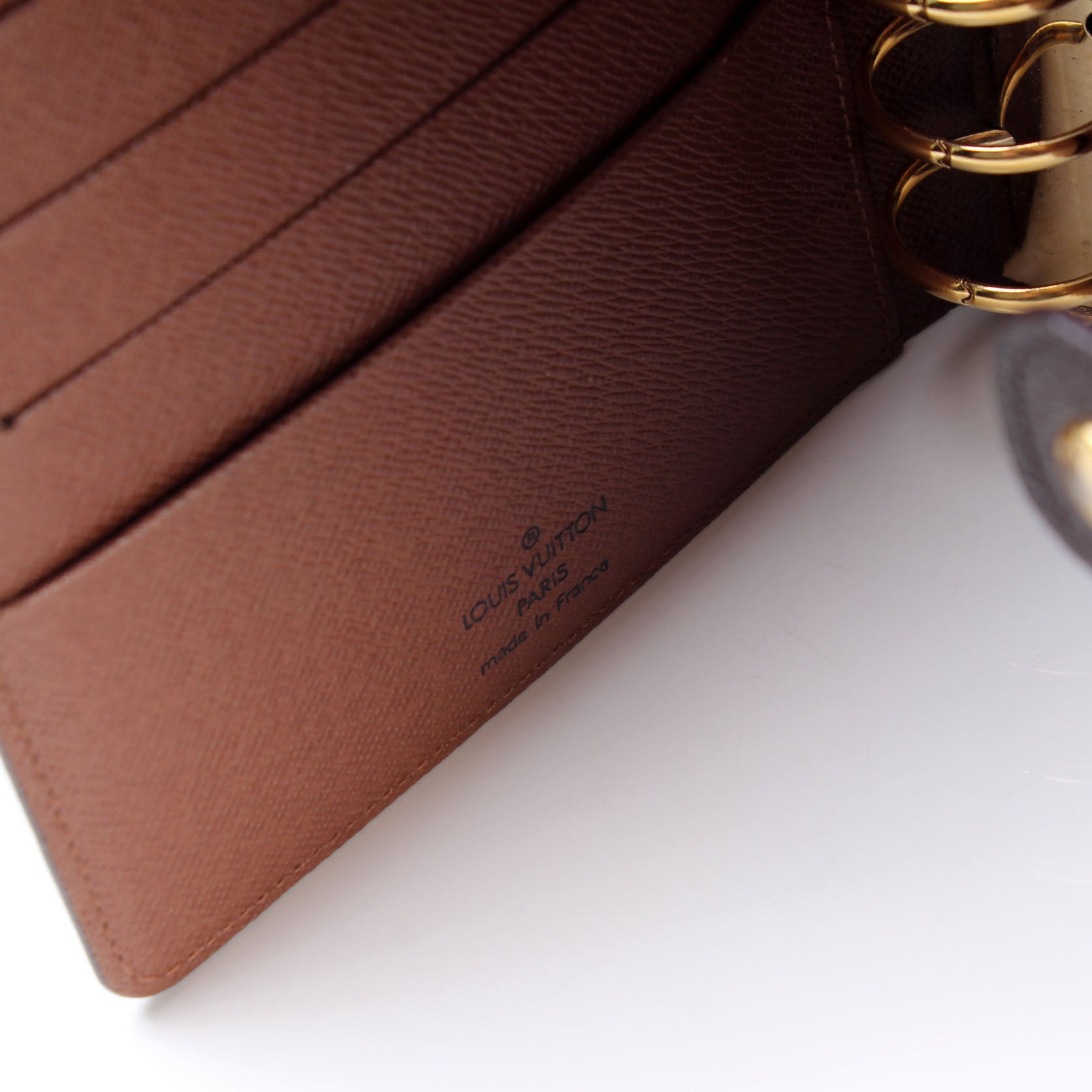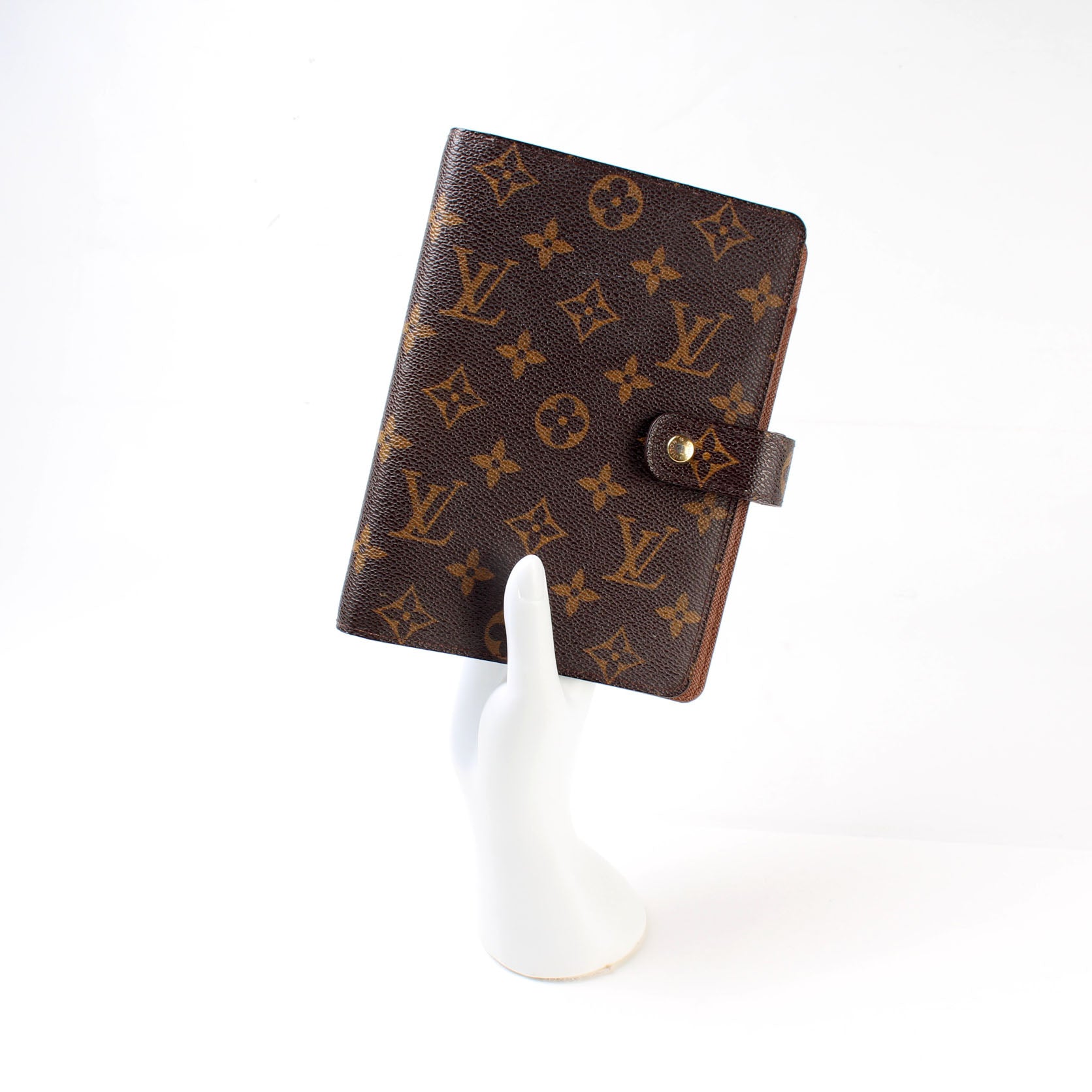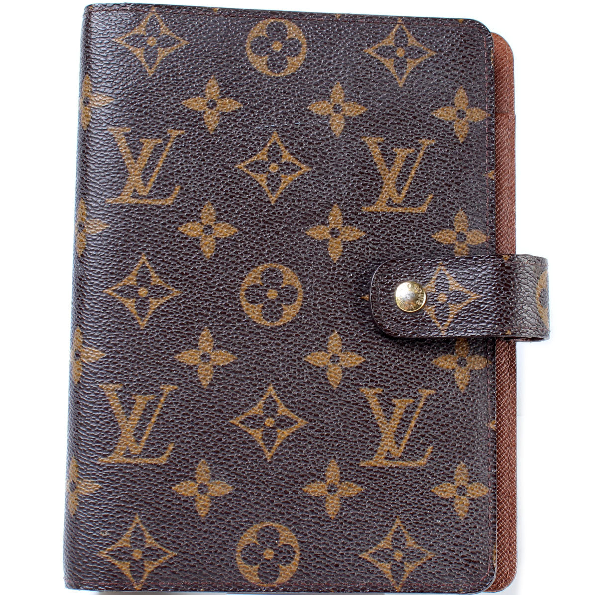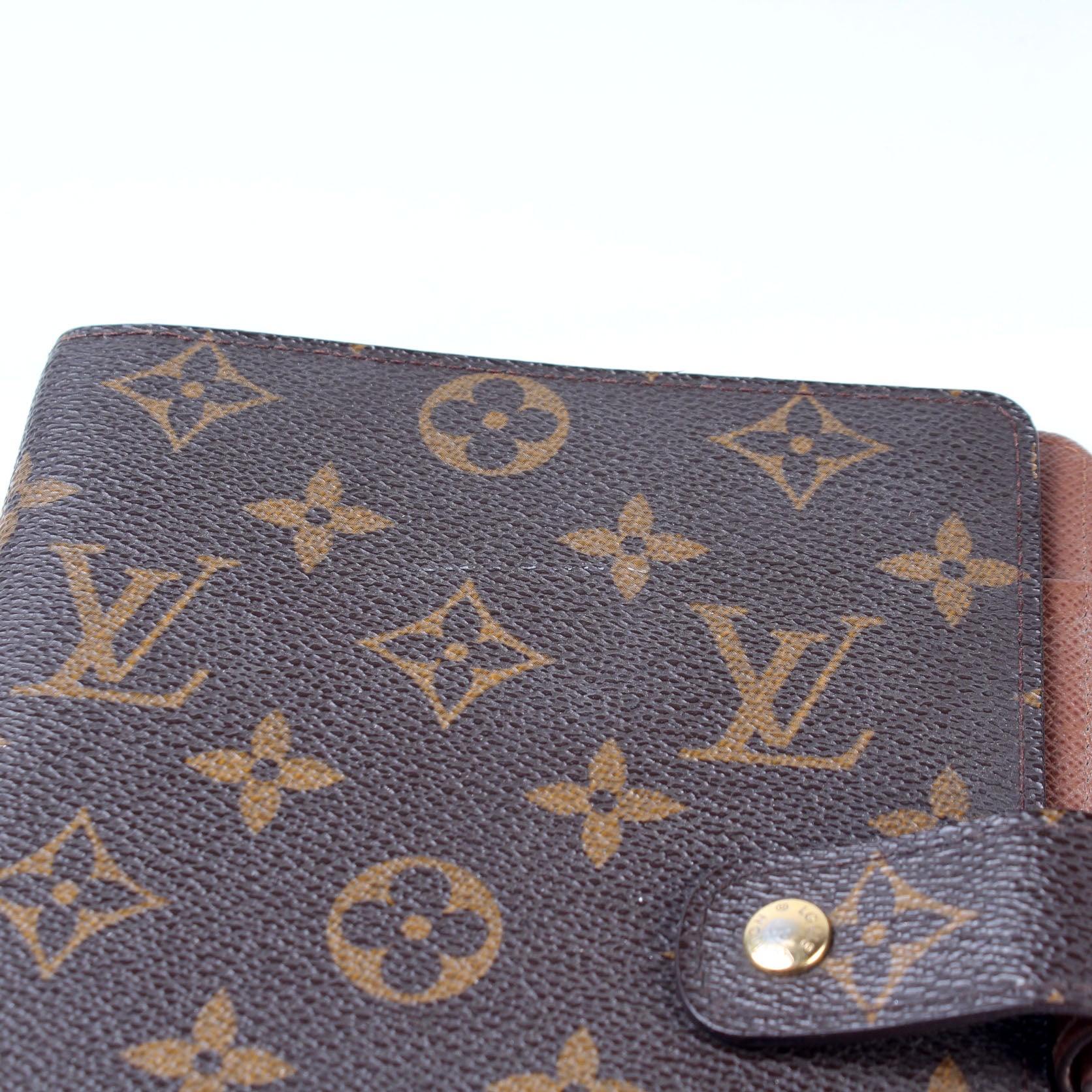 This pre-owned Louis Vuitton Agenda Medium Ring is guaranteed 100% authentic. The exterior is in the classic Louis Vuitton Monogram coated canvas.