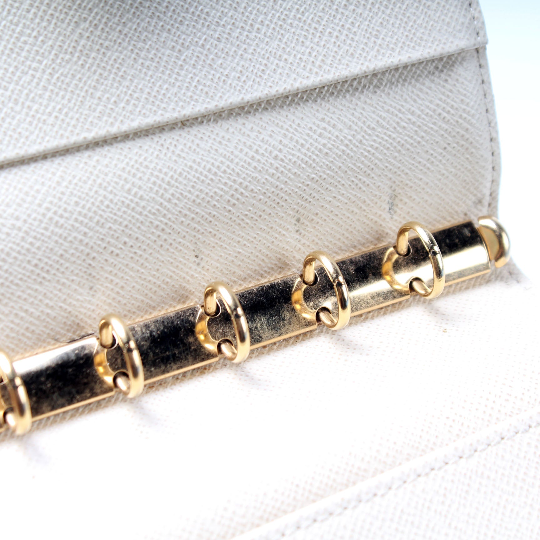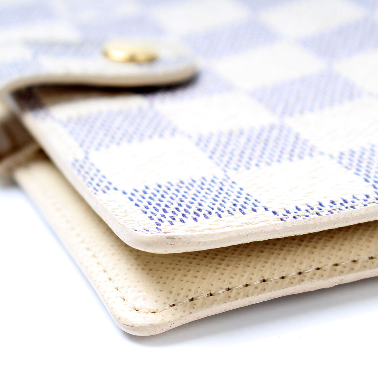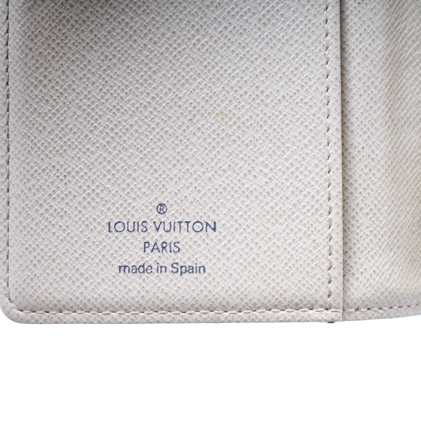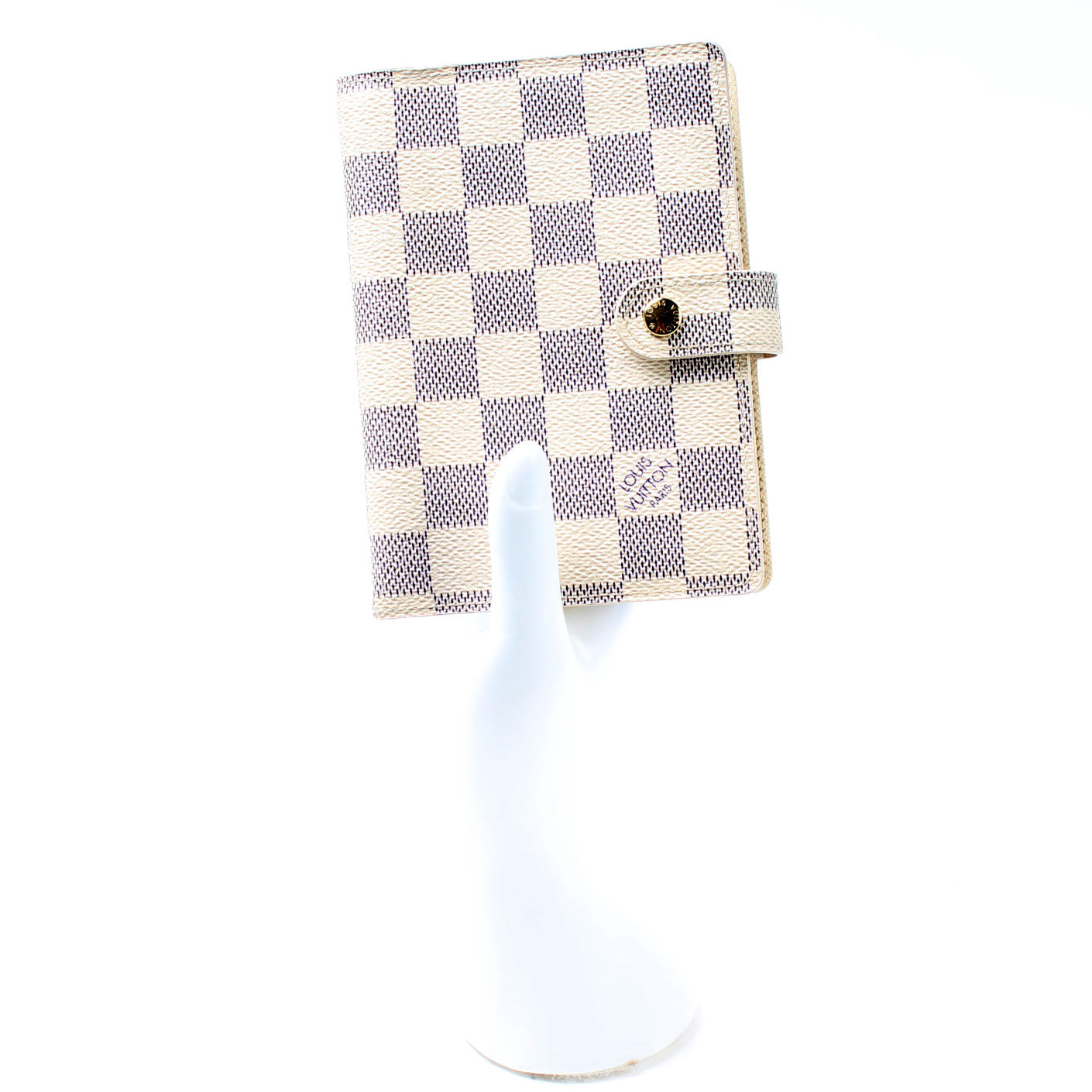 This pre-owned Louis Vuitton Agenda Small Ring is guaranteed 100% authentic. The exterior is in the classic Louis Vuitton Damier Azur coated canvas.