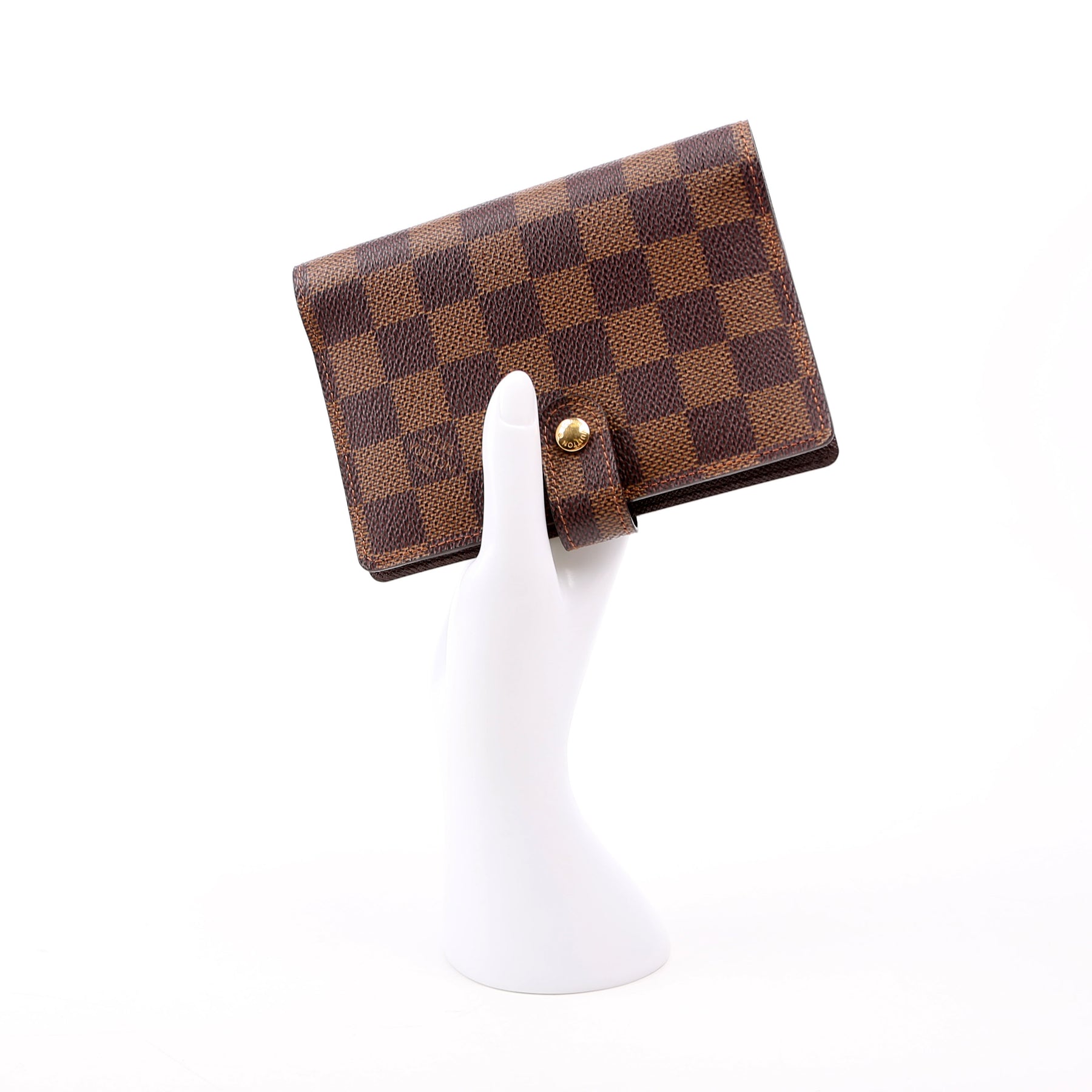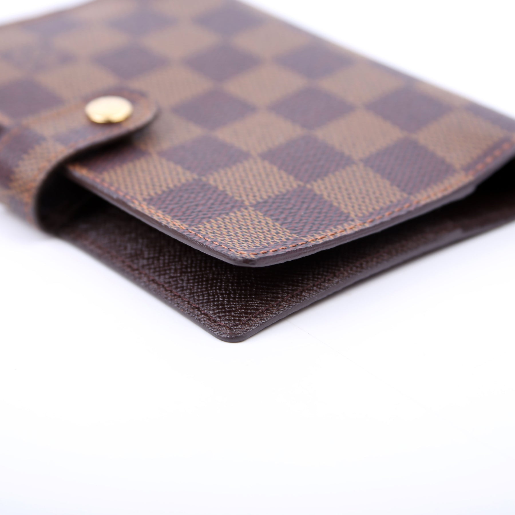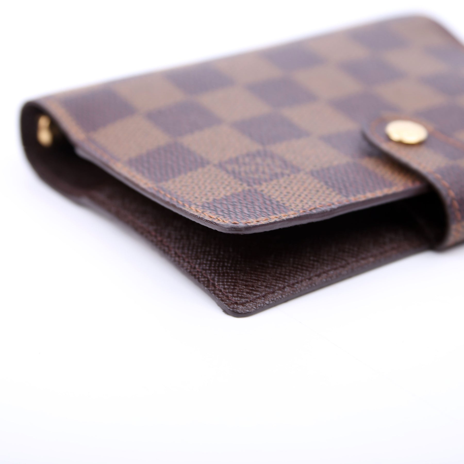 This pre-owned Louis Vuitton Agenda Small Ring is guaranteed 100% authentic. The exterior is in the classic Damier Ebene coated canvas.