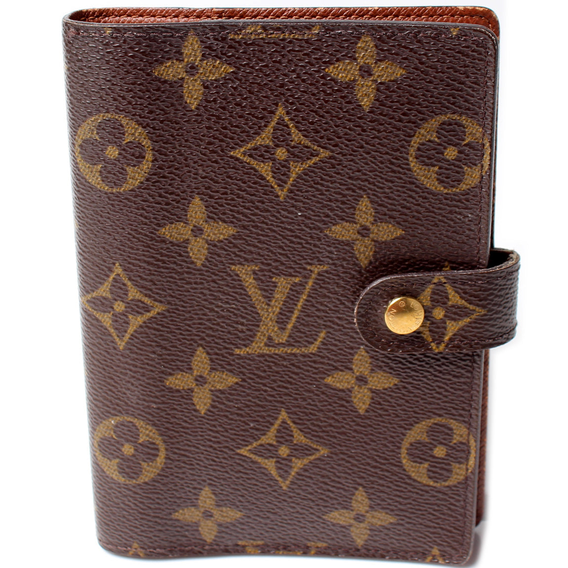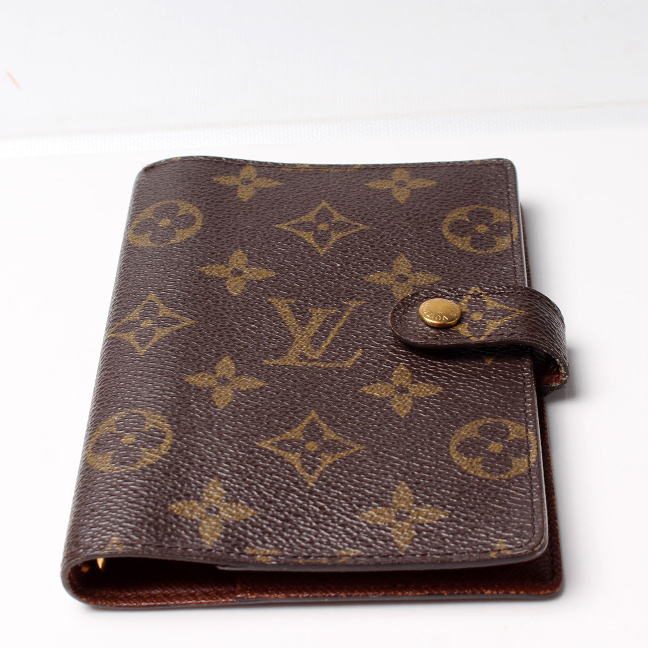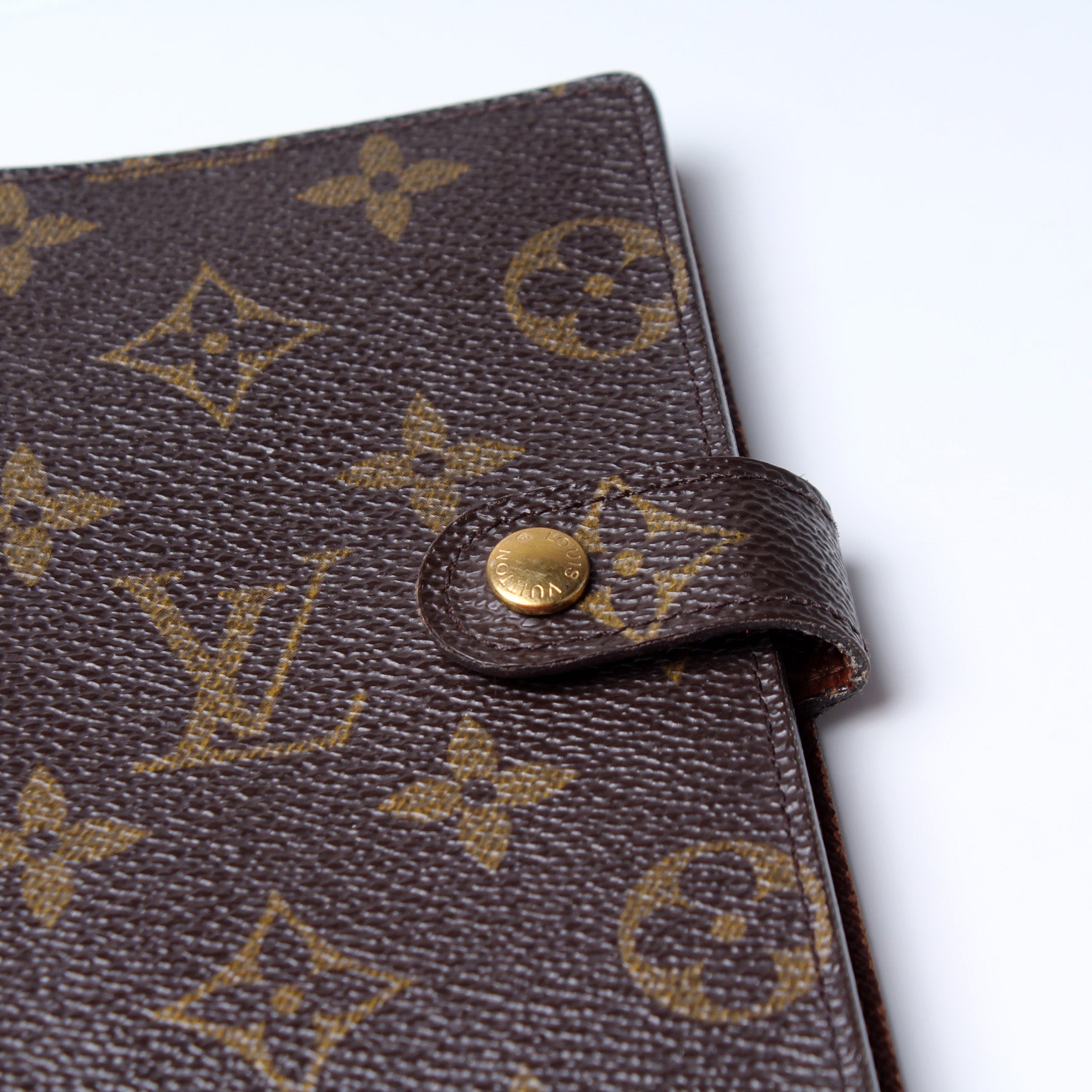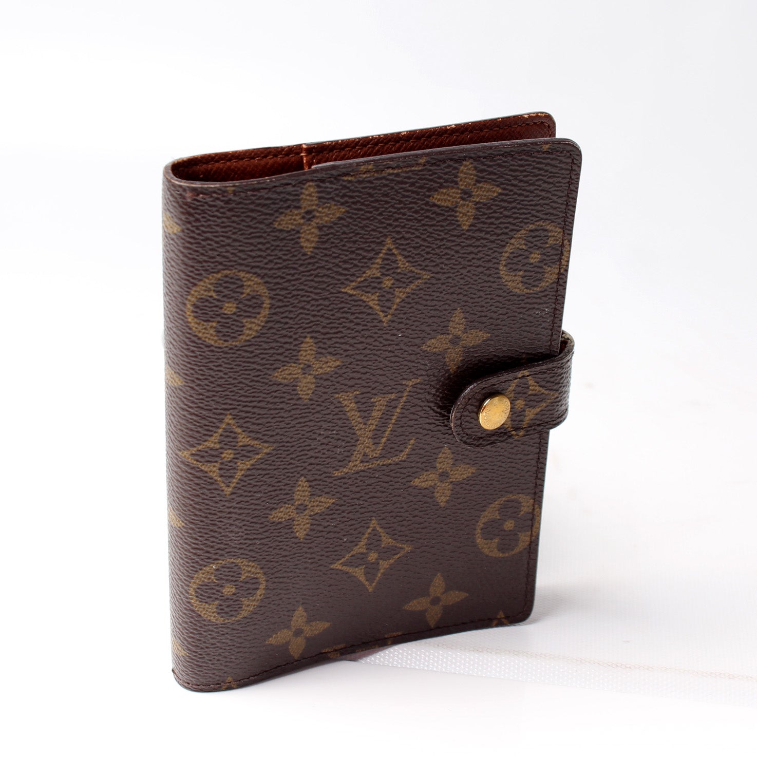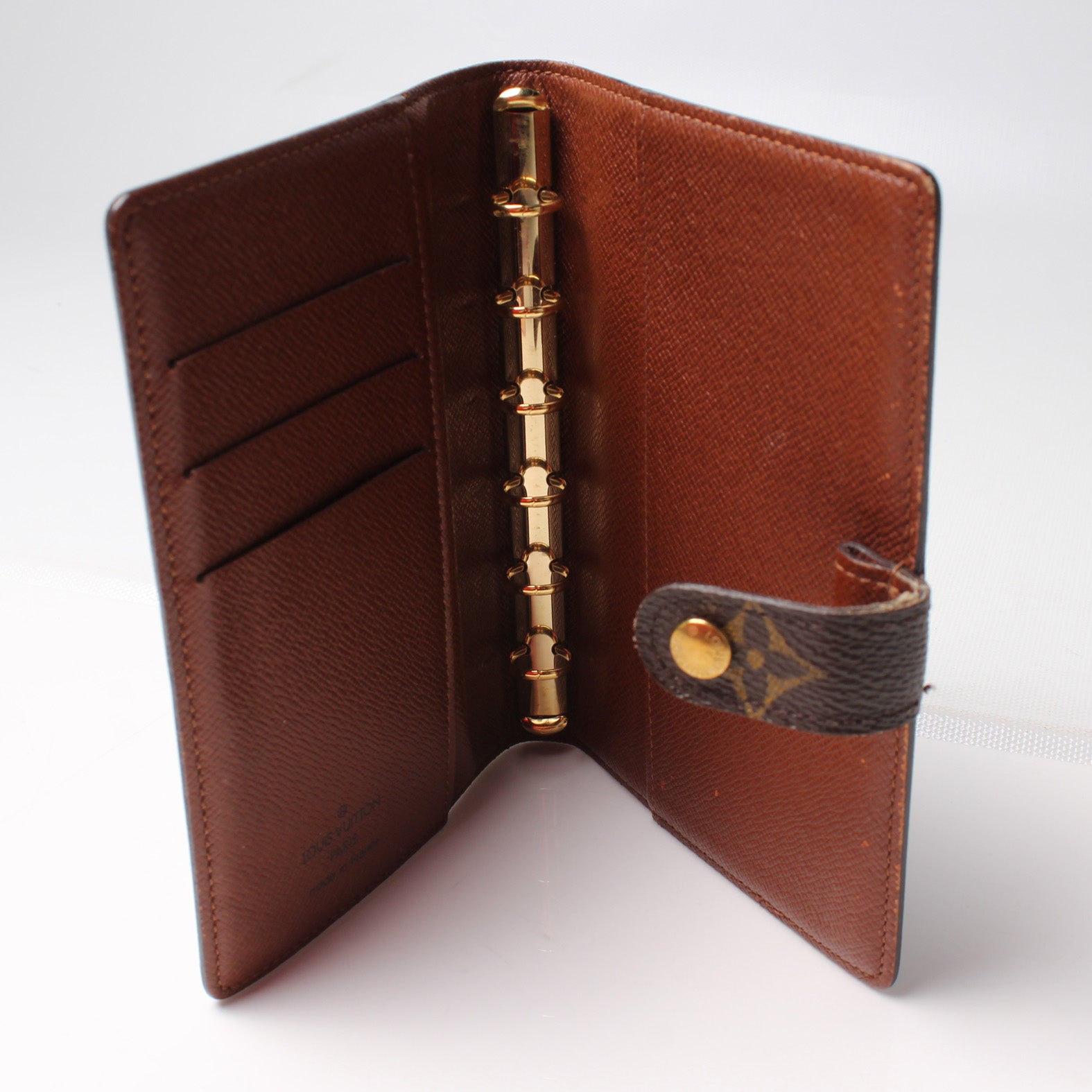 This pre-owned Louis Vuitton Agenda Small Ring is guaranteed 100% authentic. The exterior is in the classic Louis Vuitton Monogram coated canvas.