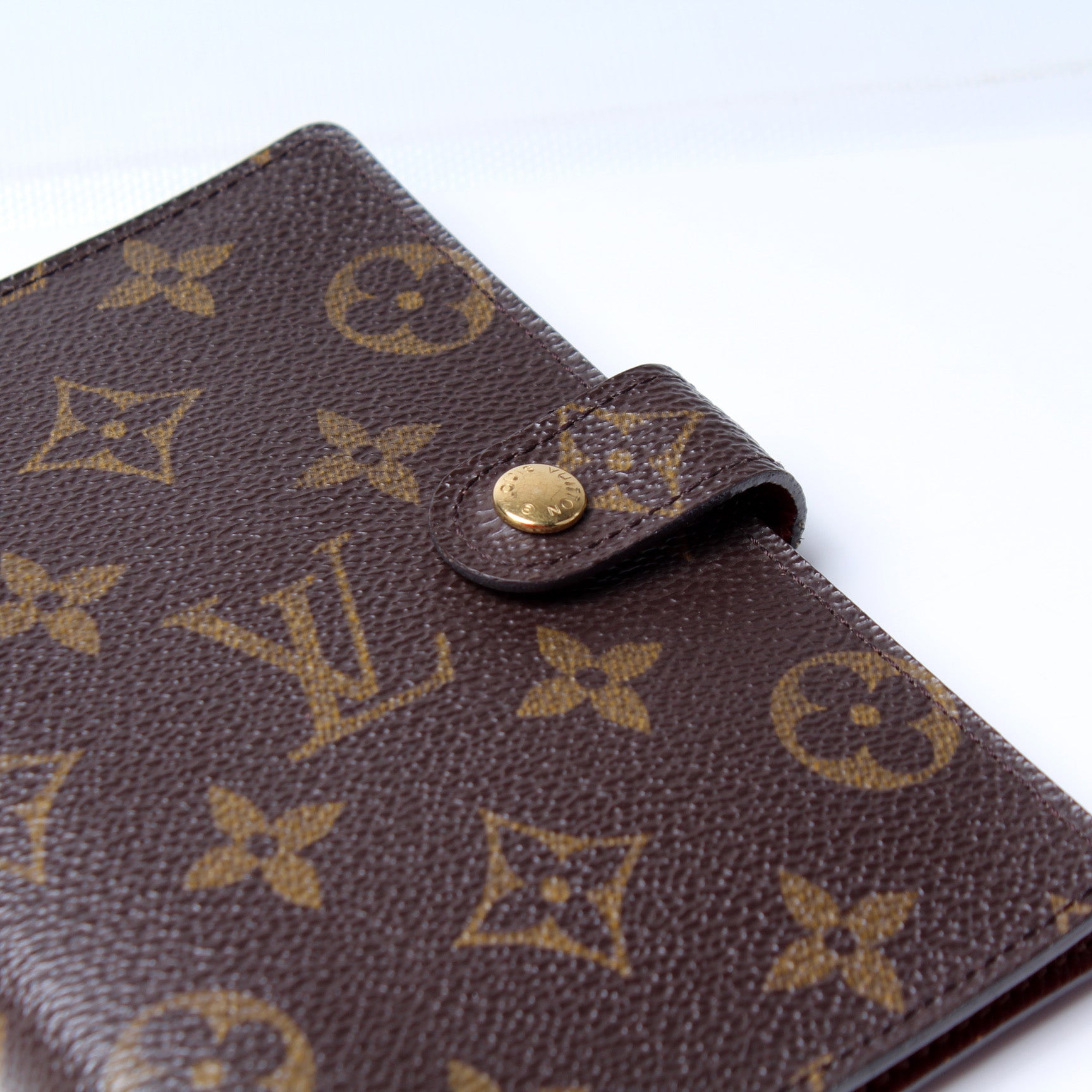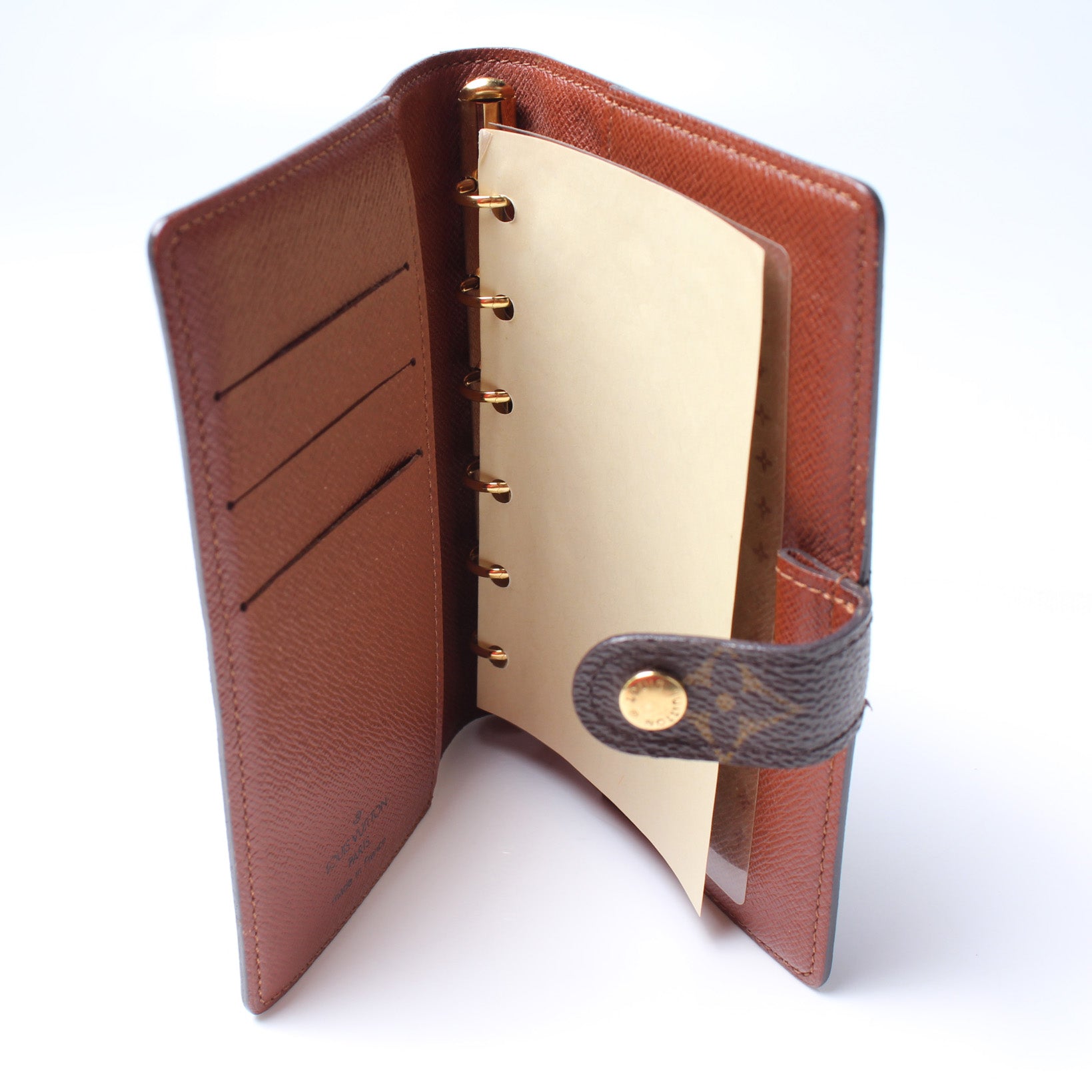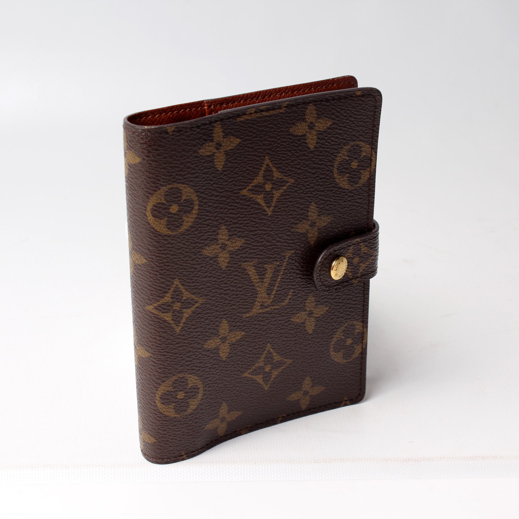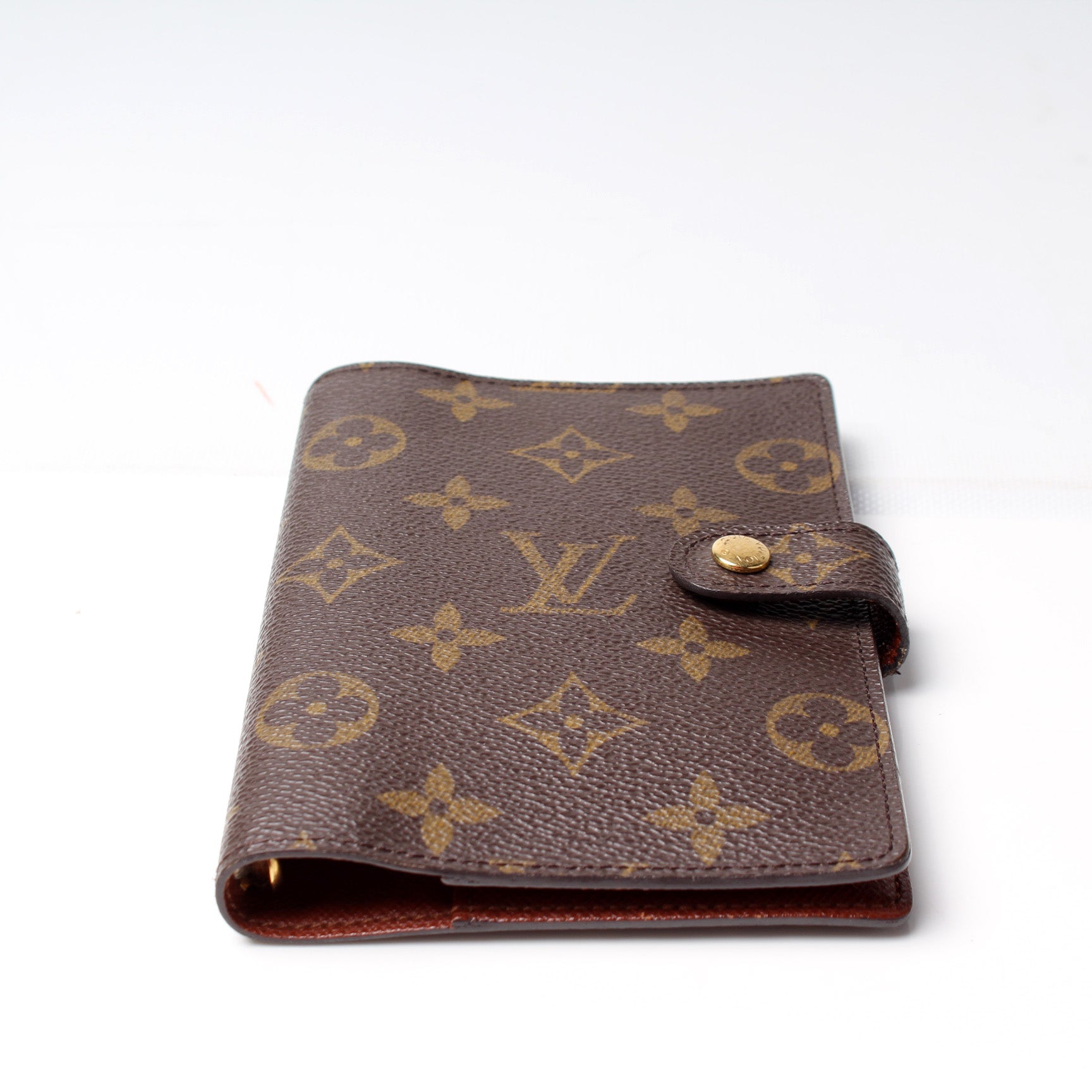 This pre-owned Louis Vuitton Agenda Small Ring is guaranteed 100% authentic. The exterior is in the classic Louis Vuitton Monogram coated canvas.