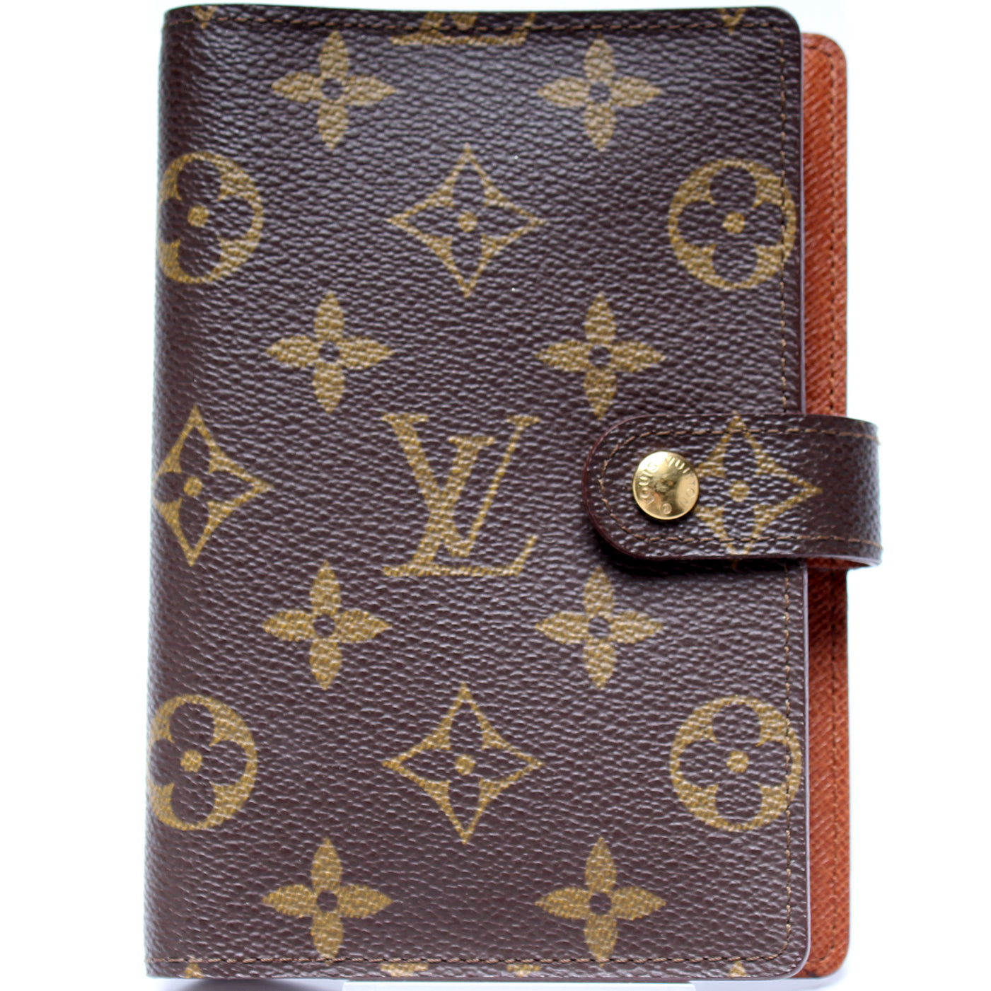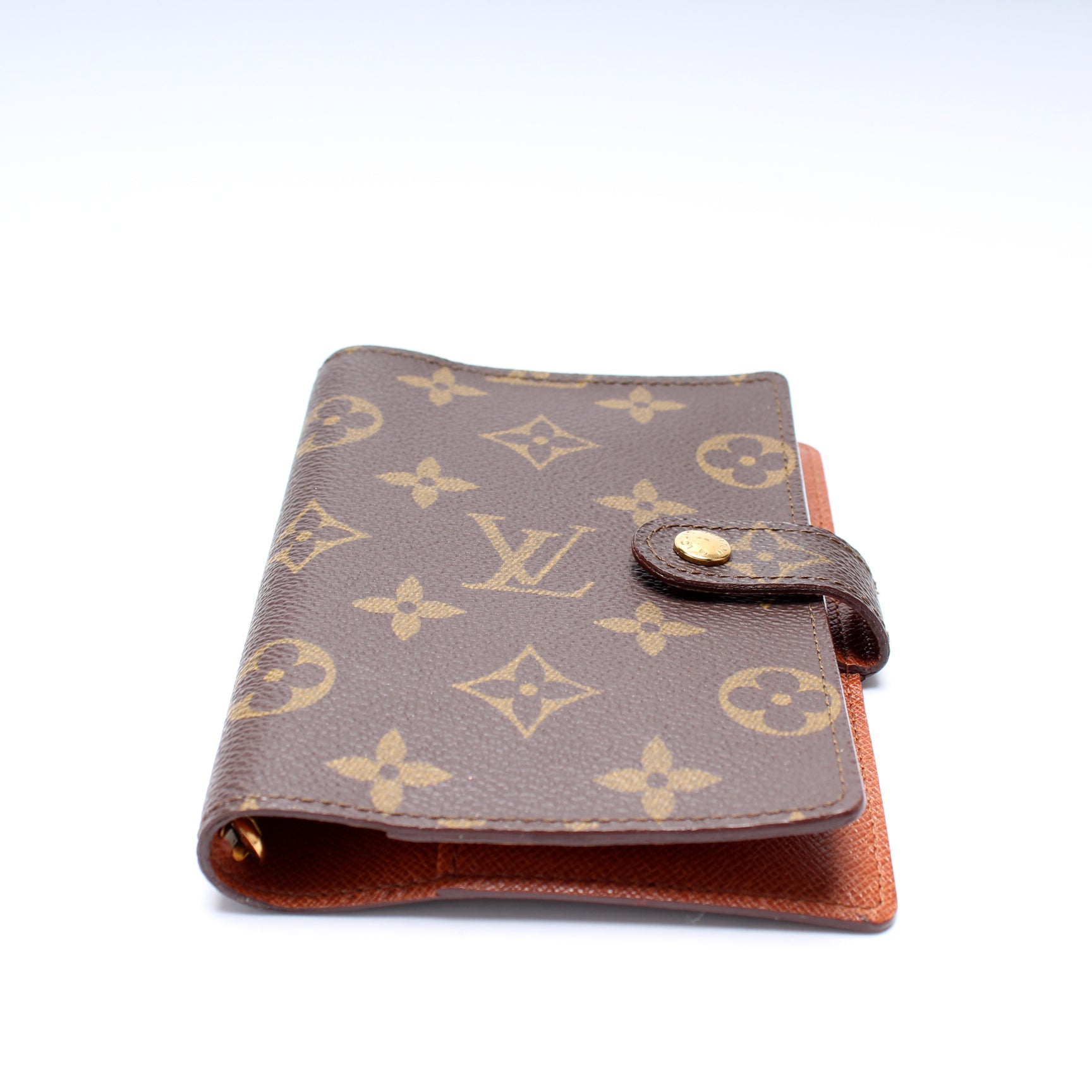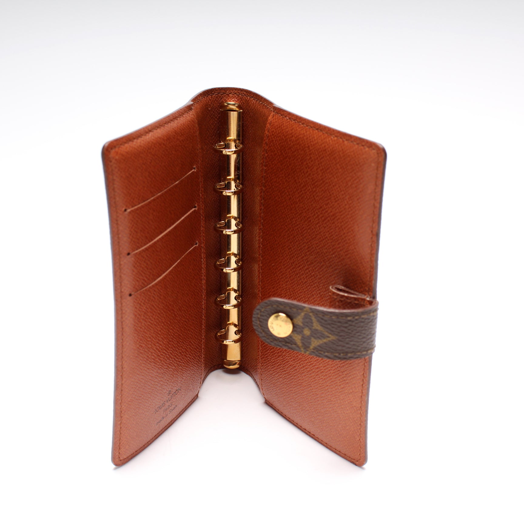 This pre-owned Louis Vuitton Agenda Small Ring is guaranteed 100% authentic. The exterior is in the classic Monogram coated canvas.