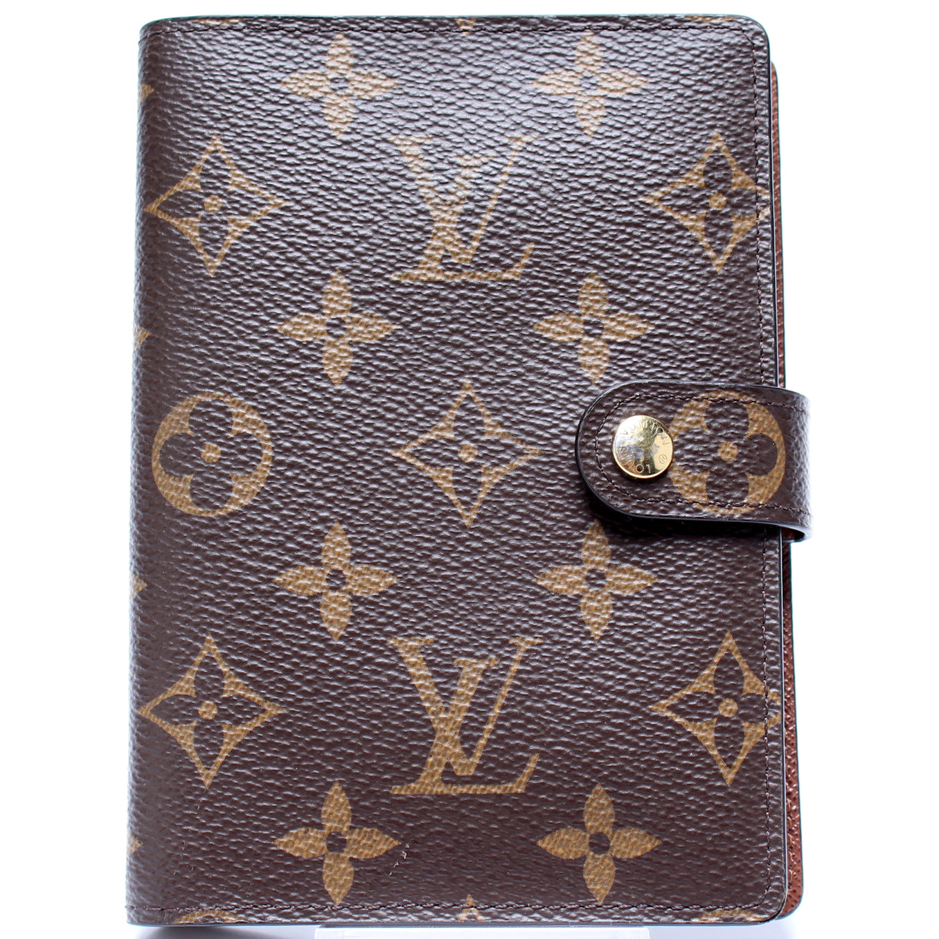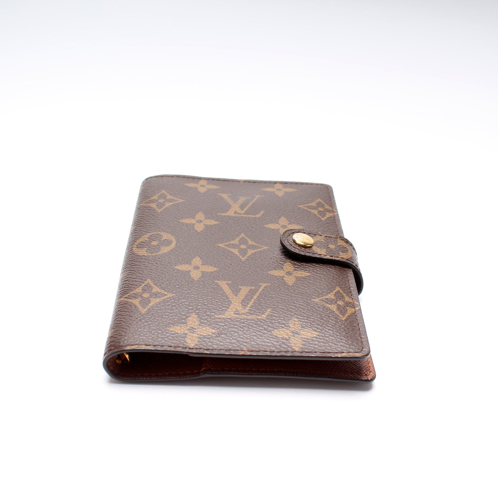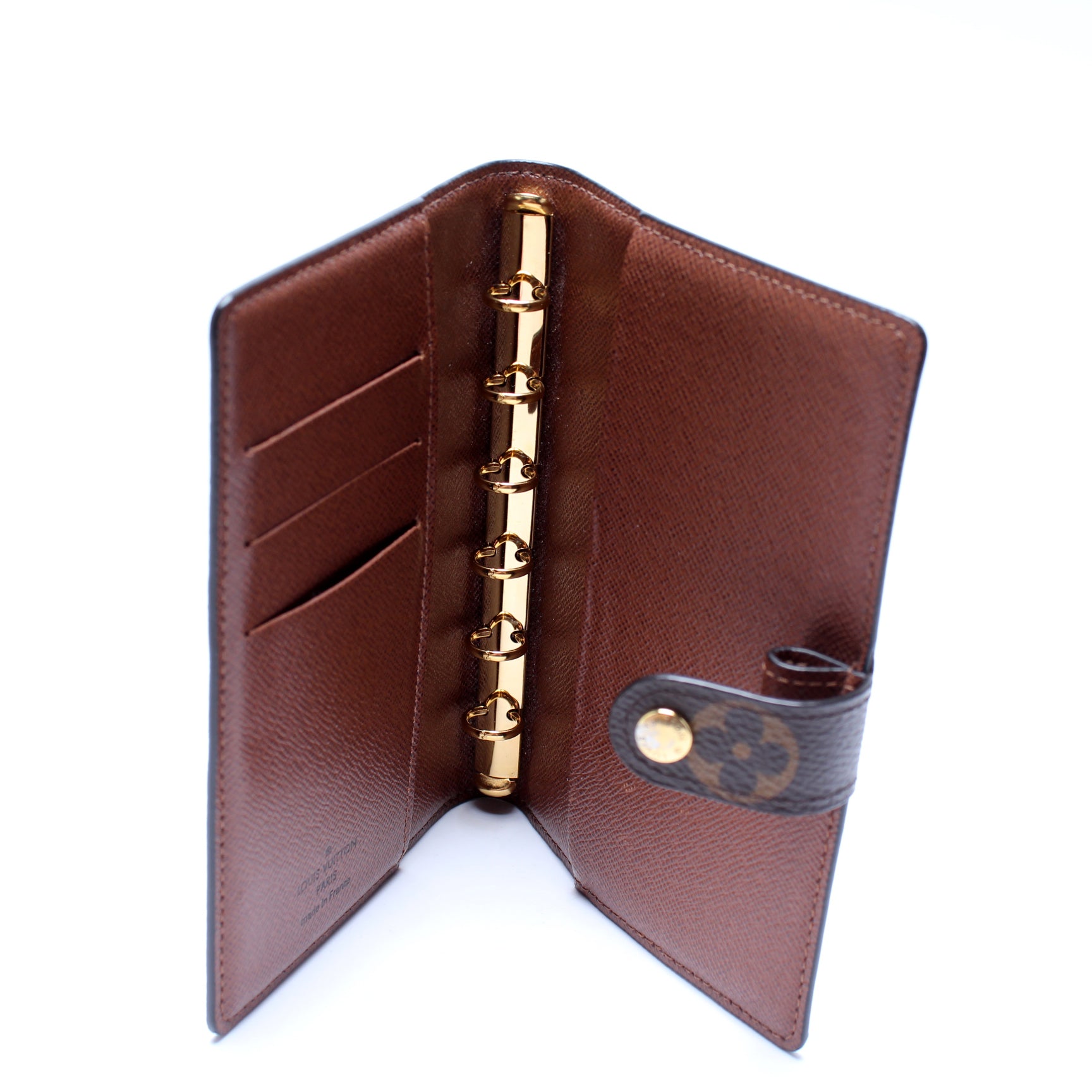 This pre-owned Louis Vuitton Agenda Small Ring is guaranteed 100% authentic. The exterior is in the classic Monogram coated canvas.