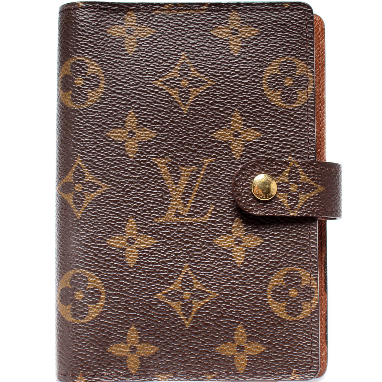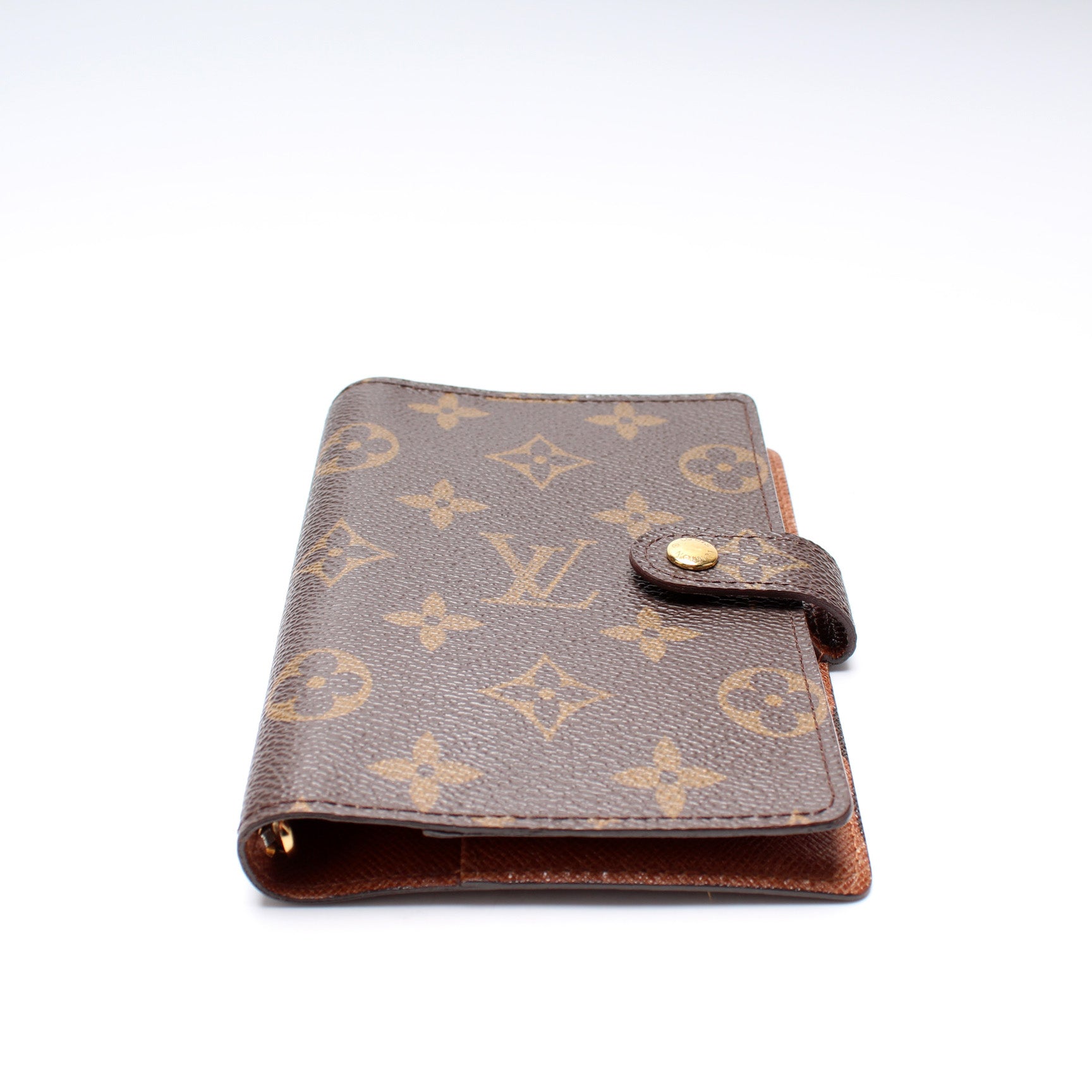 This pre-owned Louis Vuitton Agenda Small Ring is guaranteed 100% authentic. The exterior is in the classic Monogram coated canvas.