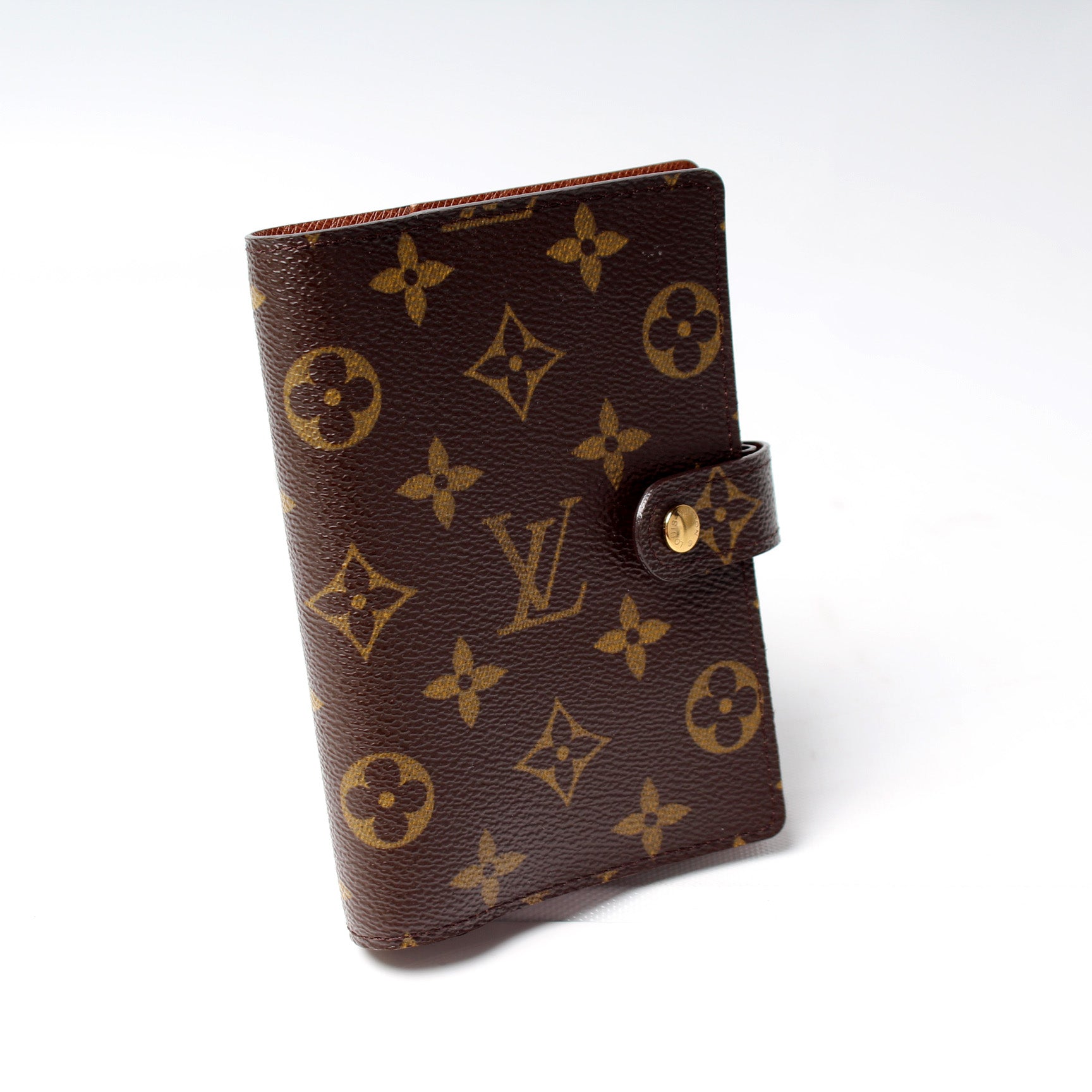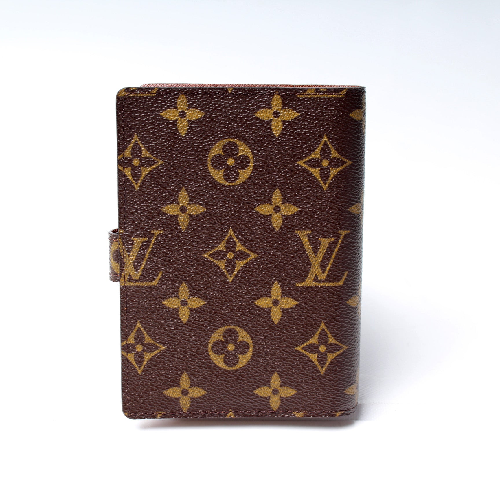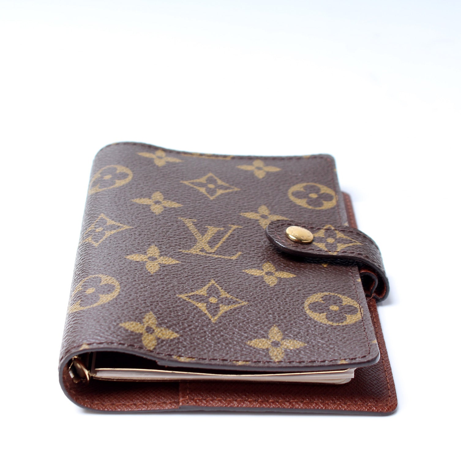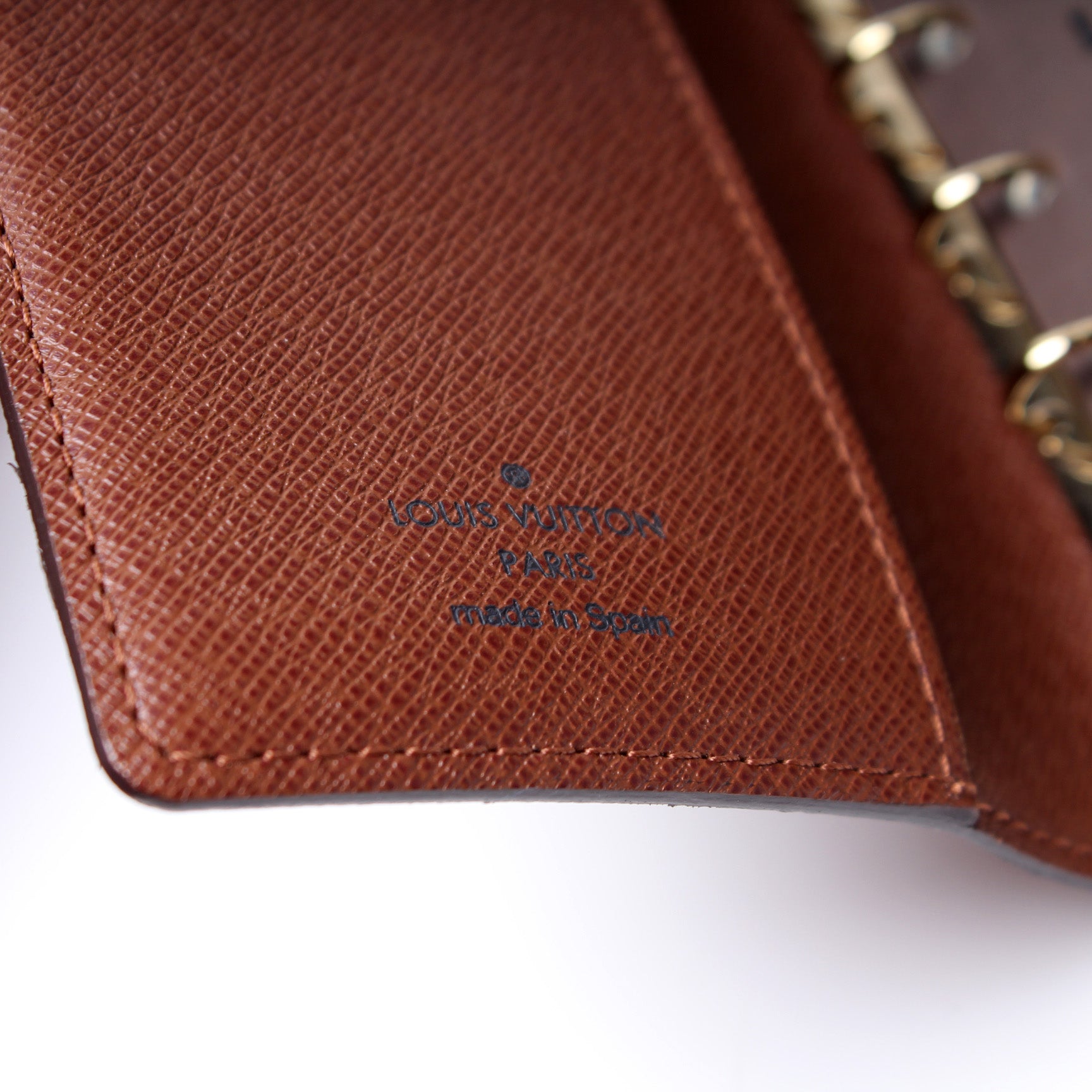 This pre-owned Louis Vuitton Agenda Small Ring is guaranteed 100% authentic. The exterior is in the classic Louis Vuitton Monogram coated canvas.