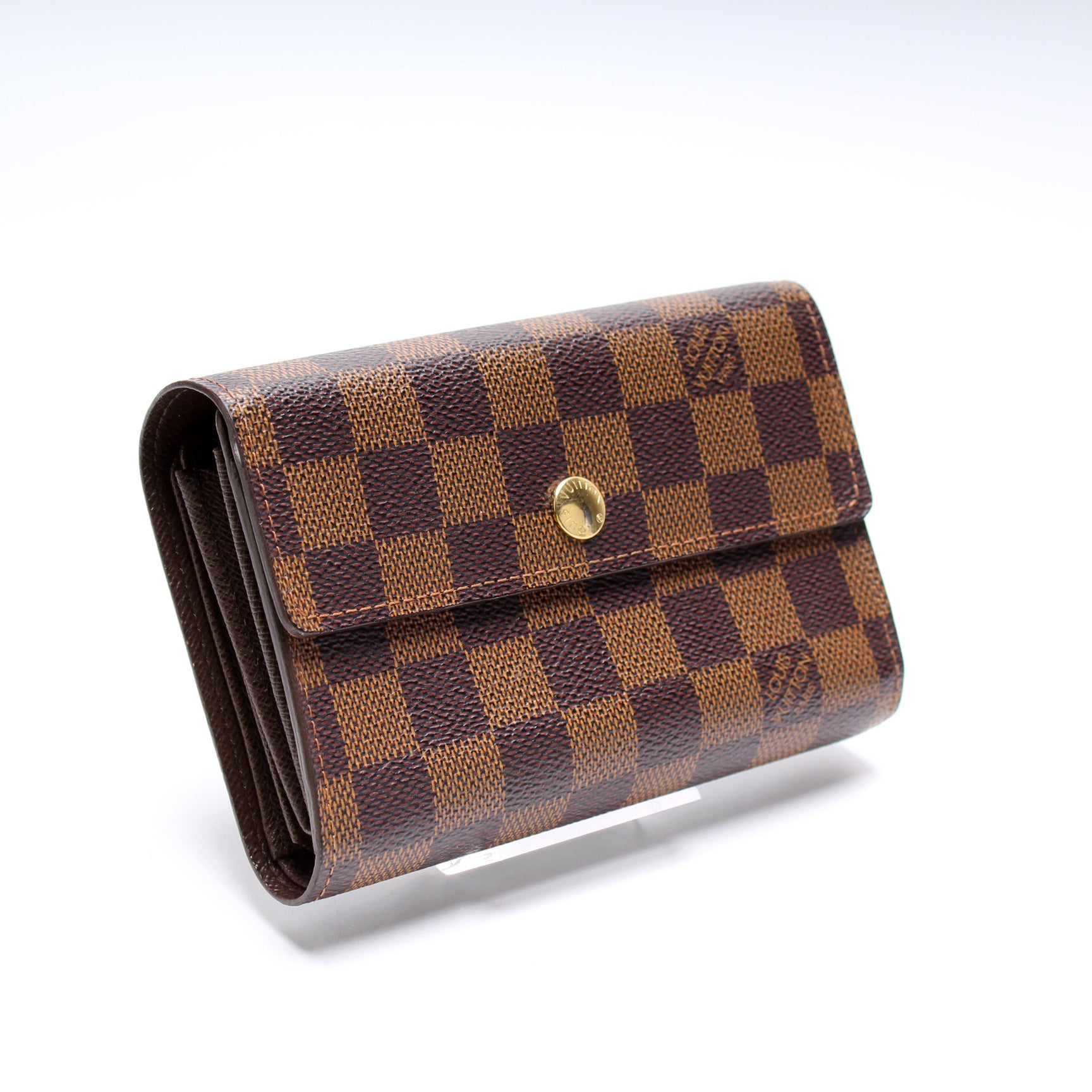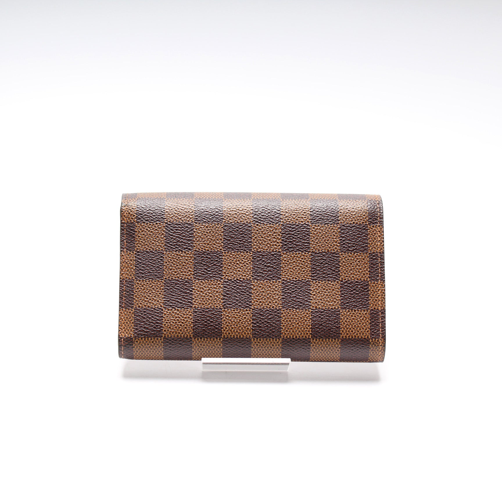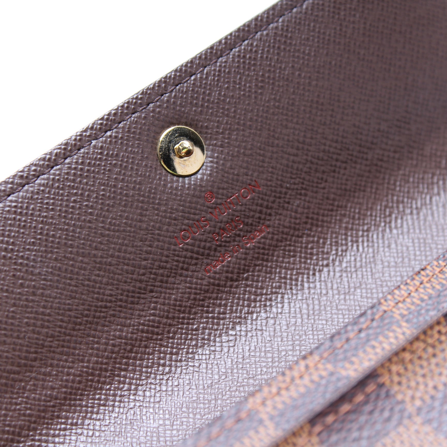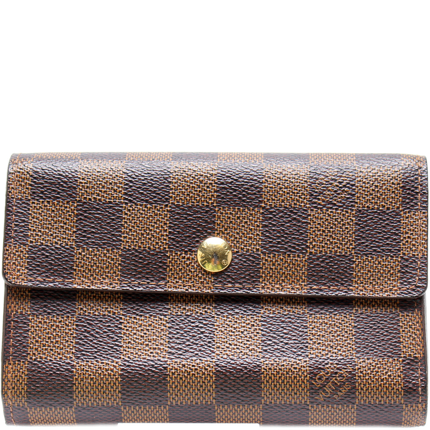 This pre-owned Louis Vuitton Alexandra Wallet is guaranteed 100% authentic. The exterior is in the classic Louis Vuitton Damier Ebene coated canvas.