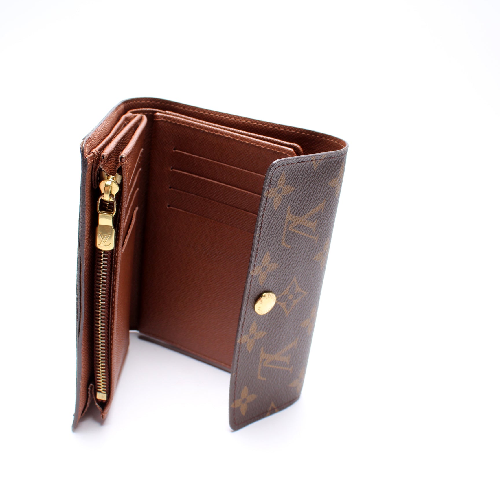 This pre-owned Louis Vuitton Alexandra Wallet is guaranteed 100% authentic. The exterior is in the classic Louis Vuitton Monogram coated canvas.