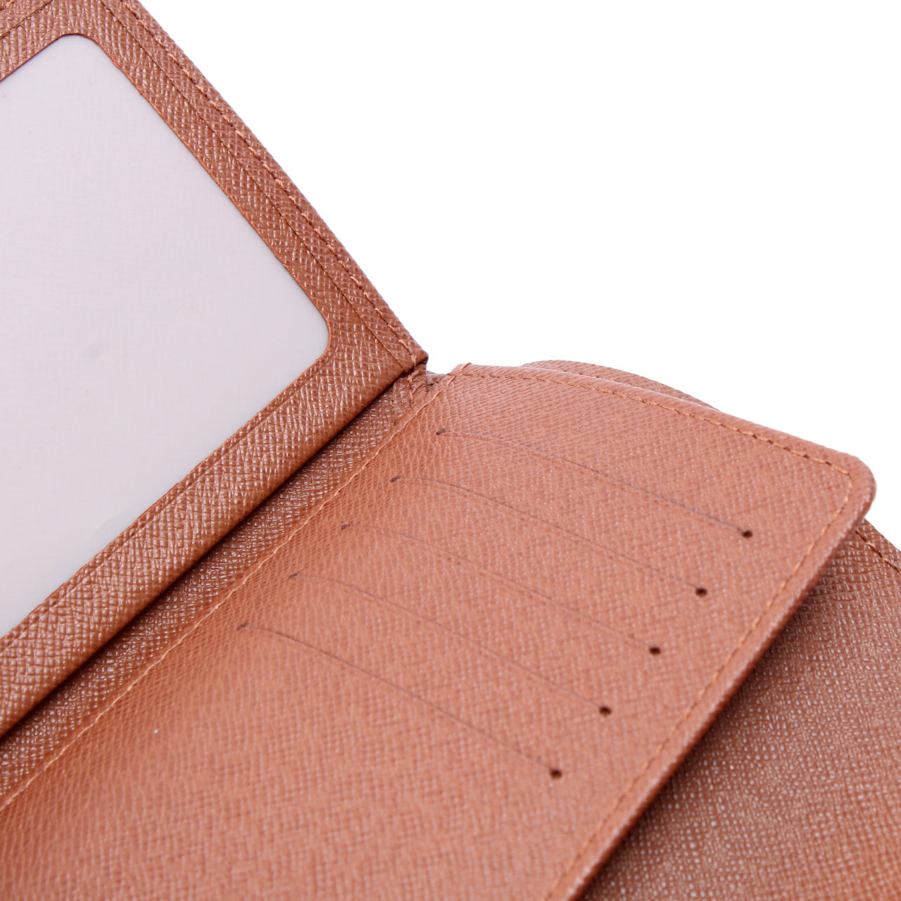 Interior: The interior is clean and free of rips or tears. The interior features one bill slot, one zip closure pocket, thirteen card slots, four open pockets, and one ID slot.