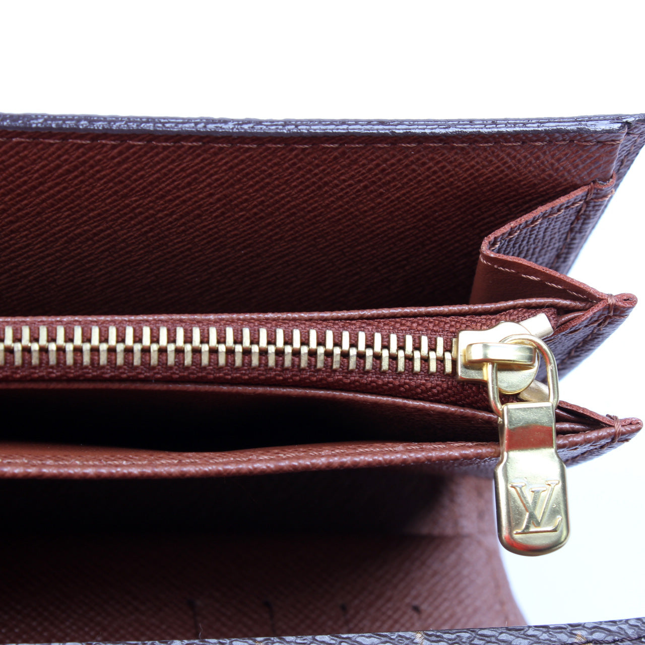 This pre-owned Louis Vuitton Alexandra Wallet is guaranteed 100% authentic. The exterior is in the classic Louis Vuitton Monogram coated canvas.