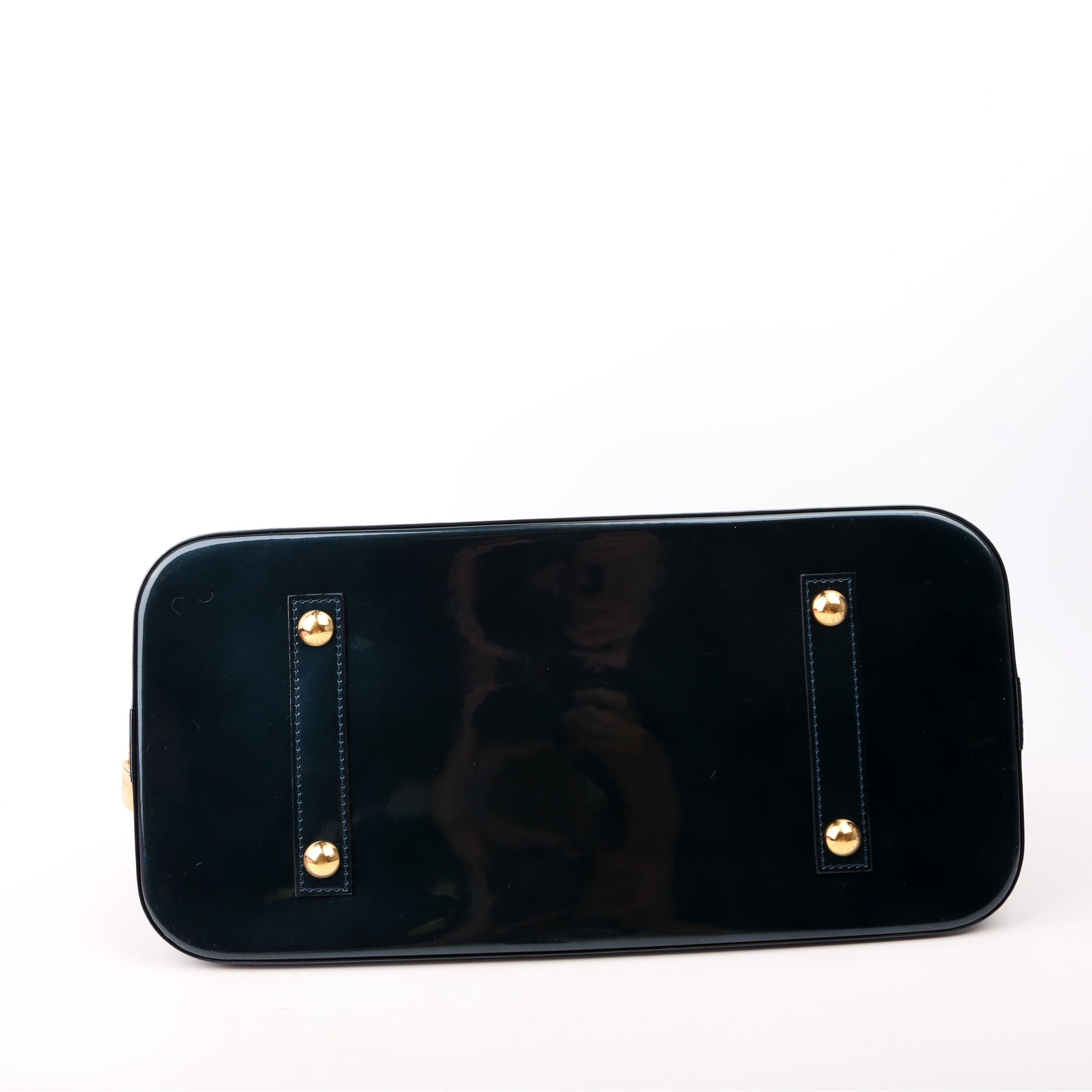 This pre-owned Louis Vuitton Alma GM is guaranteed 100% authentic. The exterior is in the classic Louis Vuitton Vernis leather.