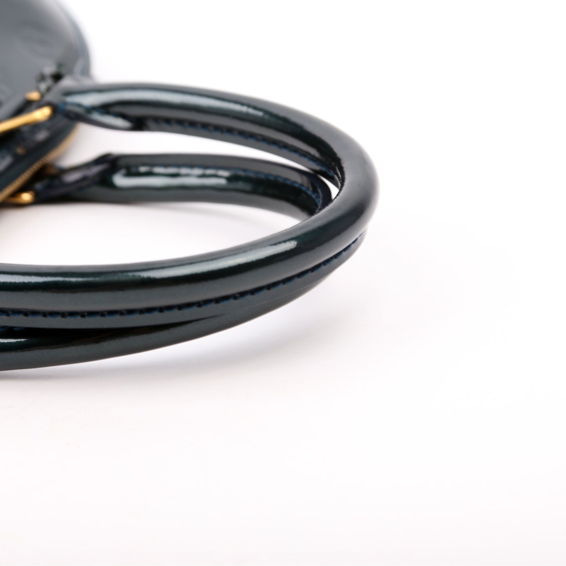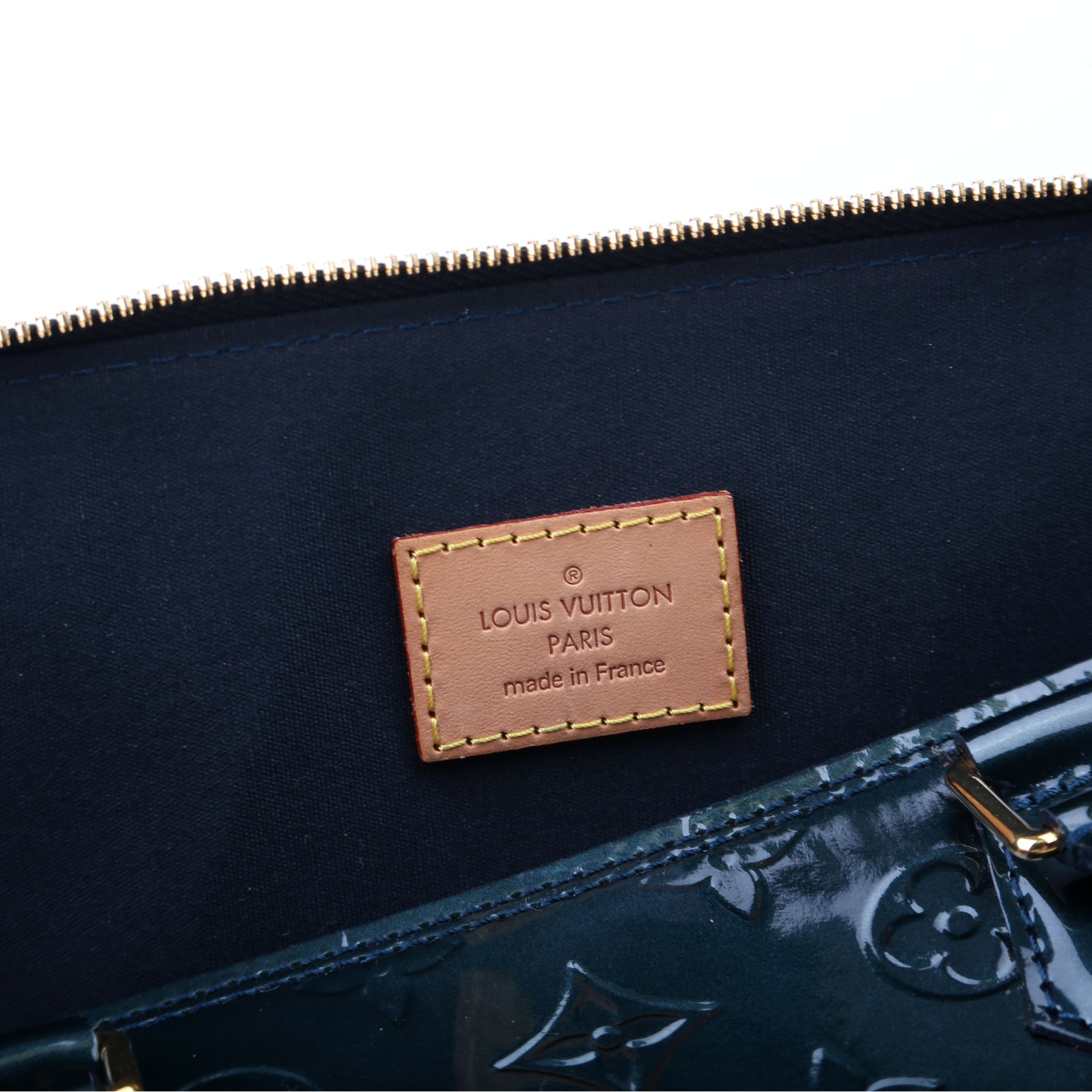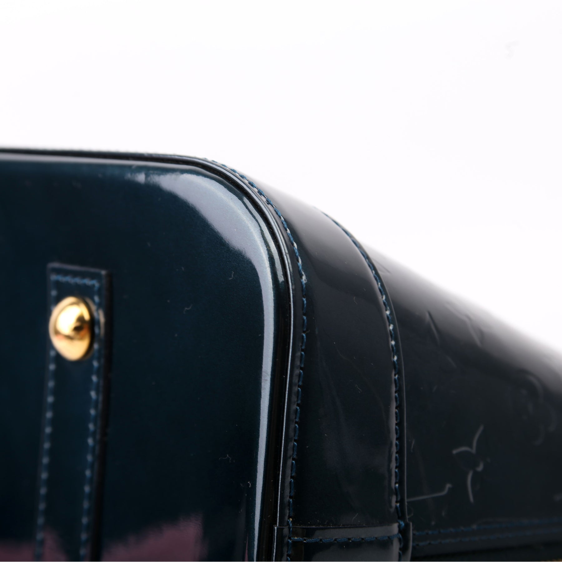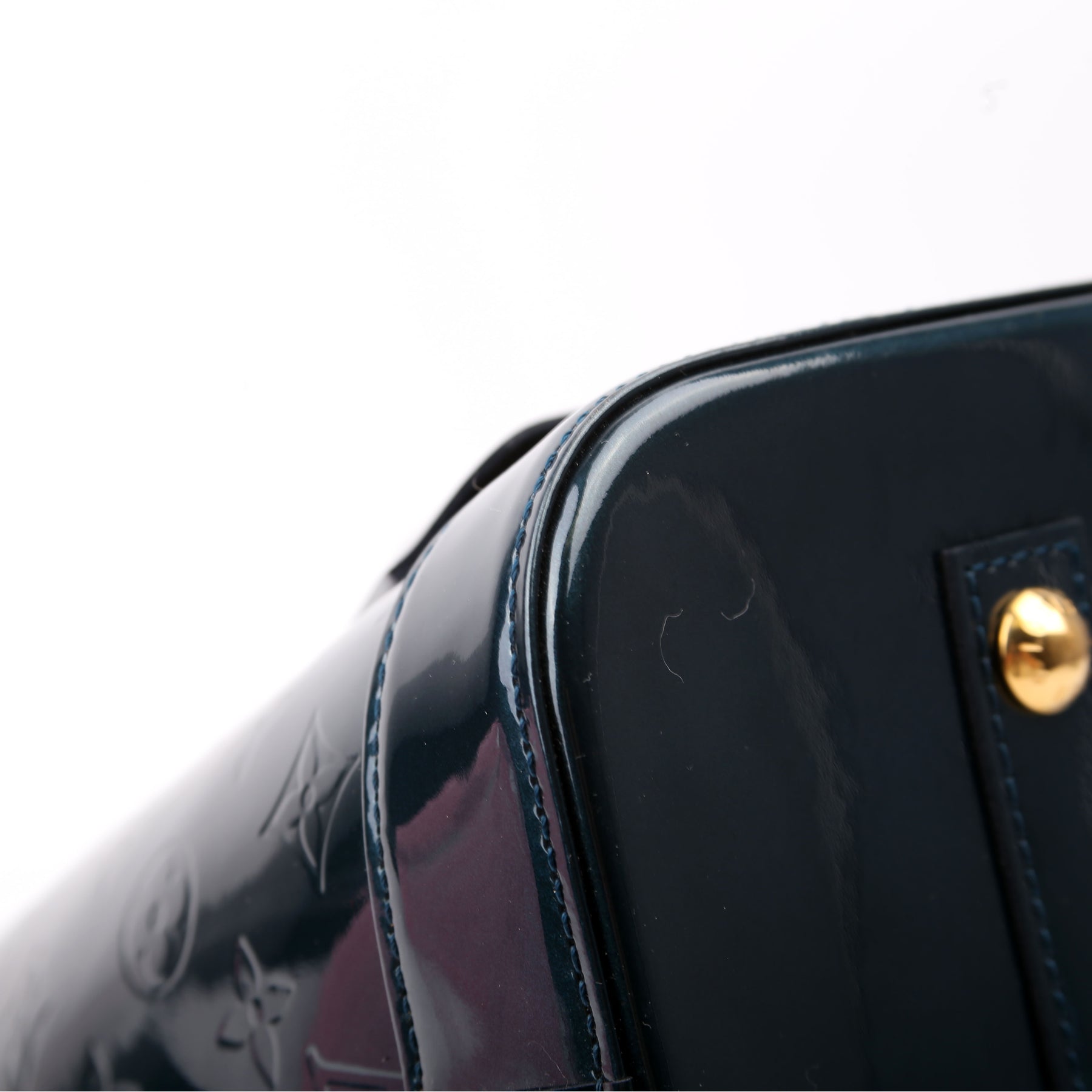 Exterior: The exterior Vernis leather is free of any rips or cracks, there are light scuffs and scratches throughout.