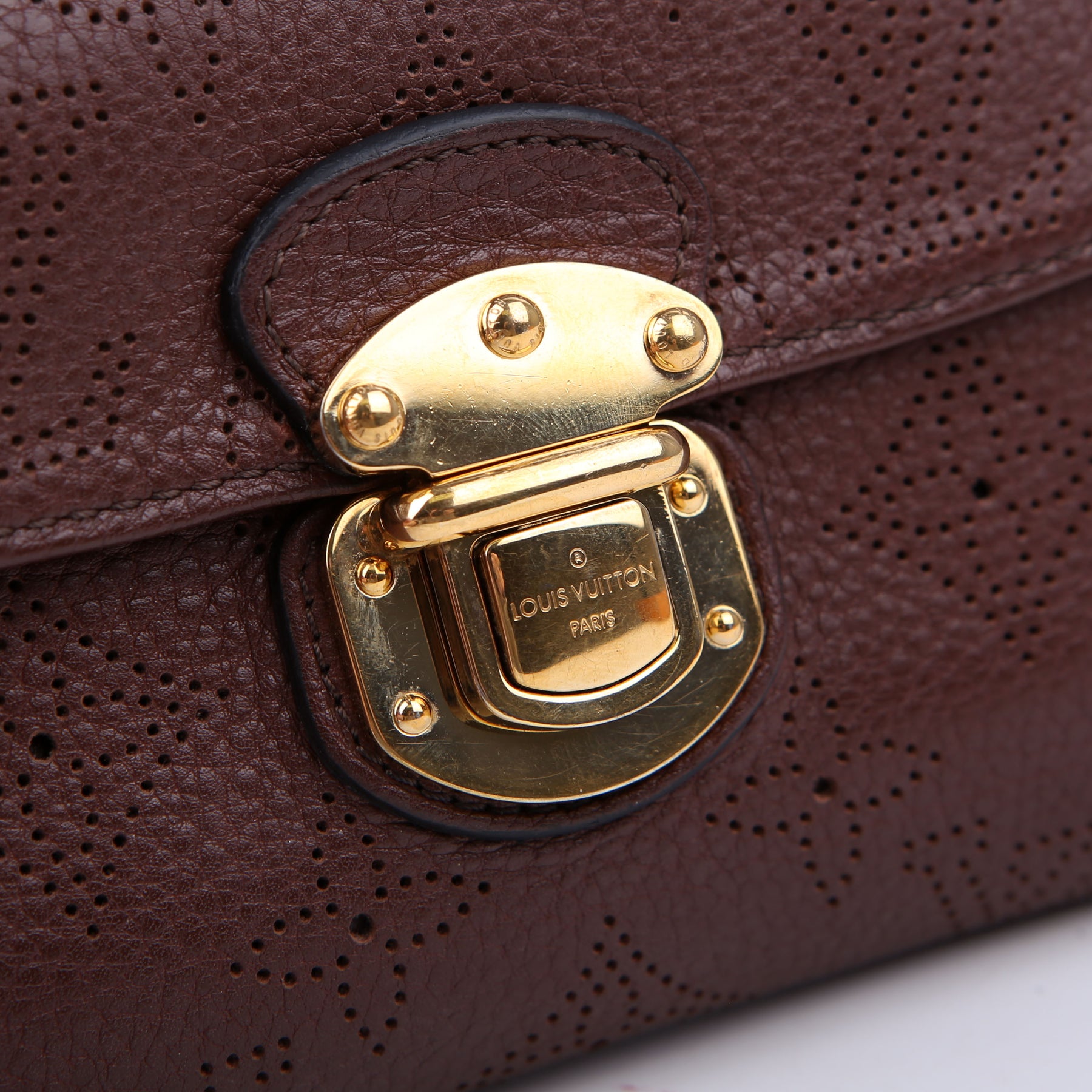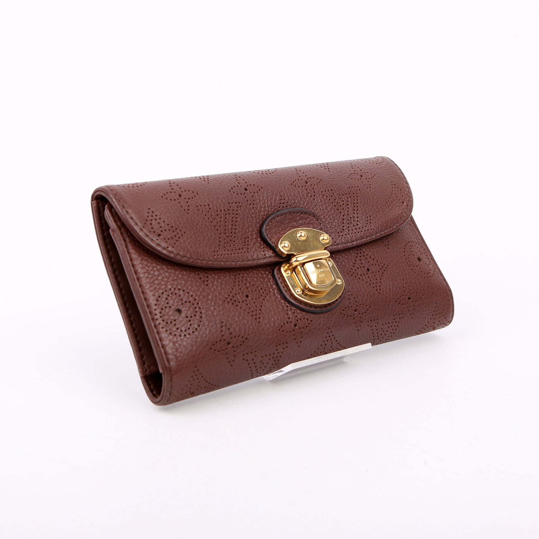 This pre-owned Louis Vuitton Amelia Wallet is guaranteed 100% authentic. The exterior is in the classic Louis Vuitton Mahina leather.